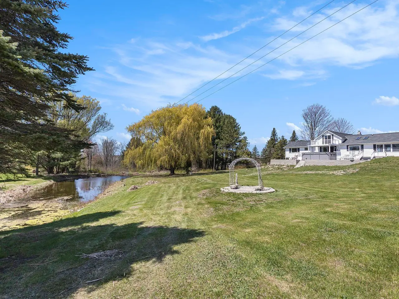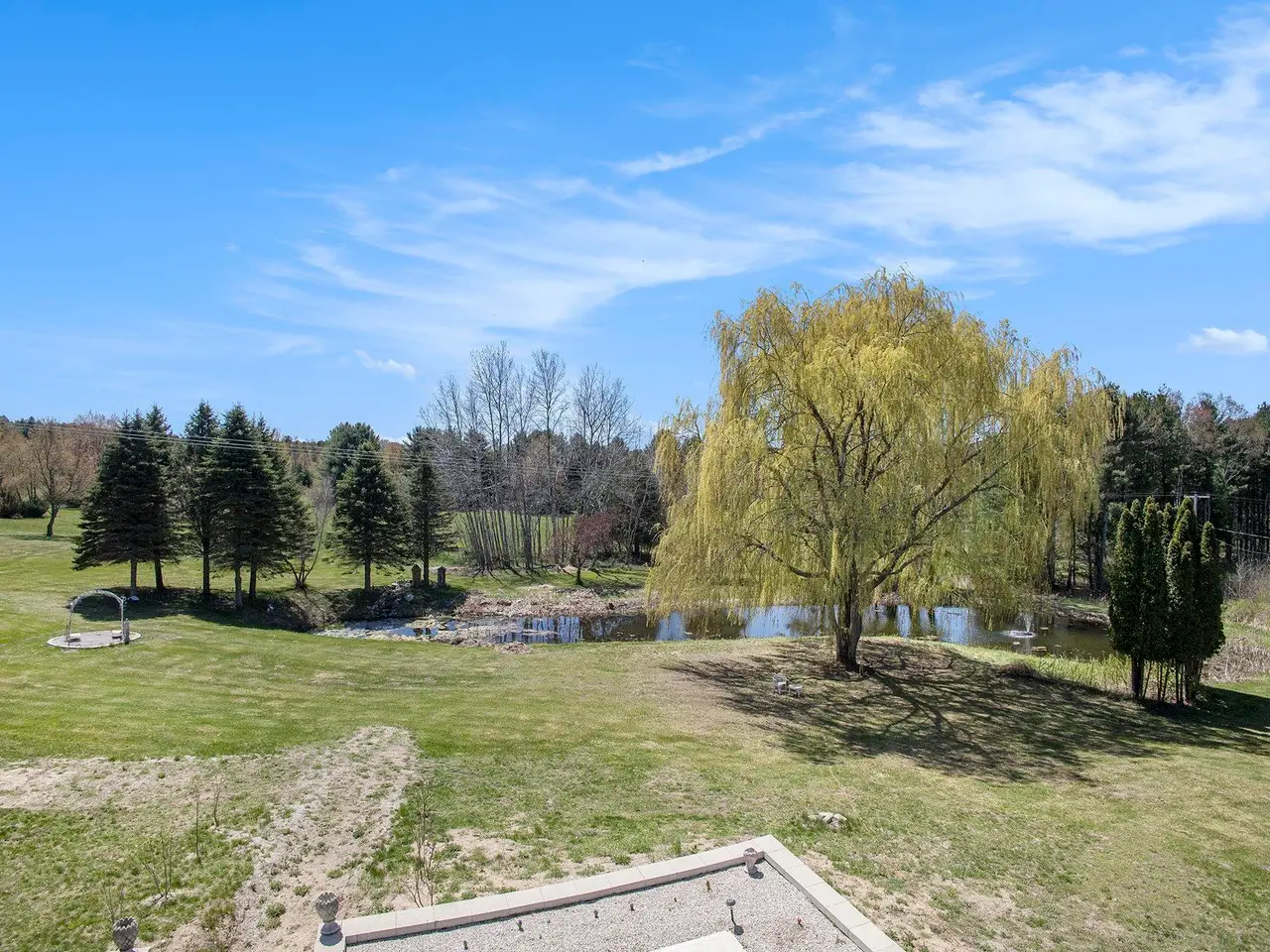 This remarkable home and property offers stunning and peaceful views that can truly be appreciated during a visit. Nestled on 25 beautiful acres of rolling woodlands, white pine groves, and open areas perfect for farming and gardening, this property also includes a shooting range and hunting blinds. The residence features nearly 2,300 square feet of remodeled living space, including an updated kitchen with elegant cabinets and quartz countertops. The bathrooms have been renovated, and hardwood floors enhance the interior. The living room has a newer gas fireplace, and the family room includes a high-efficiency wood-burning stove. A lovely 12 x 40-foot Trex deck overlooks the grounds, complemented by a second-floor balcony and charming brick-paver retaining walls, as well as a swim/spa pool. The patio is a generous size, designed with a durable concrete slab, and there is a whole-house generator. The master bedroom includes an en-suite with a walk-in bathtub. A spacious garage of about 1,000 square feet has electricity and natural gas heating. The pole barn features a concrete floor and has an upper-level loft with a private entry, providing versatile usage options. The grounds are diverse, featuring raspberry bushes, wild asparagus, mushrooms, and many apple trees. With ample land available, this property has great potential for future development or could serve as a family compound or campsite. It includes a serene pond and is serviced by a second well. The best way to fully appreciate all the impressive features is to visit in person, so please take the time to explore this exceptional property. Additionally, just 2.5 miles away is Grace Road Beach on Lake Michigan, enhancing the appeal of this location.