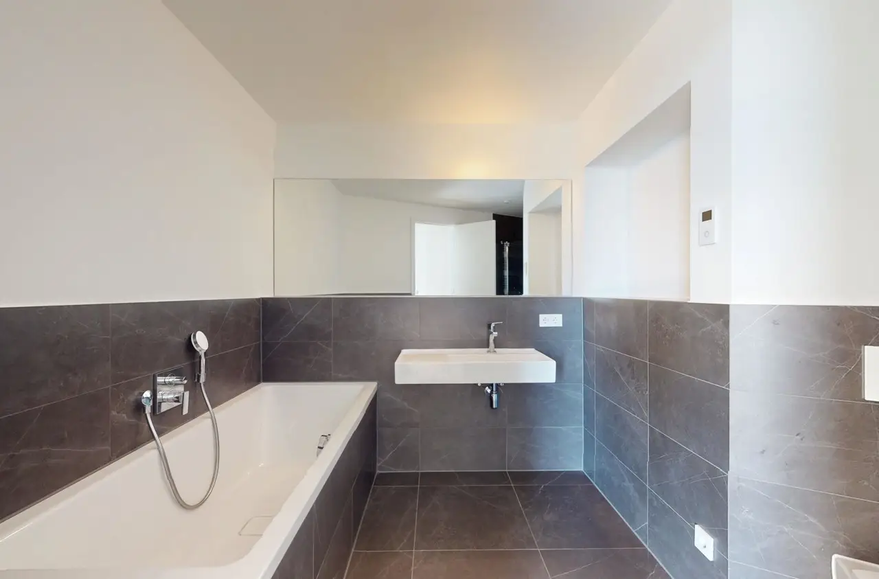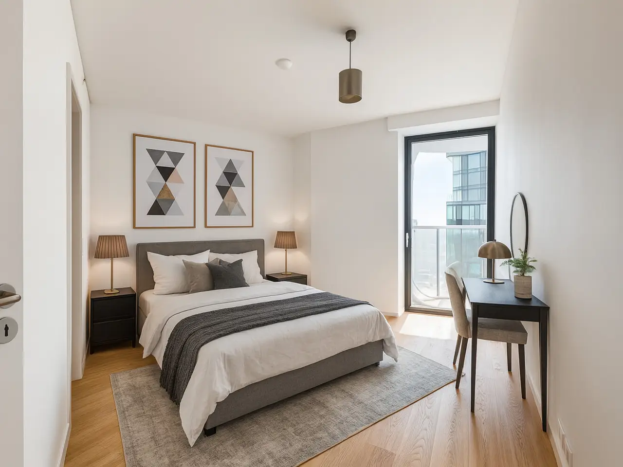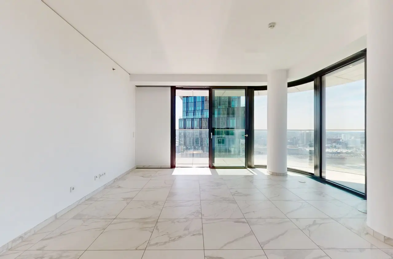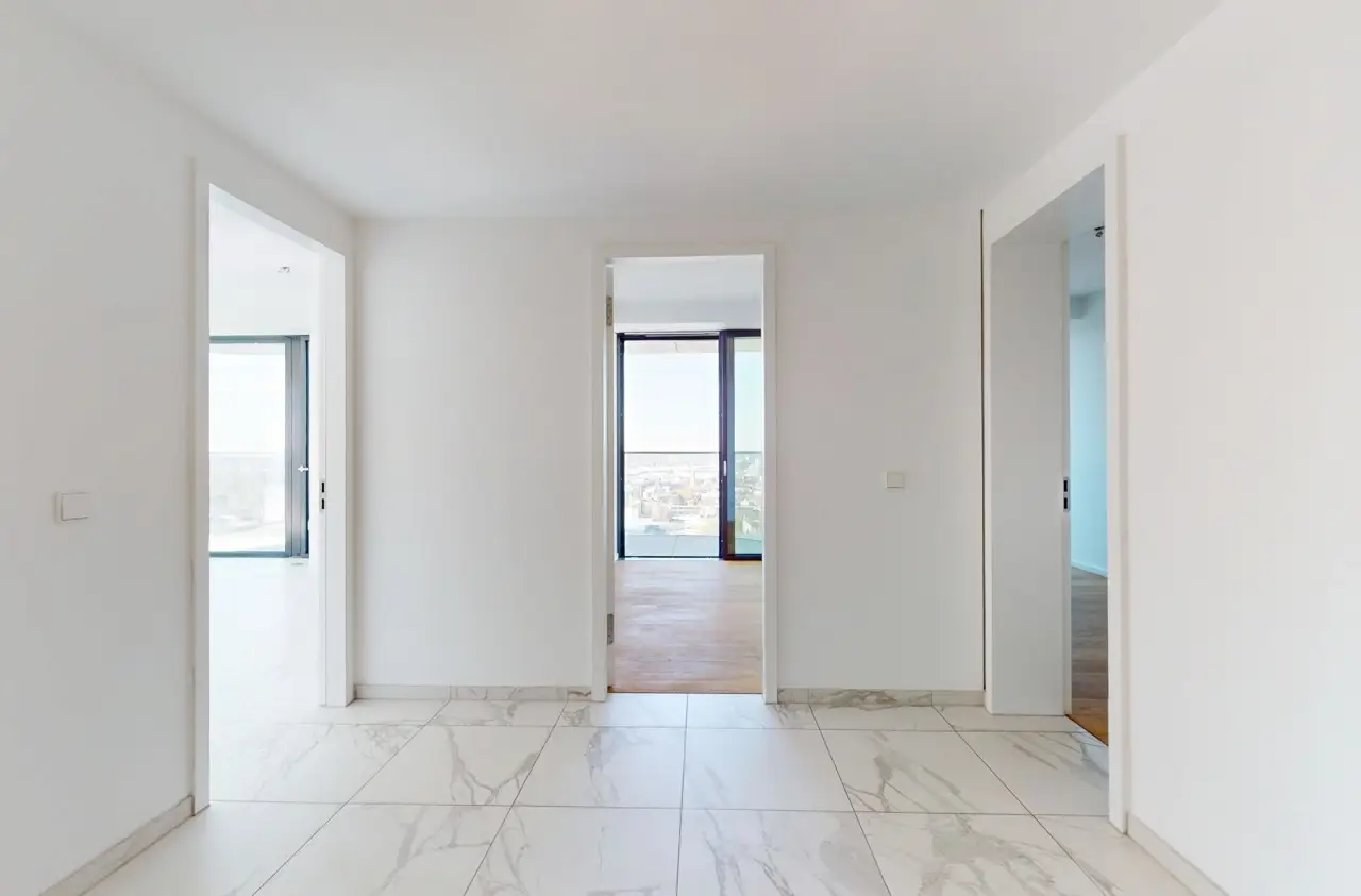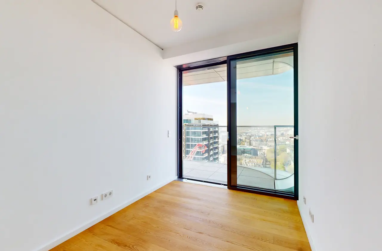 Welcome to the exclusive Grand Tower in Frankfurt - Germany's tallest residential high-rise, which stands for stylish, urban living with the highest standards. This extraordinary apartment on the 27th floor offers you a unique living experience on around 112 m² above the rooftops of the city. Thanks to the floor-to-ceiling windows, the entire apartment is flooded with light and opens up breathtaking views of the Frankfurt skyline and beyond. The spacious living area with open-plan fitted kitchen forms the heart of the apartment. The modern kitchen is seamlessly integrated into the room and impresses with high-quality appliances and plenty of storage space. From here, you have direct access to a large balcony that invites you to spend relaxing moments with a view over the city. A large, bright bedroom with direct access to the balcony offers you maximum living comfort. Adjacent is a high-quality en-suite bathroom, equipped with a bathtub and separate shower - ideal for relaxing morning routines or a peaceful end to the day. Another, smaller room with fine parquet flooring is perfect as a study or guest room and has access to a second, separate mini-balcony - a quiet retreat at a lofty height. There is also a third, smaller room, also with parquet flooring, which can be used in a variety of ways, for example as a home office or walk-in closet. The space is rounded off by a second, interior bathroom with a modern shower - stylishly designed and practical for guests or daily use. As a resident of the Grand Tower, you will enjoy numerous exclusive benefits that go far beyond ordinary living. A concierge service is available to you daily and ensures the highest level of comfort - just like in a luxury hotel. The Skydeck at a height of 172 meters is a real highlight: enjoy spectacular 360-degree views over the city and experience Frankfurt from a completely new perspective. The spacious Grand Garden offers a green oasis in the middle of the city - perfect for relaxing or meeting other residents. Stylish lounge areas and an underground parking space with quick and easy access round off the exclusive offer. The central location of the Grand Tower speaks for itself: the trade fair, the banking district, numerous shopping facilities, restaurants, cafés and cultural institutions are all in the immediate vicinity - everything that makes urban life worth living. In the neighboring Skyline Plaza shopping center, the exclusive Meridian Spa offers fitness, wellness and body care in an upscale ambience. This apartment is more than just a home - it is a lifestyle. Ideal for people who are looking for something special and value quality, design and service. Arrange your viewing appointment now and be inspired by the Grand Tower.