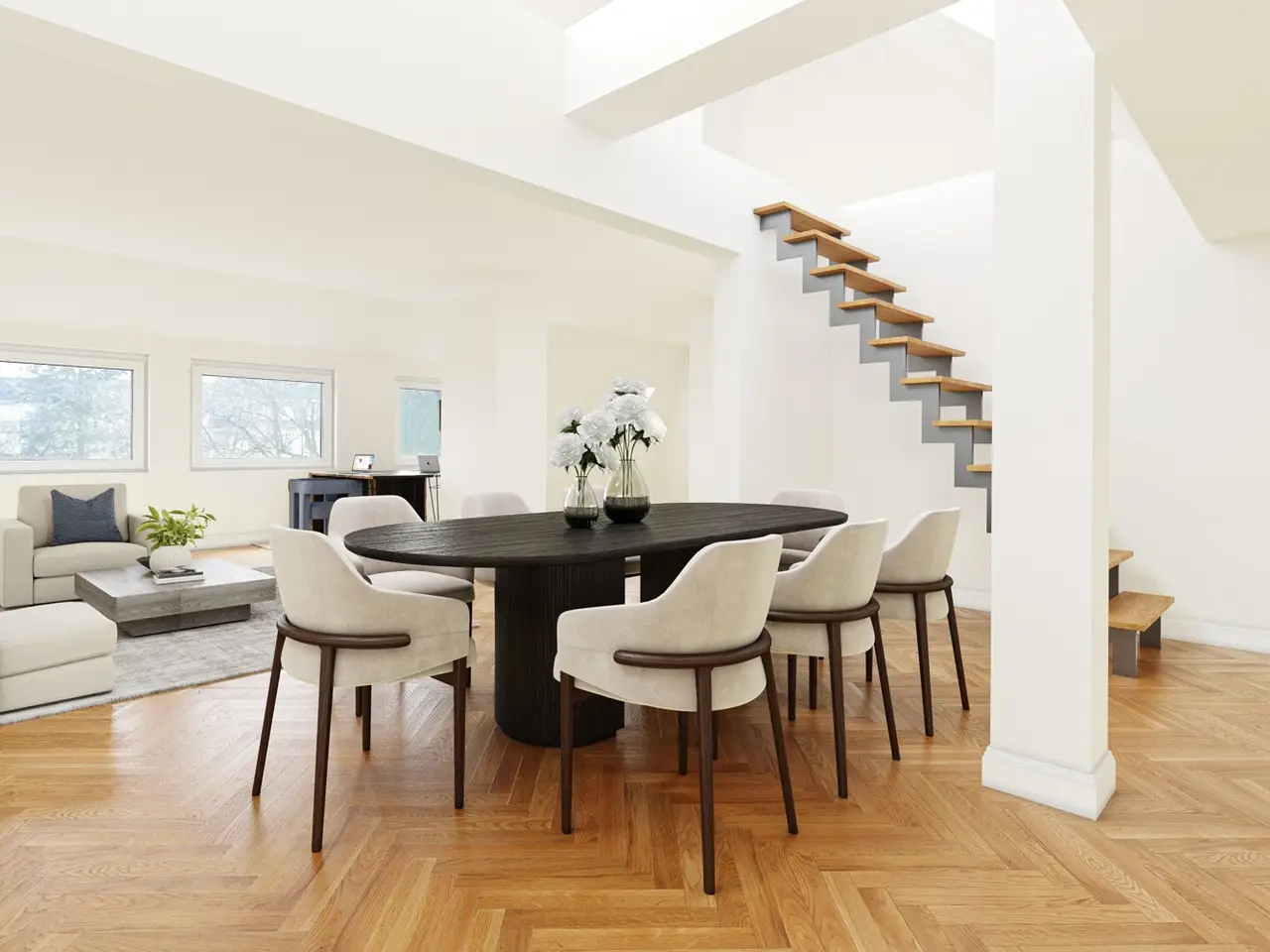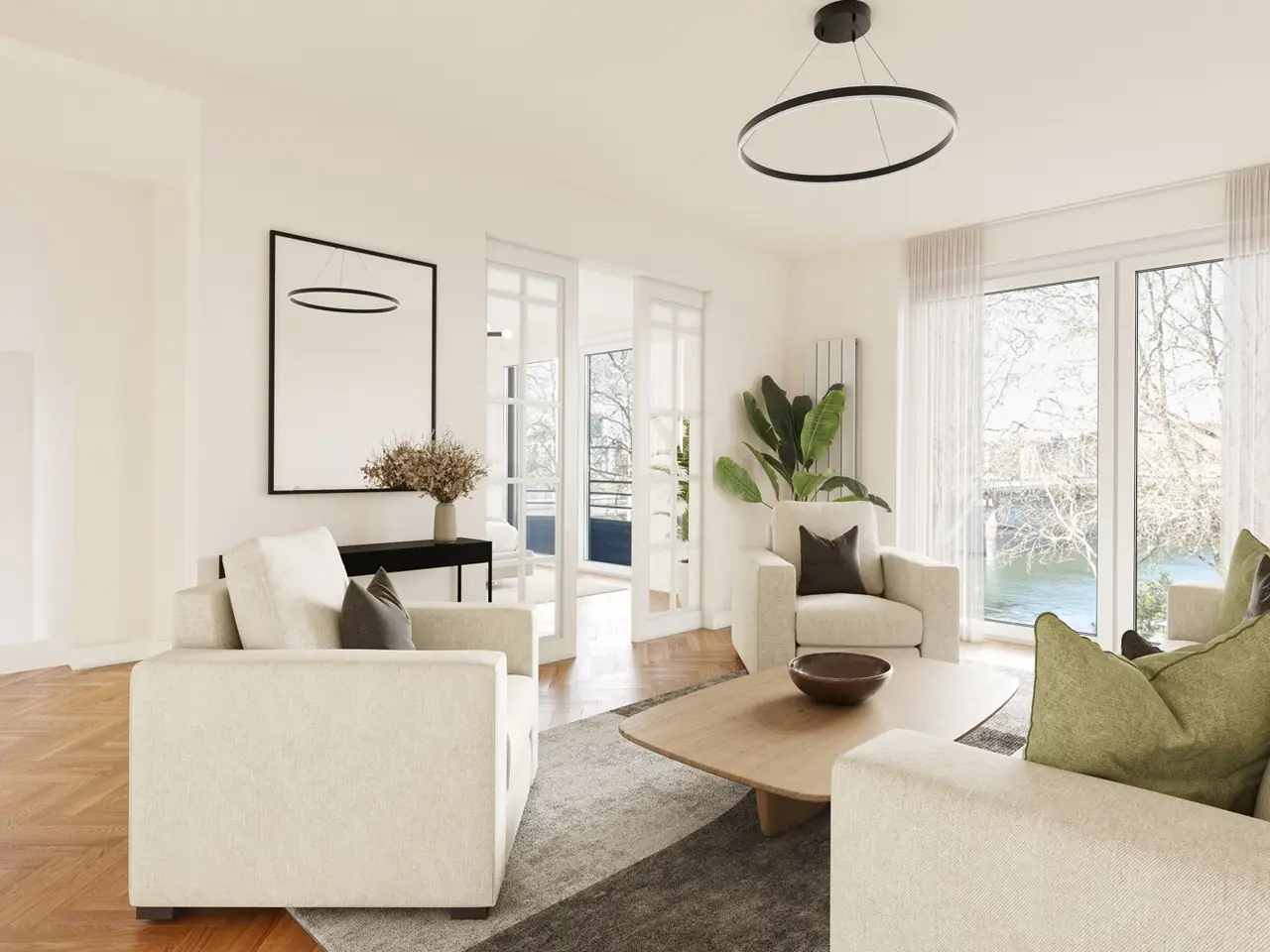 This renovated townhouse directly on the Main in Frankfurt's painters' quarter is a rarity on the real estate market. The extravagant domicile offers stylish designer comfort and exceptional architecture on a living space of around 370 square meters over three floors. The individual, large rooms can be divided with little effort. In addition to the spacious living and dining area, there are currently six further rooms. The room sizes offer the possibility of gaining four additional rooms. The room height of the impressive living area measures around eight meters and has huge windows across the entire front. The first floor or raised first floor is designed as an exceptionally spacious, open-plan living and dining area and has access to the loggia in the large, mature garden, which can also be accessed via other entrances. Also on the first floor or raised first floor is a very spacious designer guest WC with floor-to-ceiling windows. On the second floor, which is partially open to the mezzanine floor and thus benefits from the impressive ceiling height and majestic window fronts, is the master area with bedroom including a large balcony overlooking the garden, dressing room and designer bathroom, also with floor-to-ceiling windows. In addition to a daylight designer bathroom, the 2nd floor currently offers two very bright rooms connected by a sliding door. The floor plan and the size of the rooms make it easy to create a third room. The larger room has access to a balcony facing the garden. There is a small kitchen/pantry on this living level, which could be used as a dressing room or study instead if not required. It is also possible to set up another bathroom here. The lines of sight on all floors extend from the orientation towards the banks of the Main to the garden at the rear of the house. The rooms are flooded with light. A spacious studio room is located on the third floor / top floor. This is very bright and has high ceilings plus a gallery to the converted loft. The separate smaller room is suitable for the installation of a separate bathroom or kitchen. The attic studio could also be divided into two rooms. This extraordinary and stylish home offers families with several children, couples or singles a unique place to live. The location directly in Sachsenhausen-Nord, on the Museumsufer combined with the beautiful, large and quiet sun garden at the rear of the house is incomparable. The parking situation is also very convenient: the property has a garage and three parking spaces in front of it.