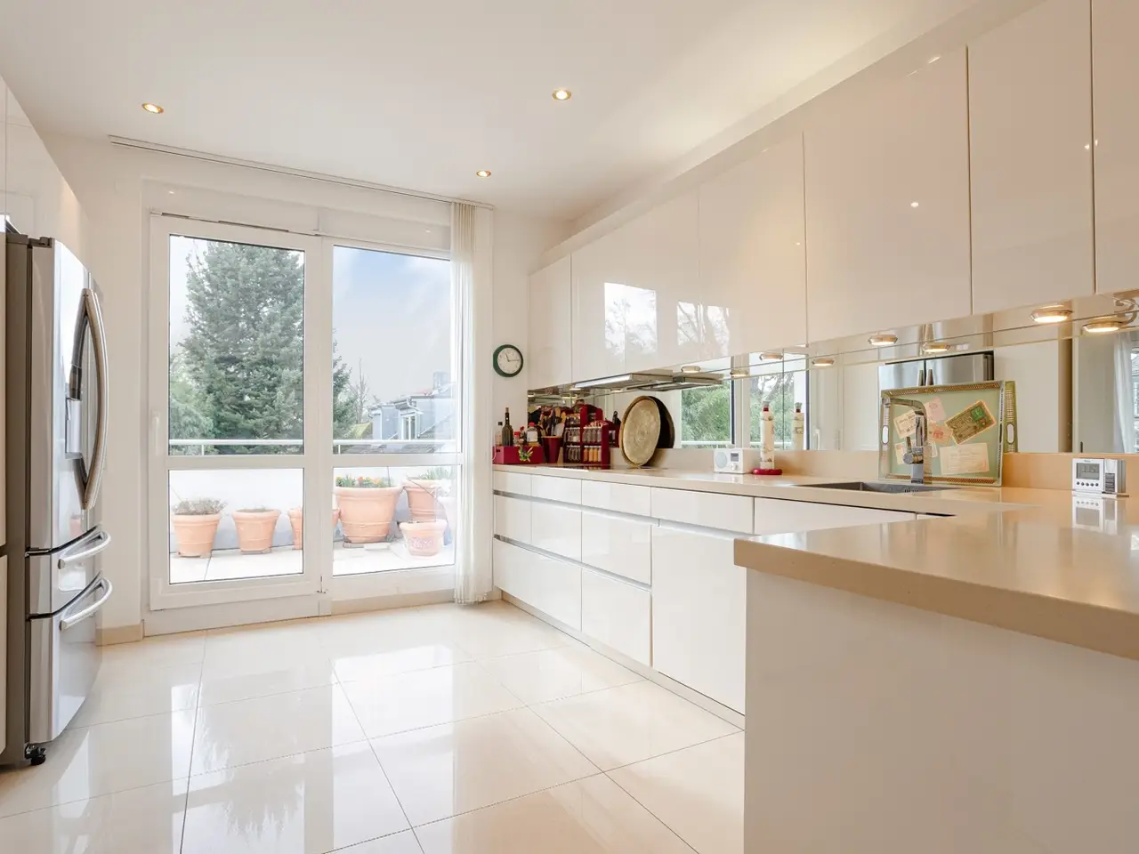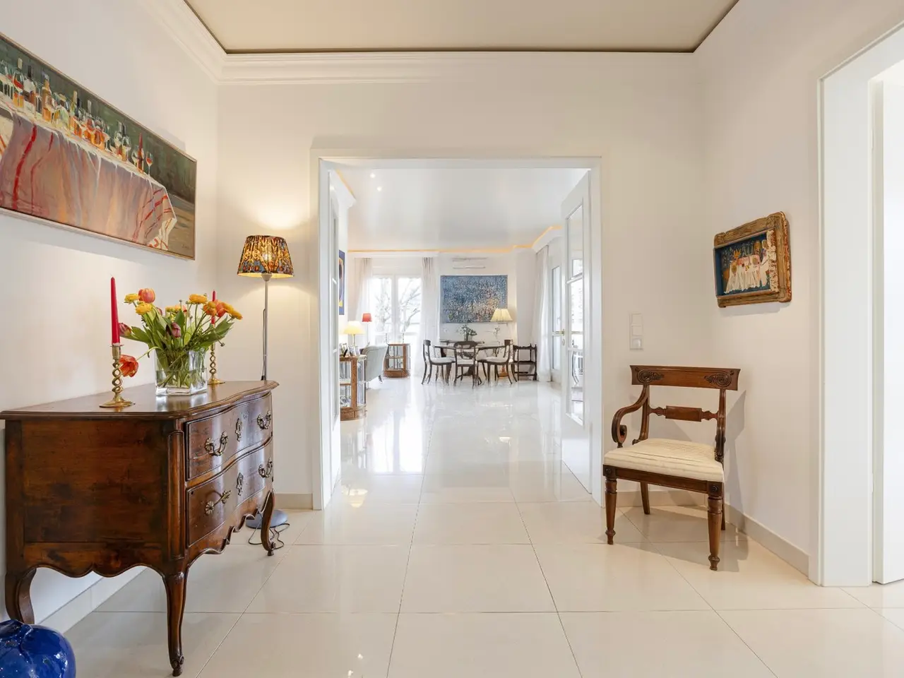 Experience timeless urban luxury at the highest level: this exceptional penthouse is located in an exclusive and quiet location surrounded by parkland with mature trees in the popular diplomatic quarter. Built in villa style, the building with a small community of owners offers the ideal retreat for prospective buyers who appreciate both the urban proximity to the city center and the tranquility of the surrounding parks. The penthouse extends over approximately 246 m² with two large terraces on one level. Large floor-to-ceiling windows with triple glazing, an open fireplace, double doors, high-quality fixtures, a modern fitted kitchen, a spacious daylight bathroom with sauna and steam bath, a sleeping area with dressing room, underfloor heating, a sophisticated lighting system, an elaborate security system, an alarm system with camera surveillance, a specially secured elevator that only leads to this level and much more reflect the high-quality character of this residential gem. A spacious entrance hall with checkroom and guest WC leads through the large double doors into the spacious living/dining area with open fireplace, library and access to the covered terrace with views of the countryside. Floor-to-ceiling windows and the ceiling height of around 2.92 meters underline the stately living atmosphere. A study with corresponding built-in units and the large, perfectly equipped kitchen complete the public part of the apartment. The private area of the floor is completely self-contained with two bedrooms, one of which has an en-suite dressing room, as well as two utility rooms, a storage room and the large daylight bathroom with a walk-in shower, bathtub, double washbasin, bidet, integrated sauna and steam bath. Two parking spaces in the underground garage with electrical connection for charging stations for electric vehicles are already included in the purchase price. A cellar room is included in the offer. A bicycle storage room is also available to residents. The ideal retreat for a couple or a small family who want to live in a prime location with green surroundings and perfect infrastructure, close to the city, quiet and relaxed with plenty of privacy.