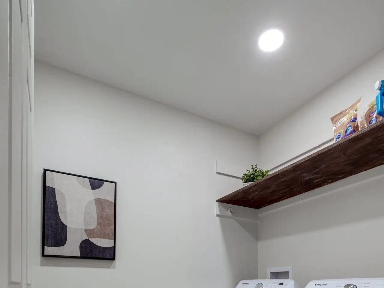 - Renovated kitchen with custom wood hood vent and gas cooktop