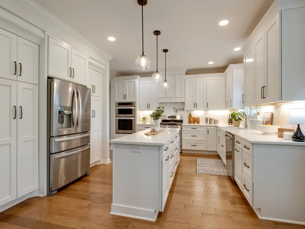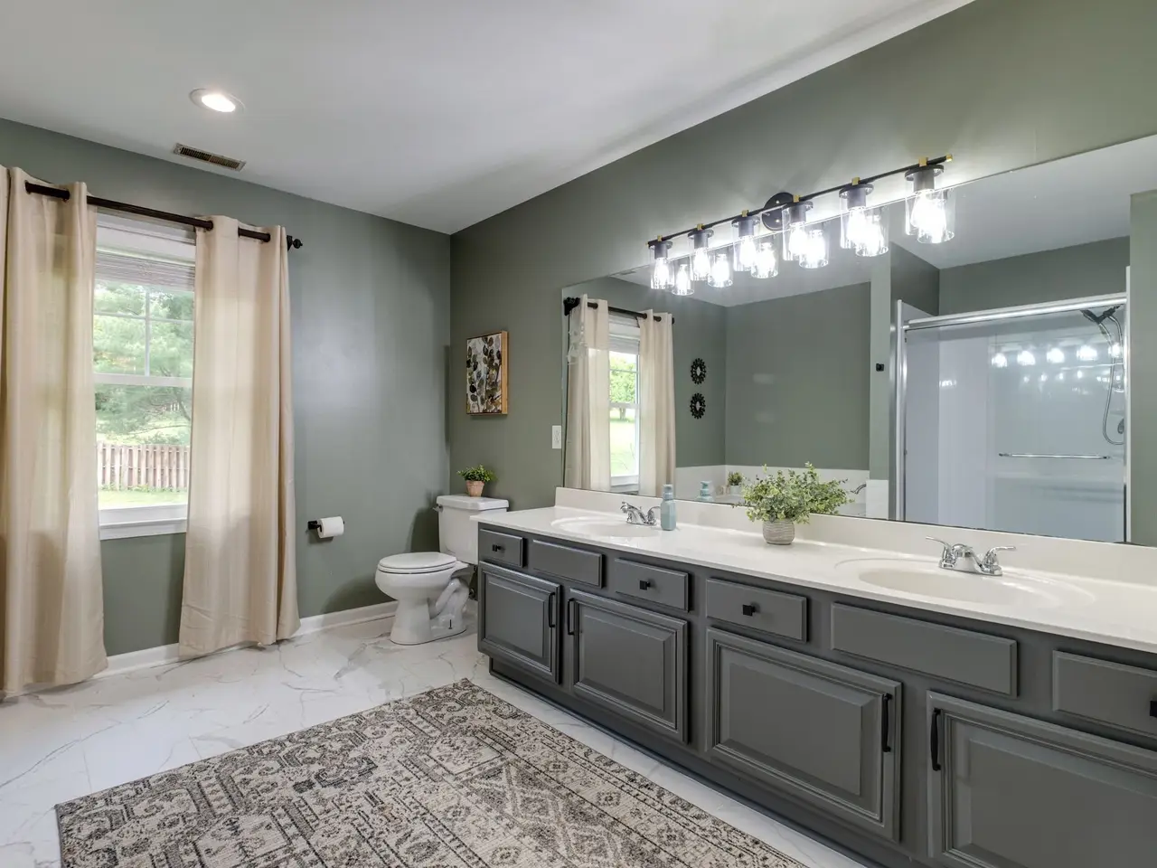 Stunning brick home situated on one acre in Franklin, with no HOA. Zoned for award winning schools: Clovercroft, Woodland, and Ravenwood. This property boasts oversized primary suites both upstairs and downstairs, along with laundry facilities on each level. The kitchen and primary bathroom have been fully renovated. New hardwood flooring, premium carpeting in the primary bedroom, new Pella windows and more. The exquisite gourmet kitchen is equipped with a custom wood hood vent, a gas cooktop, a pot filler, and a kitchen island. Ideal for entertaining, the spacious open living and kitchen area offers picturesque views of the beautiful backyard. You will love spending your evenings on the deck, enjoying breathtaking sunsets. The home provides lots of closet and storage space, in addition to a three-car garage.