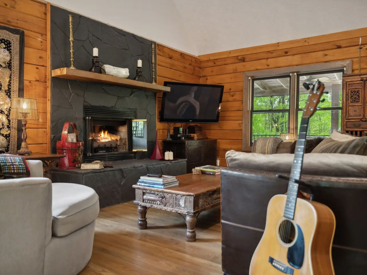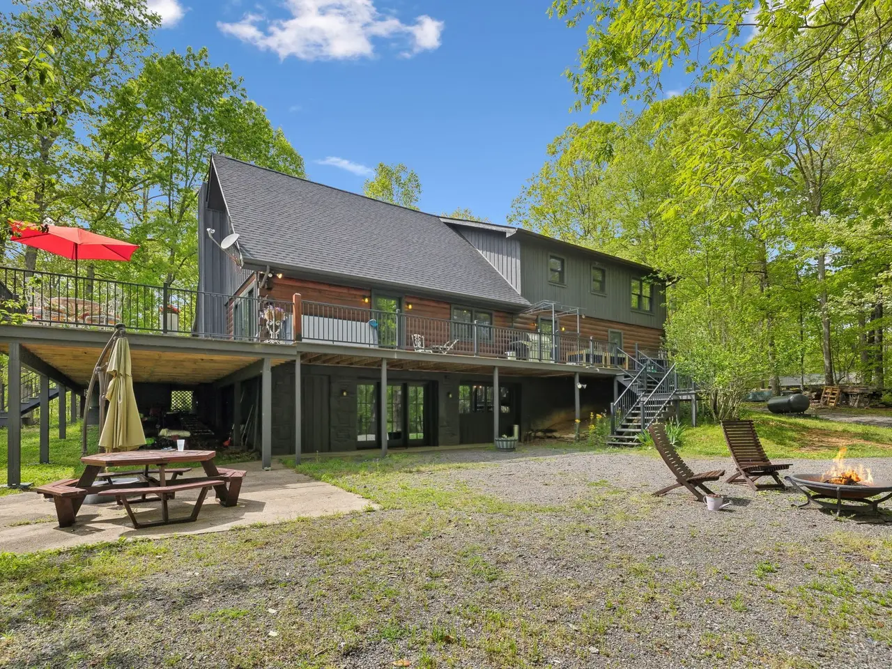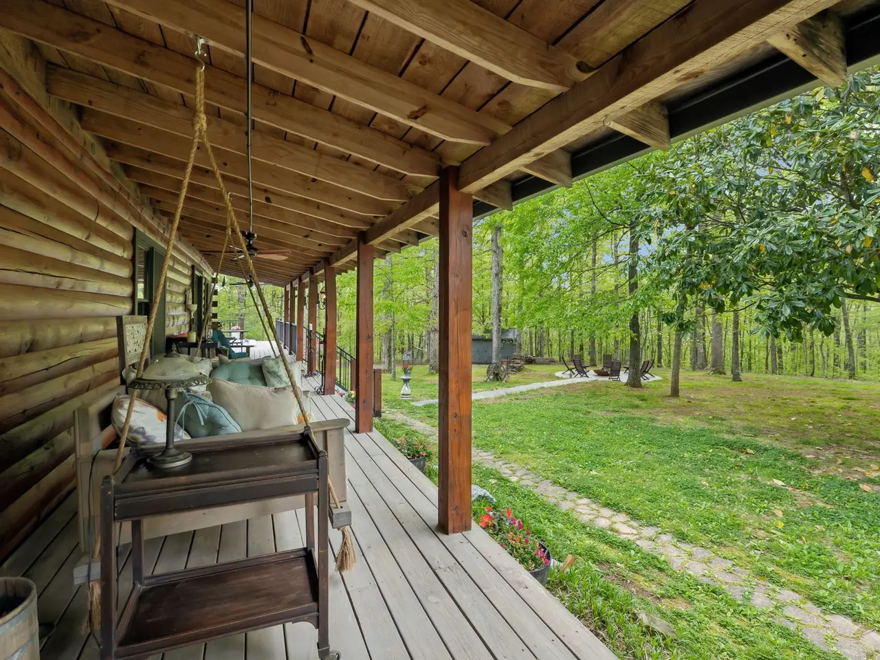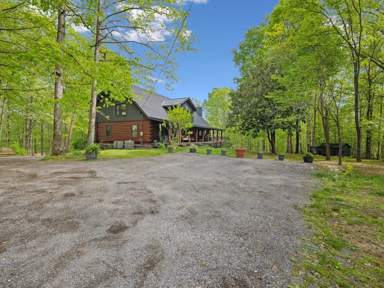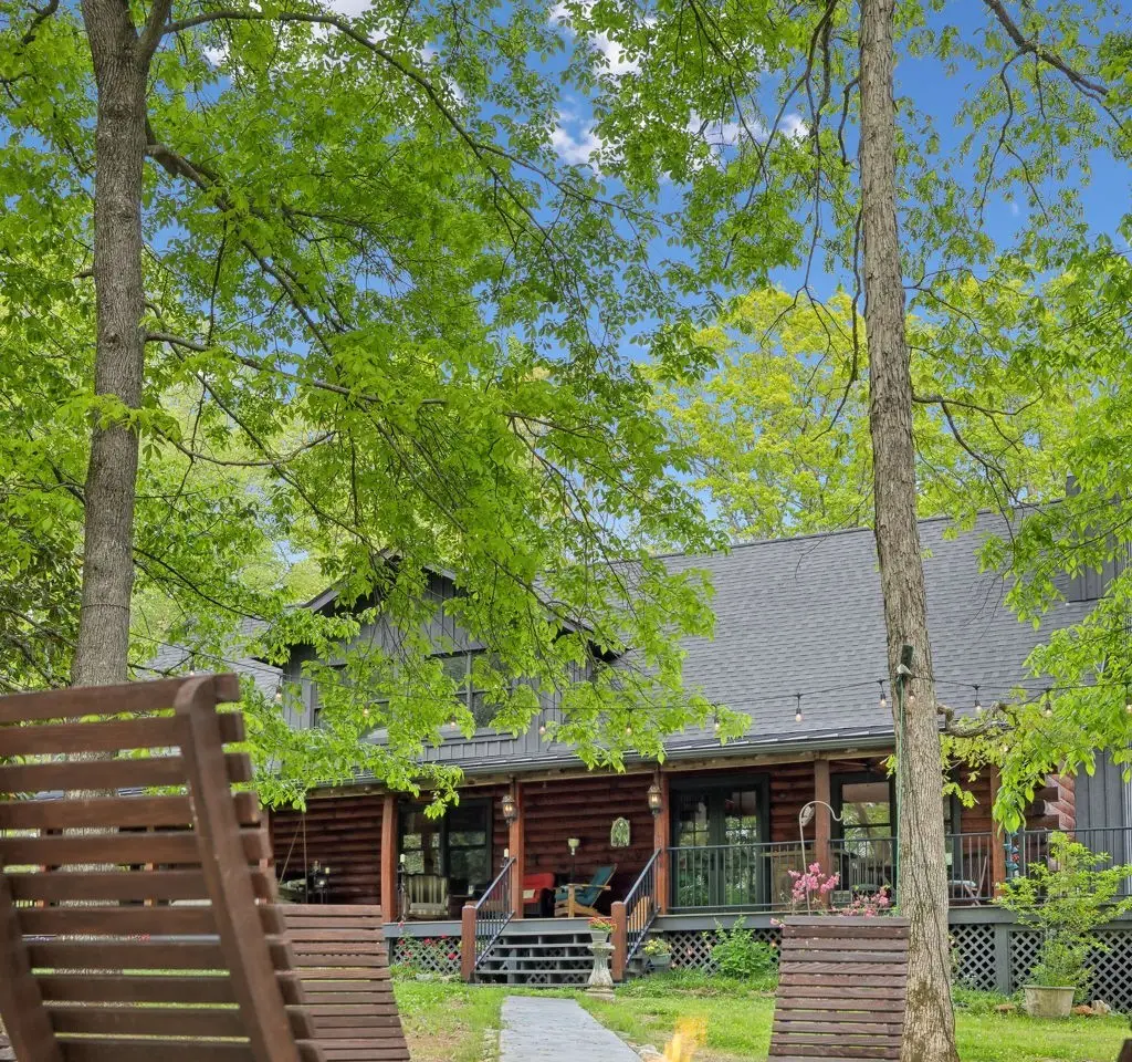 Incredible lake views!! Countryside serenity meets luxury living in this immaculately restored and fully renovated Leiper's Fork log home. Tucked into a coveted rural location in Middle Tennessee that rarely sees homes like this one hit the market, enjoy curated details and modern amenities built into a flowing masterpiece design that retains classic aesthetics and hand-selected vintage accents like salvaged barn wood and farmhouse fixtures. The main level features an open floor plan for shared moments with guests, plus bedrooms and full baths. Also enjoy a luxury chef's kitchen with all-new Dacor appliances, custom maple and oak cabinetry, quartz countertops, a cozy fireplace, oversized windows, and full-lite sliding doors that wash the home's interior in warm natural light. The upper level has inviting private accommodations with a work-from-home office & open flex space. The lower level boasts a fully finished suite with private entry, a full kitchen and bath, and a game room, perfect for weekend guest stays or separate living quarters. With primary suites and en suite baths on both the main and upper levels, options abound for the owners to choose their private sanctuary. Septic permitted for 3 bedrooms -- home includes additional flexible spaces that could be used as an office, bonus, or guest room. Outdoors, the almost 6-acre parcel at the end of a private drive on a shaded knoll features peaceful, wooded terrain and views of a 3-acre aquamarine lake, all of which can be enjoyed from the home's outdoor living amenities like the welcoming fire pit, 60ft of covered porch space, sun-kissed backyard deck, and relaxing spa pool. At 5 minutes to Leiper's Fork, 25 minutes to downtown Franklin, 45 minutes to downtown Nashville, and 50 minutes to BNA, your perfect country life awaits.