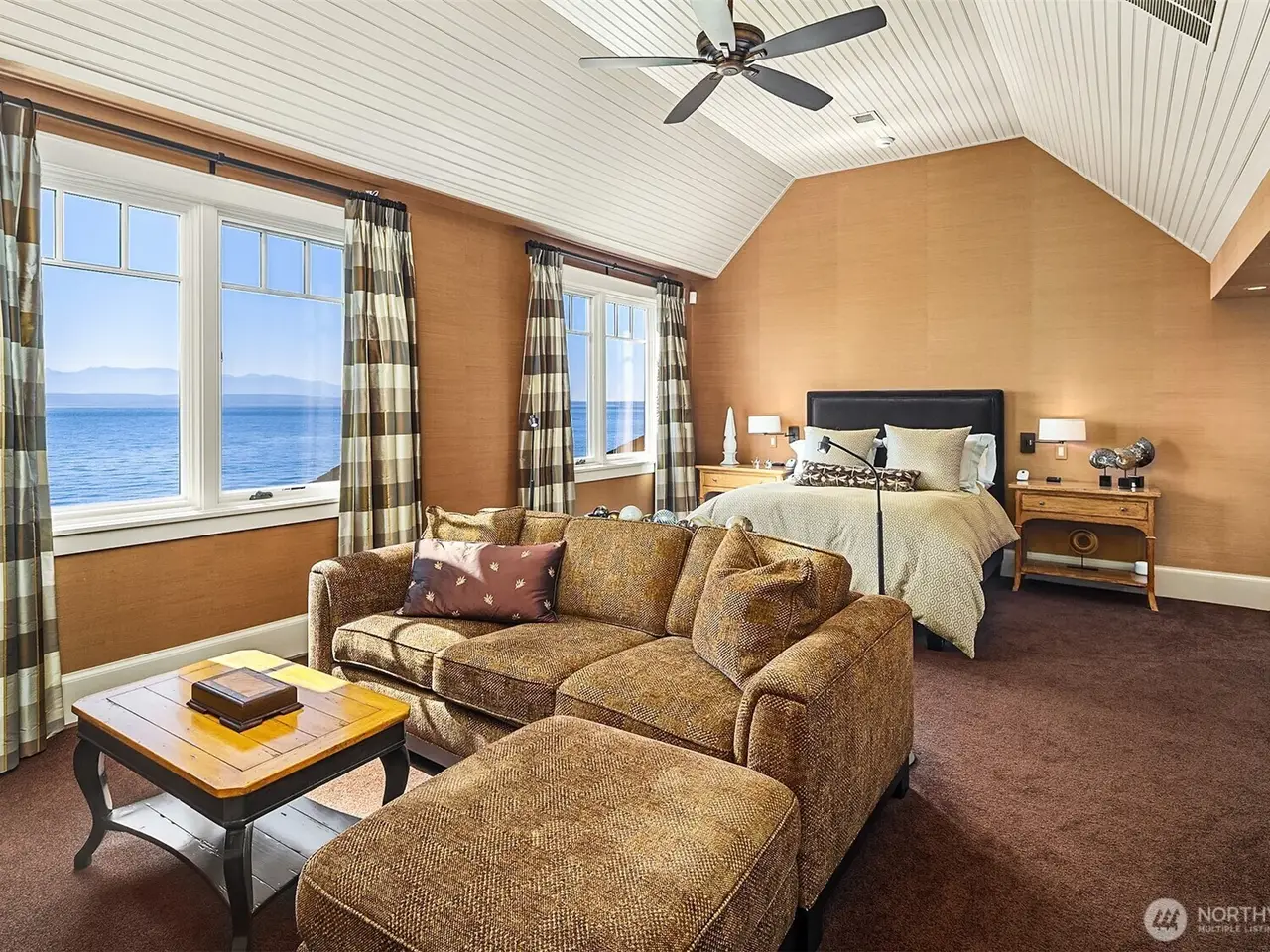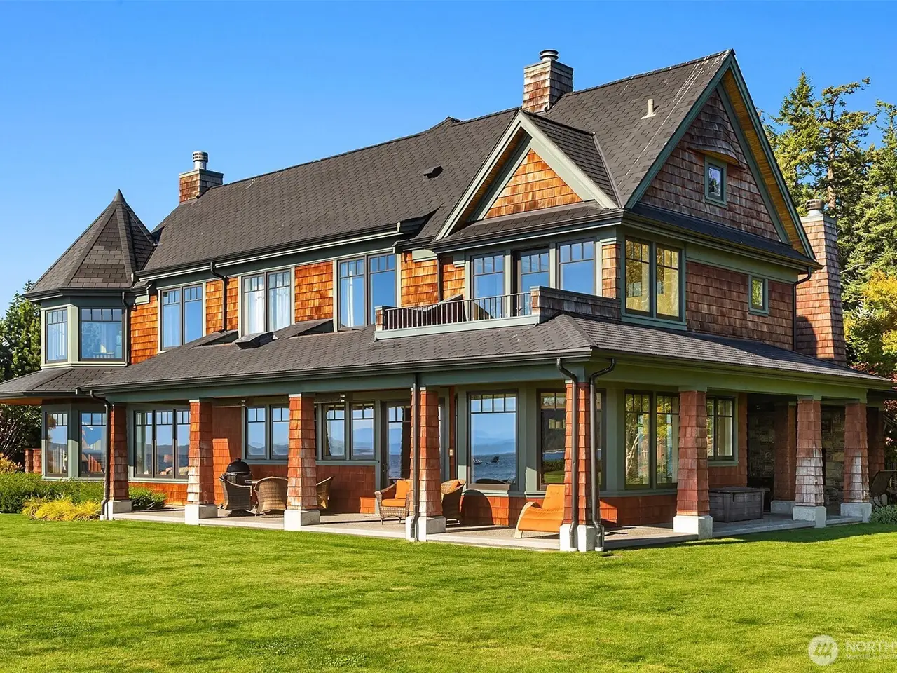 Where timeless elegance meets the sea, with 140 ft of private, no-bank, soft sandy beachfront on iconic Mutiny Bay, framed by sweeping views of Puget Sound and the Olympic Mountains. A refined estate with tasteful curated interiors, and a detached carriage house with additional entertaining space on one plus acre of pristine, gated grounds. Two beautiful structures, 7,000 sqft of exceptional living space, 2,500 sqft of garage and storage. Fully furnished and sold turnkey- an extraordinary offering, on the Islands most coveted shoreline.