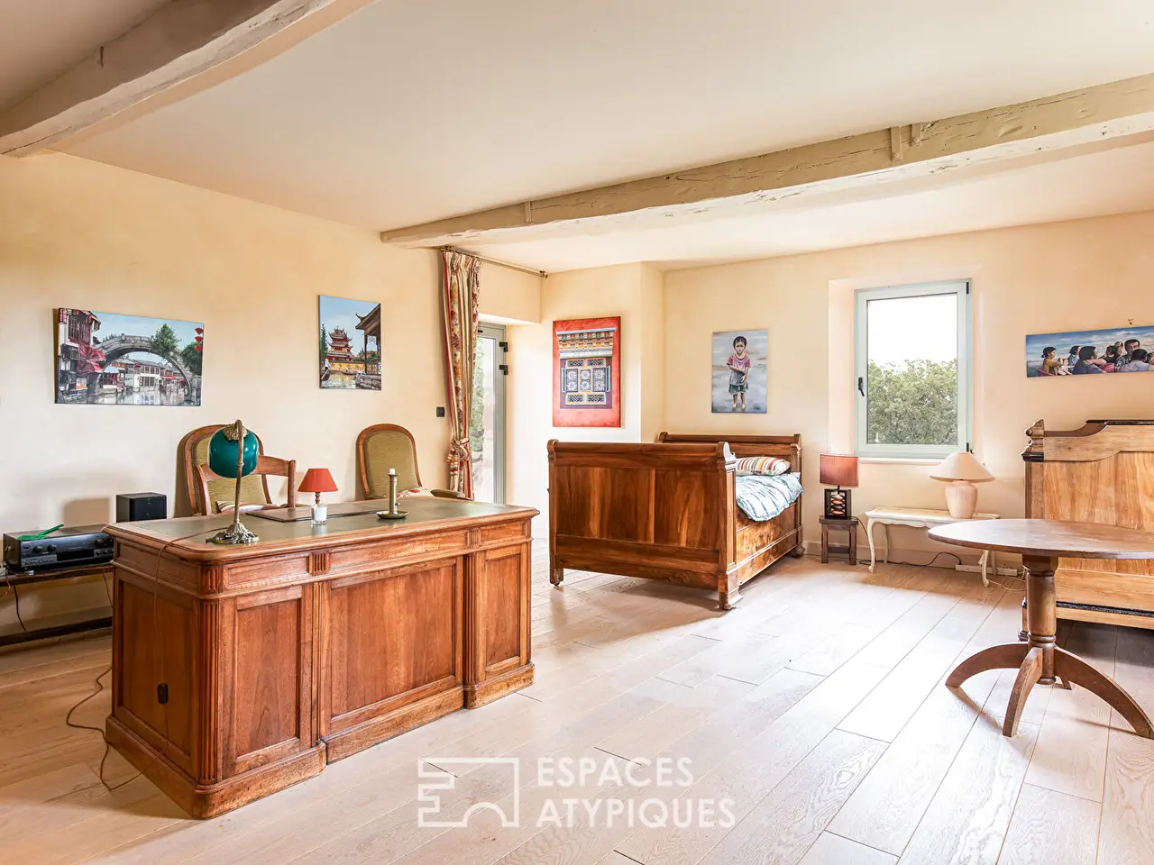 Magnificent estate located in the heart of a natural setting between Gaillac and Cordes-Sur-Ciel, offering perfect harmony between old charm and modern comfort. The estate is built around a courtyard paved with Lot stone, offering an authentic and welcoming atmosphere. It is divided into several dwellings and outbuildings. The main house of 220sqm on two levels, consists on the ground floor of a kitchen with period charm with open fireplace and exposed stonework, preserving the historic character of the place. Then comes a large living room with an imposing central fireplace and a Virac stone staircase, the real centerpiece of this space. The floor is split in two: on one side is the parental space with a bedroom, a dressing room and a bathroom. On the other side of this floor, two additional bedrooms with a connecting bathroom, one of which has access to a private terrace. Opposite the main residence is a second dwelling of more than 70 sqm, ideal for welcoming guests or for rental use. This house consists, on the first level, of a beautiful living room with a large fireplace, a separate kitchen, a bathroom and a bedroom. Upstairs, a large attic floor, where space has been created for two children's bedrooms, which also has a bathroom. Adjoining this home, a room of more than 60sqm on the ground floor, which could be suitable for a cinema room or a meeting room. Above the latter, there is a space of more than 70sqm, currently used as an office with a water point. Ideal for people developing their professional activity from home. Multiple outbuildings complete this exceptional place, such as a garage that can accommodate six cars, a veranda, with a room of 12sqm. The park is not to be outdone with more than five hectares, made up of orchards, truffle oaks, meadows and woods, as well as the swimming pool nestled in the heart of this bucolic environment. Many spaces can be reorganized according to your projects, whether it involves family reunion or the development of tourist activities. Cordes Sur Ciel: 14 min Gaillac: 20 min Toulouse: 50 min 12 x 6 swimming pool, salt, liner Underfloor heating, air/water heat pump radiator fireplace Double glazing electric shutter ENERGY CLASS: C / CLIMATE CLASS: A Estimated average amount of expenses annual energy costs for standard use, based on energy prices for the year 2021: between 1,910 euros and 2,650 euros REF. 6229 Additional information * 11 rooms * 7 bedrooms * 4 bathrooms * Outdoor space : 50000 SQM * Property tax : 2 146 €