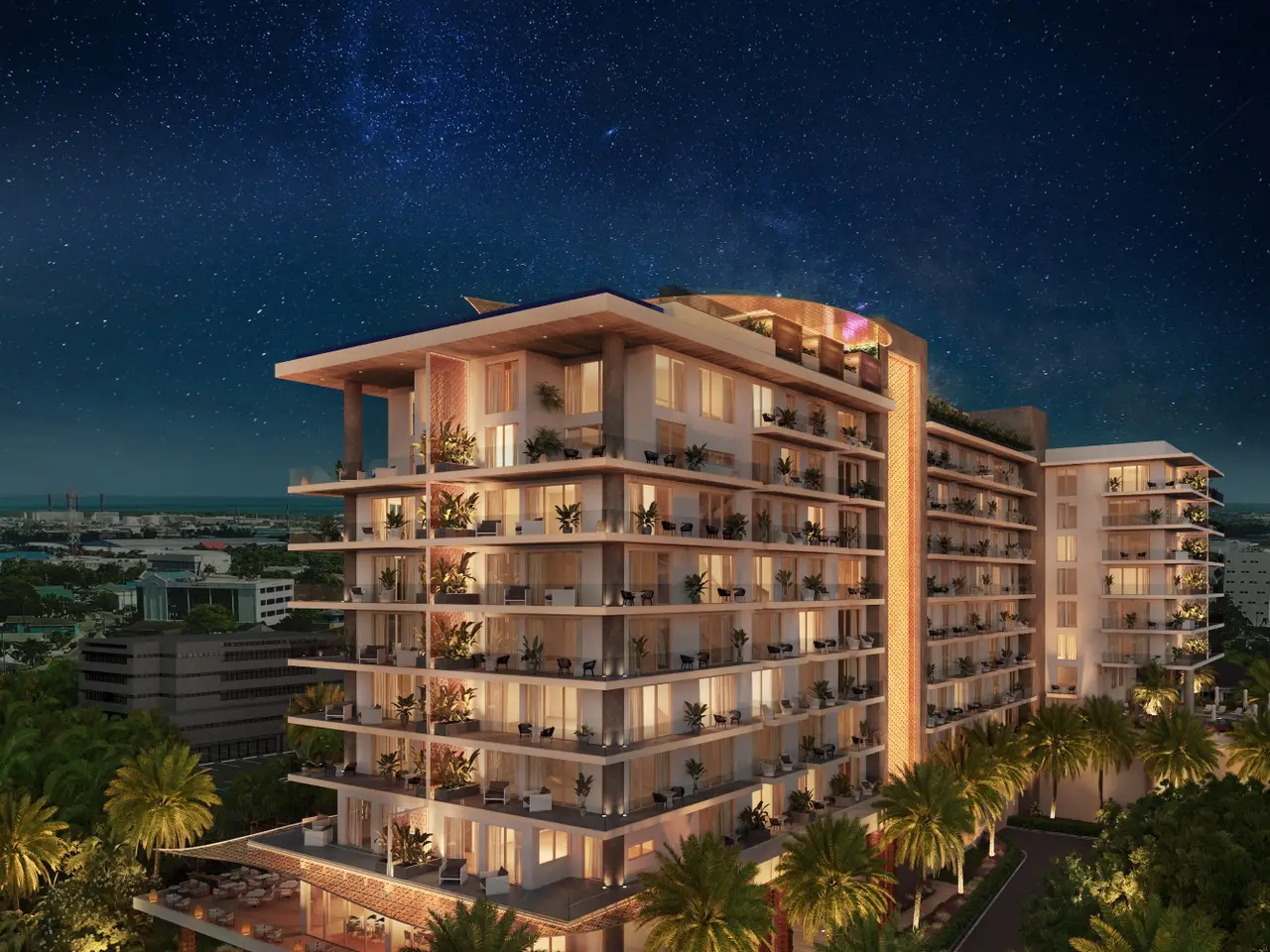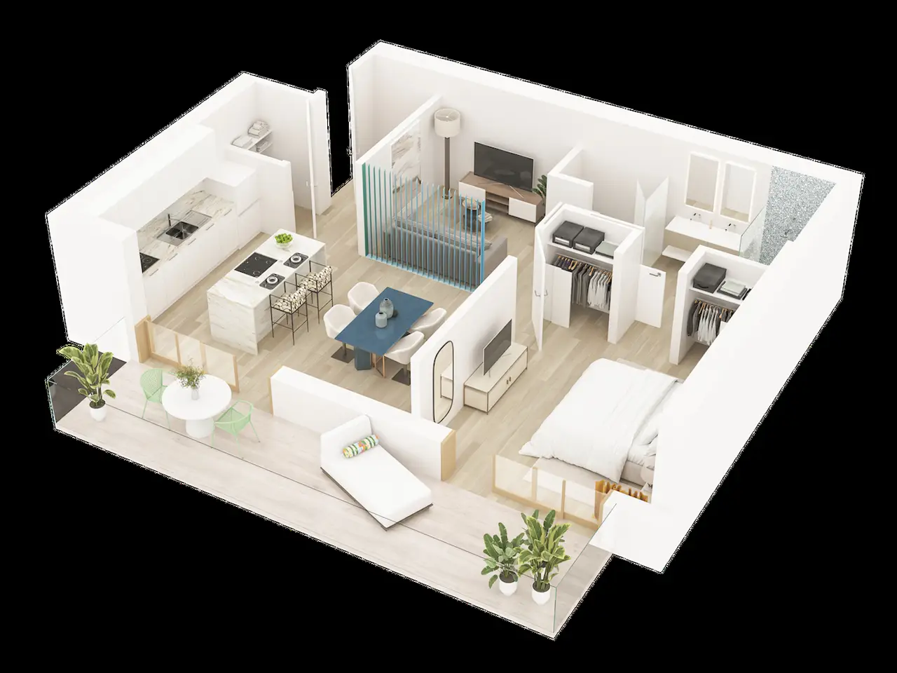 Cayman's next landmark development project, known as ONE\GT, fuses the very best of contemporary urban living from around the world - from the vibrant rooftop beach clubs of Miami and LA, to the local piazzas and street cafés of Europe, and of course exquisite Caribbean artistic flair. Comprising a 177-suite boutique hotel and luxury residences, with amazing on-site amenities, ONE\GT is located at the edge of central George Town, on Goring Avenue, directly behind Bayshore Mall. With amazing on-site amenities, ONE\GT will be the capital's first ten-storey structure, rising to 144' above ground level and offering spectacular multi-aspect views. Its eleventh floor "Sky Club" with its unique infinity edge pool, private cabanas, bar & grille, yoga, treatment, and event areas, will bring a new level of sophisticated enjoyment to our islands, whilst its "signature" restaurant, grand café, and many other amenities will ensure owners, tenants and guests can enjoy ONE\GT to the fullest. There will also be a private residents' pool, full gym, and separate residents' entrance, along with onsite covered and valet parking and owner storage units available. Owners will also enjoy very solid returns on investment from ONE\GT's rental programs or can choose to rent their units on the open market. Estimated completion date Q2 2025. Enjoy truly "elevated modern island living" at ONE\GT and invest now before prices elevate too! Unit Type B.1 This one bedroom plus den residence features ONE \ GT's innovative articulating wall design to create a flexible living space allowing the creation of a private den. The unit offers a full kitchen with centre aisle/breakfast bar and direct access to the large private terrace from the spacious living area and the master suite with amazing views and great inside/outside space.