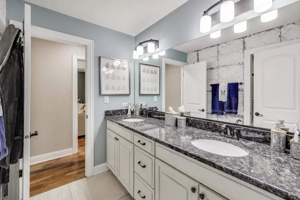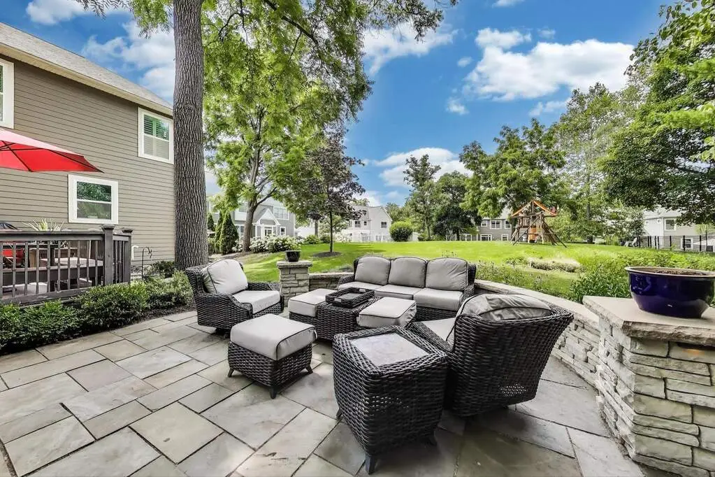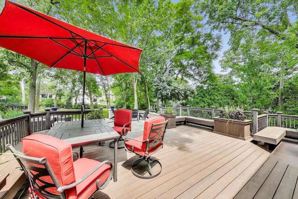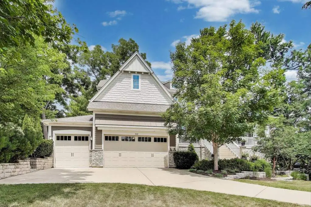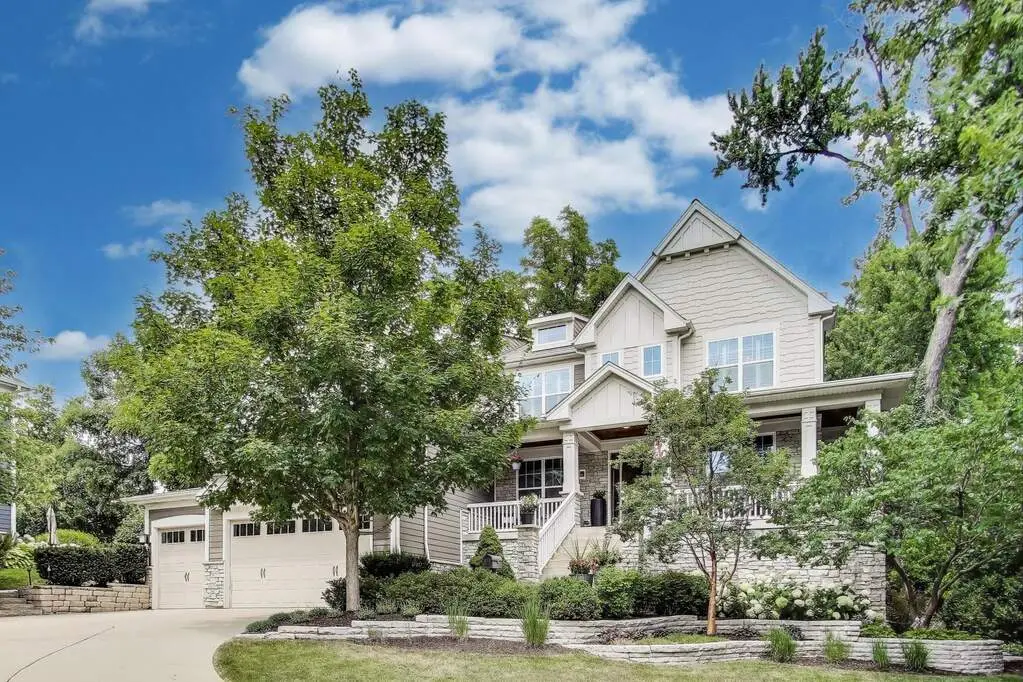 East Coast elegance meets Midwestern charm in this beautifully crafted shingle-style residence, ideally located just blocks from vibrant downtown amenities-including restaurants, boutique shops, the train, and top-rated schools. This one owner home, built in 2014, 5,700 sq.ft approx. was thoughtfully designed for modern living, featuring an open-concept main floor and a spacious backyard ideal for entertaining. From the inviting front porch to the moment you step through the front door, you'll be struck by the attention to architectural detail throughout. The heart of the home is a stunning family room anchored by a stone fireplace, seamlessly flowing into the kitchen and dining area. Expansive windows throughout flood the interior with natural light, creating a warm and welcoming atmosphere. Upstairs, the second level offers generously sized bedrooms, each with excellent closet space and access to multiple bathrooms and a well appointed laundry room. The luxurious primary suite is tucked away in its own private wing and features two walk-in closets, and a spa-inspired bathroom. The fully finished lower level is equally impressive, offering a custom wet bar, stylish ambient lighting, a fifth bedroom, and abundant storage. Step outside to a beautifully landscaped backyard complete with a deck and slate patio-perfect for outdoor gatherings. Additional highlights include an attached three-car garage with a fourth tandem space, offering ample room for vehicles and storage. This exceptional home combines timeless style, modern comforts, and a highly desirable location. A must-see property for discerning buyers.