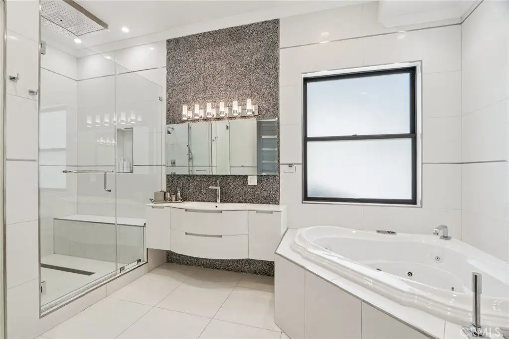 Granada Hills Stunner!!! Gated Mediterranean inspired two-story masterpiece where you find elegance in every inch in this home. An attractive exterior sets the tone for this remarkable home where quality craftsmanship meets modern artistic design with the variety of textures and materials that successfully come together for an elegant-yet practical appearance. Remodeled to perfection in 2018, this five bedroom, 5.5 bathroom beauty provides over 4,000 square feet of comfortable living space with lavish details throughout, including the bathroom with Spa Tub, large balcony overlooking the pool from the second floor, and so many wonderful features including Raxoll insulation and presidential three layered roofing. Creative custom double door entry with striking chandelier, foyer opening to the rest of the home with dramatic high ceiling, recessed lighting, Italian custom painting, tiles from Italy and Spain and a beautiful fireplace. You will appreciate the Mielle high-end appliances, the uniquely designed lighting system, LED smart control system, surround sound in the living room, family room and patio with security cameras around the house. All bedrooms and living areas are hardwired for network and TV. Just in time for Summer. Outside is an entertainer's paradise featuring pool/hot tub with water and fire features, the latest version of high-end Pantere pool equipment with a smart remote controlling system, covered patio with ceiling fans and built-in heaters, custom built covered BBQ area, outdoors bathroom and sauna and so much more. By far one of the best homes listed in Granada Hills today!