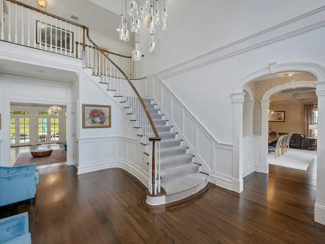 Tucked away on over seven quiet acres off prestigious Round Hill Road, this private estate offers a serene blend of luxury, space, and style. The main residence is complemented by a beautiful pool/guest house designed for effortless entertaining and resort-style living. At the heart of the home, a Christopher Peacock kitchen showcases statuary marble countertops and backsplash, double islands, and professional-grade appliances, all centered around a custom command station with built-in desk and storage. The kitchen opens seamlessly to a sun-filled family room with bespoke cabinetry, creating the perfect setting for relaxed gatherings. The first floor also features a front-to-back living room, elegant dining room, inviting home office, and private en-suite guest suite. The second floor features four spacious en-suite bedrooms, including a luxurious primary suite with two spa-inspired primary bathrooms and two expansive walk-in closets. A large laundry room and recreation/family room complete this level, offering flexibility for work, play, or relaxation. The lower level is fully finished and thoughtfully designed with a game room, lounge, gym, and media room, providing abundant space for leisure and entertaining. Outside, the resort-quality pool/guest house, designed in 2017 by renowned Greenwich designer Susan Alisberg, sets a new standard for leisure. A folding Nano wall blurs the lines between indoors and out, revealing a vibrant kitchen with snack bar and stylish lounge that open to the bluestone-surrounded pool. Whether hosting summer soires or unwinding in the evening breeze, this is an entertainer's paradise. Additional highlights include a Savant whole-house sound system, three-car garage, and 40-kW Cat generator. A rare offering combining timeless design, modern comfort, and absolute privacy in one of Greenwich's most coveted locations.