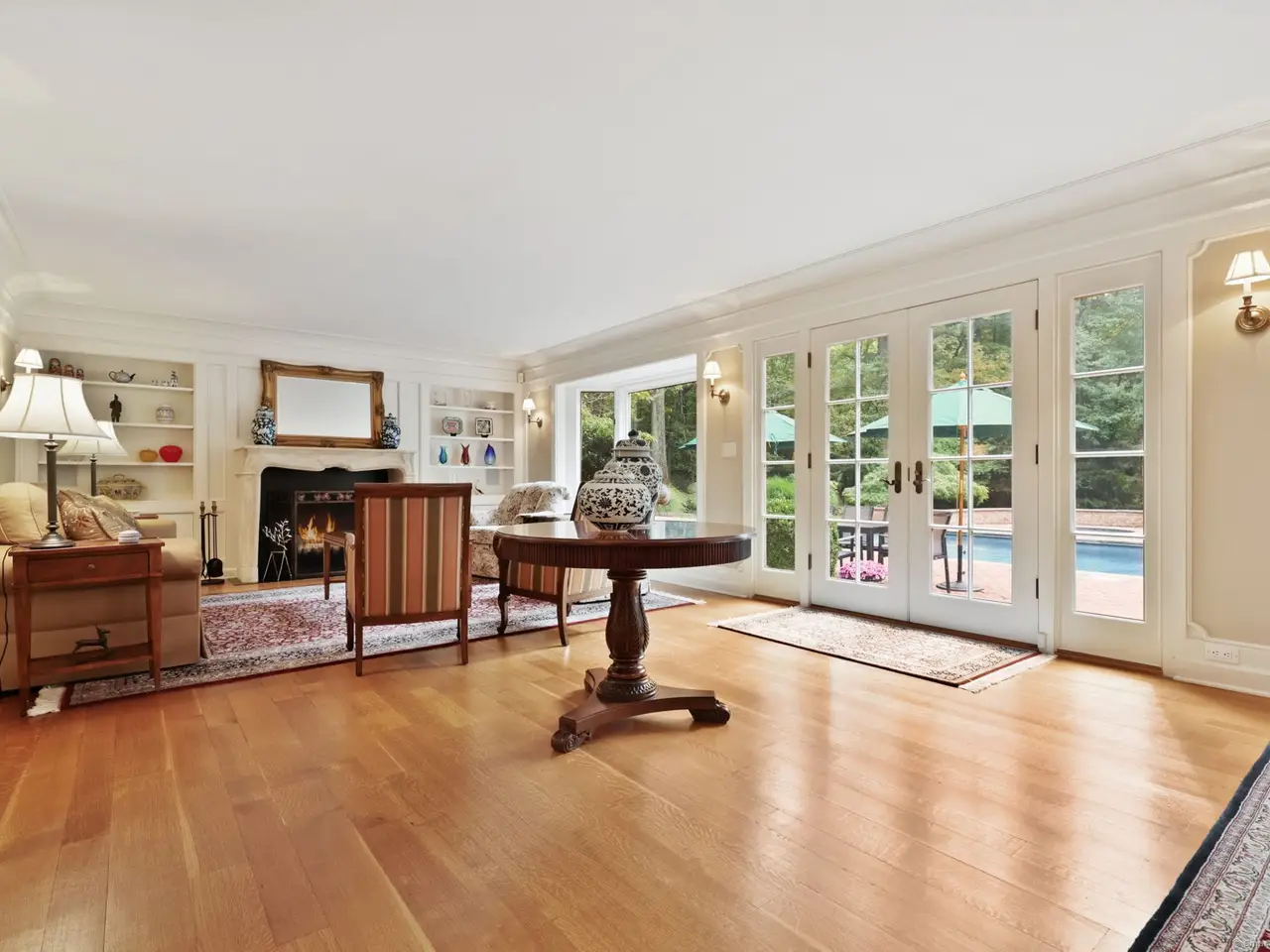 Discover this remarkable private retreat nestled amid mature trees and stunning walled gardens. This meticulously maintained home offers a serene escape on a private, landscaped property. Inside, enjoy beautiful wide plank oak flooring and an open plan layout that seamlessly connects the gourmet kitchen, equipped with top-of- the-line Sub-Zero and Thermador appliances, with the dining and living areas, creating a warm and comfortable flow. French doors open to a spectacular outdoor entertainment area featuring a pool, separate spa and built in gas bbq. Additional highlights include a spacious wood-paneled first-floor office, a 2nd floor TV room with sauna and a spacious finished lower level ideal for play room or home gym. Compelling expansion or renovation possibilities