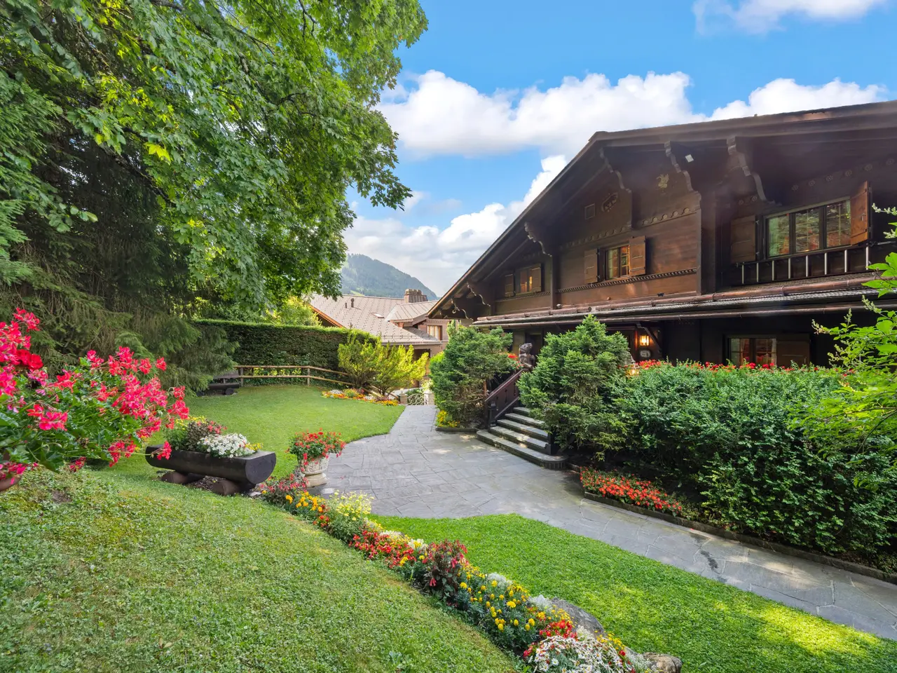Nestled in the heart of Gstaad, this luxurious chalet offers an unparalleled Alpine experience. With 400 m² of meticulously designed living space, it blends traditional charm with contemporary amenities. The expansive windows provide breathtaking views of the surrounding mountains, creating a serene backdrop for daily life. Each room exudes warmth and sophistication, making it a perfect retreat from the hustle and bustle of city life. Inside, comfort is paramount. The chalet boasts a large living and dining area as well as 5 bedrooms echo with its own bathroom. The air-conditioning system ensures optimal temperature control year-round. A grand fireplace serves as the centerpiece of the main living area, offering cozy evenings in the winter. The elegant interiors feature intricate woodwork combining the traditional rustic elements with modern amenities. The chalet is equipped with a lift for easy accessibility across its multiple levels. The beautifully landscaped gardens surrounding the property offer a peaceful escape, with lush greenery and vibrant blooms. This exquisite property is a unique opportunity to own a piece of paradise in one of Switzerland's most coveted destinations.