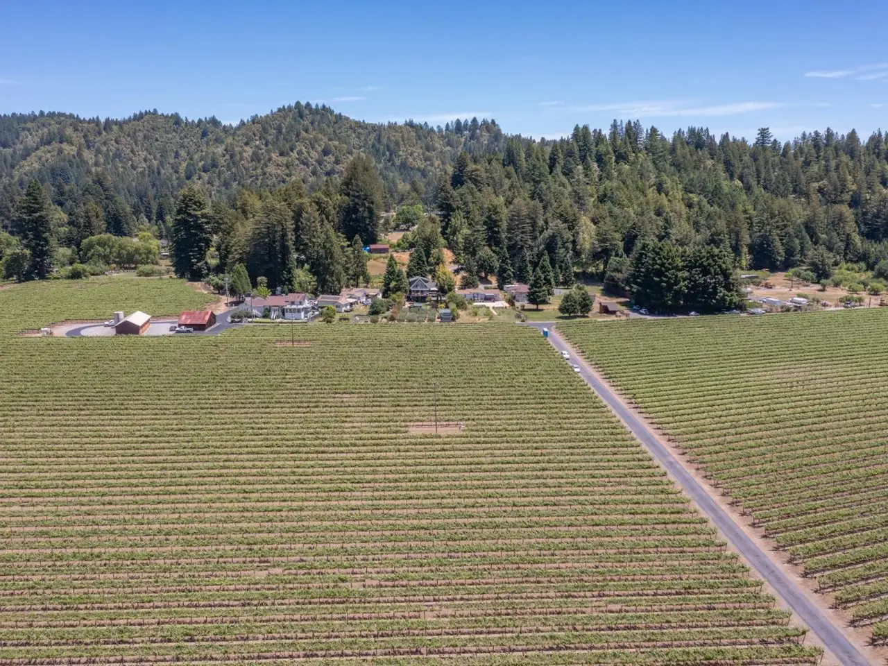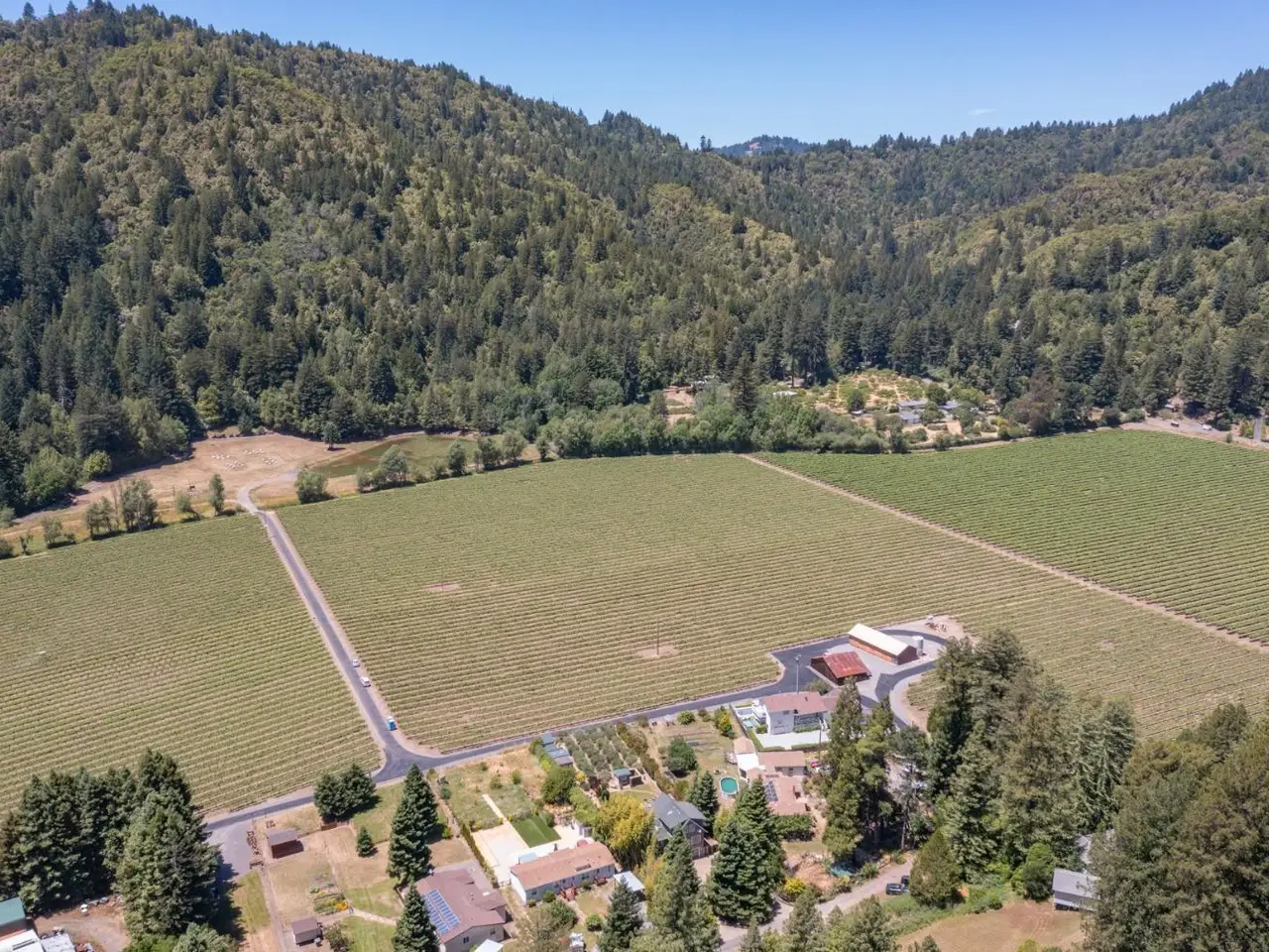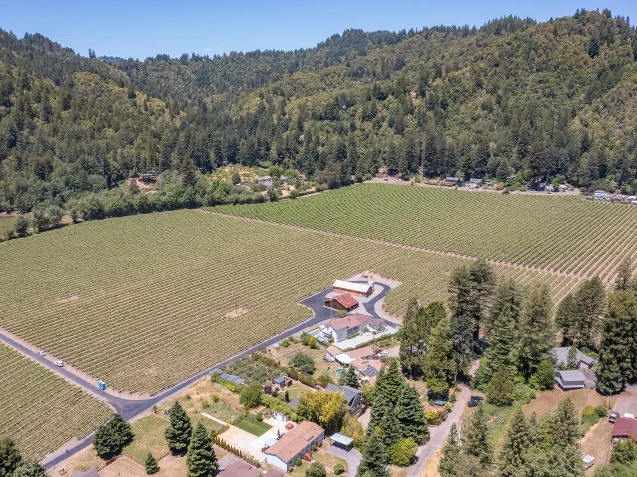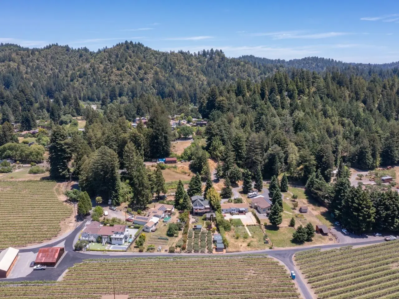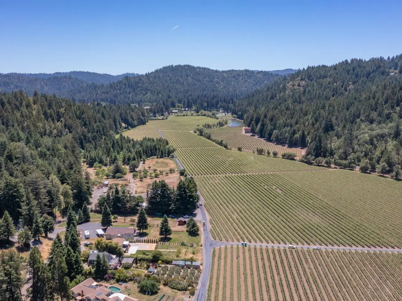 Escape to your own private oasis in this exquisite luxury property, where priceless views of the Korbel vineyard and the majestic mountains of the Russian River Valley set a breathtaking backdrop. Furnished with items meticulously curated by the acclaimed Zeitgeist Sonoma, every detail is expertly coordinated. Custom-built features and high-end finishes adorn every corner, making this home truly unique. The second-floor main level is ideal for entertaining friends or unwinding on the expansive covered deck while taking in the beauty that surrounds you. On the ground floor, a versatile fourth bedroom could be used as a game room or second living space, complete with a built-in Murphy bed and direct garden and spa access. Upstairs, the primary suite boasts a resort-like bath and walk-in closet. Outside, explore an expansive garden featuring artfully arranged garden beds, lush lawn, generous shaded patio, a firepit, craft studio, sauna with stone-walled shower, various fruit trees, and thriving olive orchard. From energy-efficient upgrades to advanced water filtration systems, no detail has been overlooked. Just a short walk from downtown Guerneville, yet nestled away from the hustle and bustle, this property offers a vacation-like setting you can cherish every day.