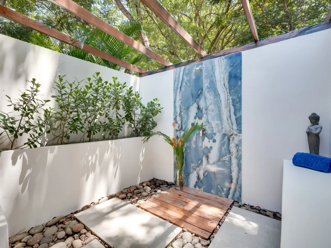 • Indoor and outdoor showers in master suites