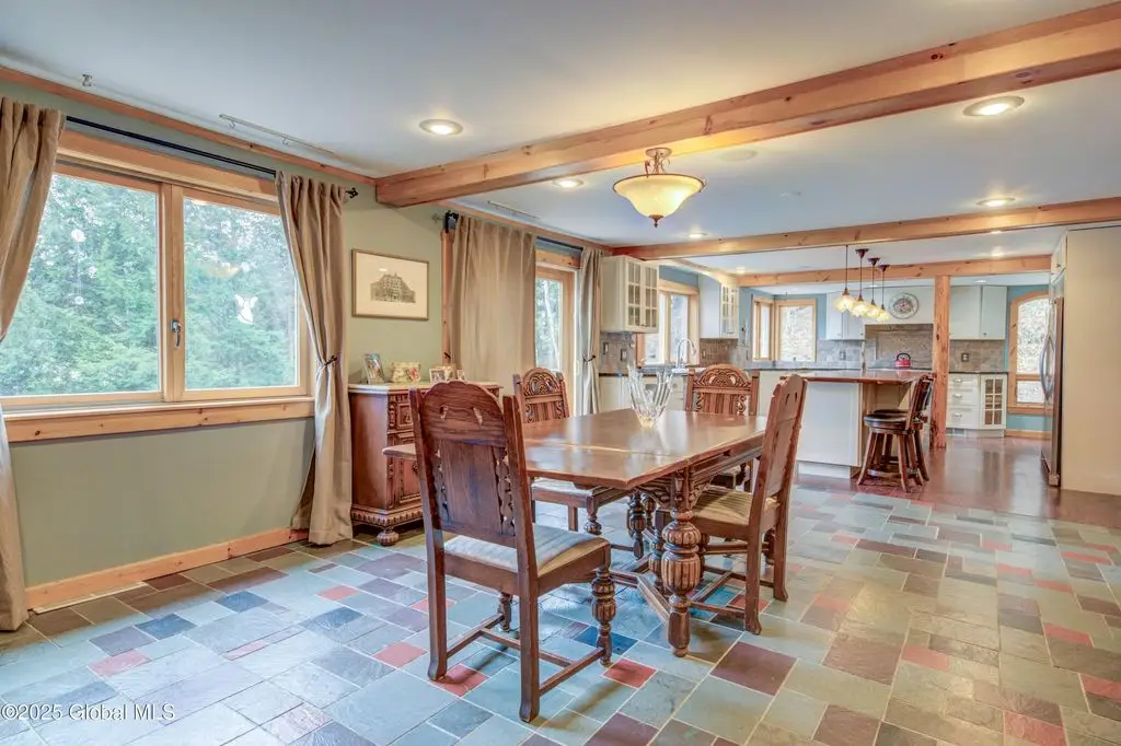 Stone hearth & vaulted ceilings