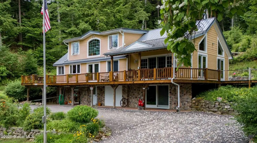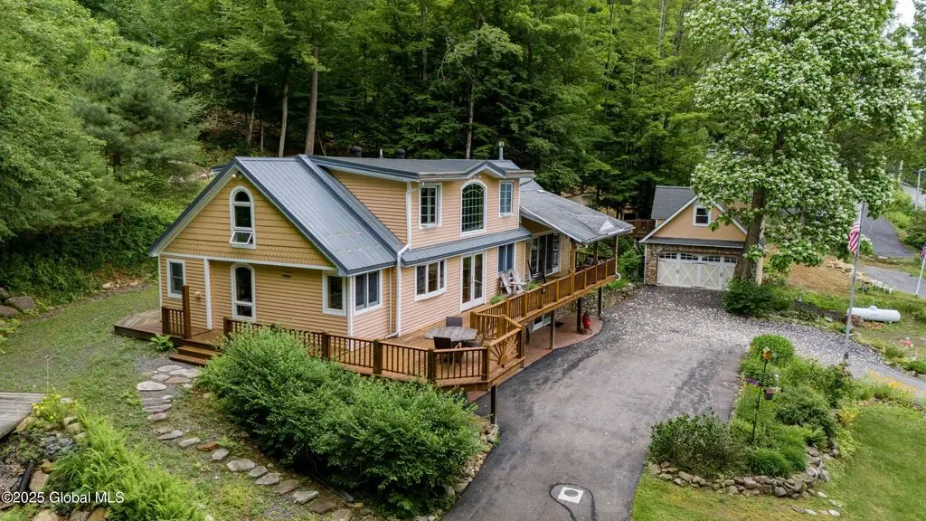 First class lakefront home w/120' on the Great Sacandaga! Property boasts high quality finishes & beautiful spaces, inside & out, with sophisticated Adirondack style. Gorgeous custom kitchen w/commercial appliances & lots of natural light. Vaulted ceiling & stone hearth in living room. First floor master w/luxurious bath featuring soaking tub & large walk in shower! Wrap around deck is accessible from multiple rooms. Enjoy lake views from most rooms of this amazing home. Addt'l BRs, full bath, & office space both upstairs and down. Laundry room on main level. Walk out basement w/additional finished space & workshop. Spacious guest room above det. 2 car garage (w/3 bays below for 'toy' storage!) Whole house generator. Adjacent 15 acre addt'l lot w/ 30' lakefront available for addt'l $165k