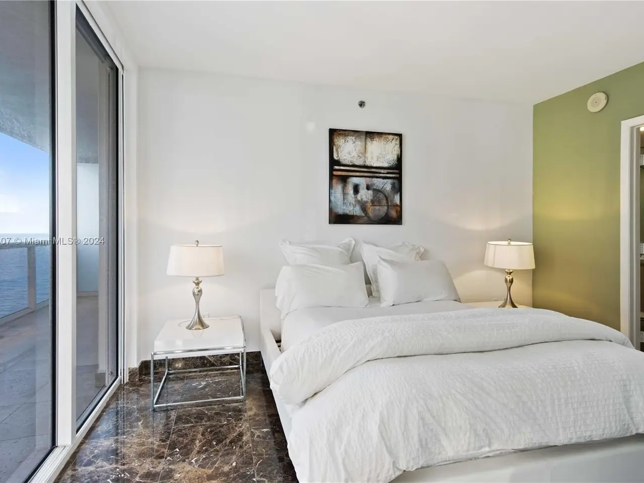 Enjoy the stunning views of the ocean and the intracoastal from this gorgeous two bed/two bath northwest corner unit. This luxurious residence has marble floors in every room and spacious beds in both bedrooms. You can also access a variety of amenities, such as a two-story exercise room, a spa, a sauna, a steam room, three pools, a bar with pool service, and 24-hour concierge and valet parking.