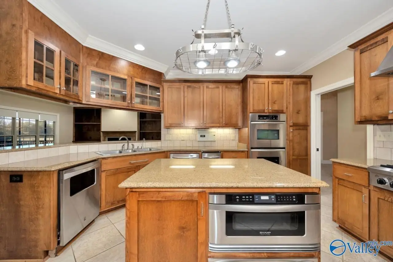 Custom built 2007 full brick luxury home sits peacefully on 7.0 acres quietly in Harvest yet convenient to shopping, dining, I-565 & I-65. Property is level, open, wooded with small pond and partially fenced. This incredible home features large foyer with exquisite chandelier, isolated master ensuite w/tray ceiling & a Bain Ultra ThermoMasseur whirlpool tub, formal dining w/gorgeous chandelier, glass paneled pocket doors, tray ceiling & hardwoods, hearth room w/gas fireplace, tray ceiling, hardwoods, chef's kitchen open to eating area, large sunroom, family room with fireplace, tray ceiling, built ins. Bedroom 3 can be an in-law or teen suite w/private bath & more. Ask for features list