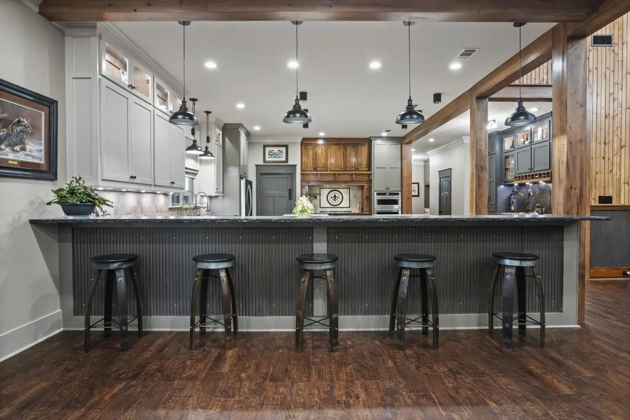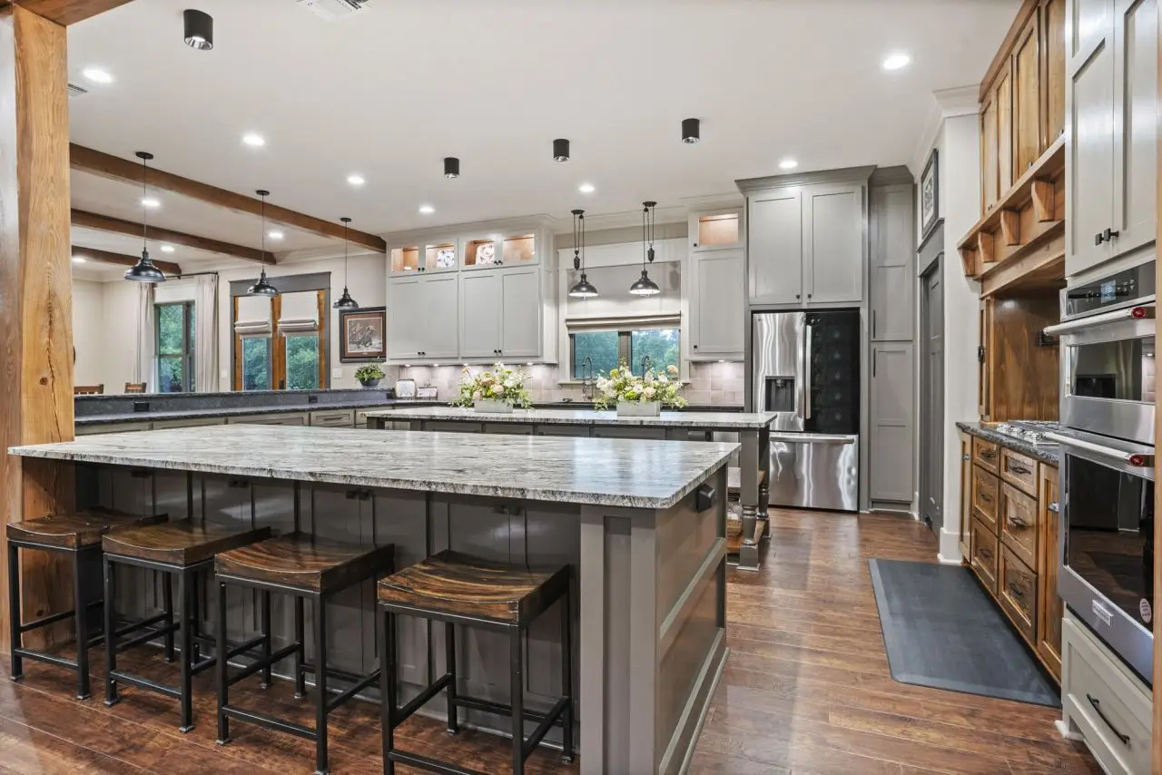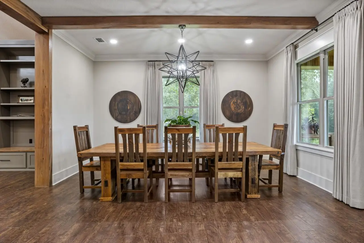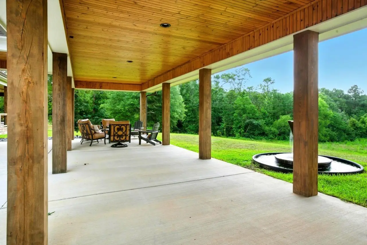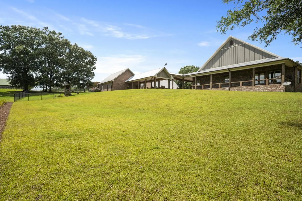 Welcome to refined Southern living at its best. Lined with majestic oaks and set on two peaceful acres, this newly-built custom home is a sanctuary. The oversized wraparound porch was designed with slow mornings and rocking chairs in mind. However, kids will love the rain or shine play space too!This elite home opens into a grand great room with a cathedral ceiling, rich beadboard detailing, and extensive, custom cabinetry. The kitchen is a chef's dream--featuring dual 10-foot islands, shaker cabinetry (including hand-selected stained cypress), and many premium finishes. The walk-in pantry will keep everything in order!Adjacent, the large wet bar showcases a black walnut countertop and two wine coolers. The primary suite brings relaxation including a sitting room highlighted with natural light. The spa-worthy bathroom boasts a therapeutic soaking tub with microbubble air bath and thermal therapy, a zero-entry dual-head shower with body sprayers, and a Kohler Eir heated-seat toilet. Designed with luxury and function in mind, the massive walk-in closet delivers with a chandelier-lit dressing island--ideal for preparing for your next getaway! Also, a dedicated concrete safe room gives you the security you want.Laundry will almost be fun in a utility haven equipped with a Kohler farmstead sink, stylish ceiling fans, long hanging rod, and ample storage! Outside, a sparkling pool invites you to unwind or entertain, with a convenient half bath just steps away. Car enthusiasts and hobbyists will appreciate two detached garages offering a total of 7 vehicle bays and a large, floored attic for more storage! Experience the perfect balance of craftsmanship, modern luxury, and peaceful country living--welcome home.