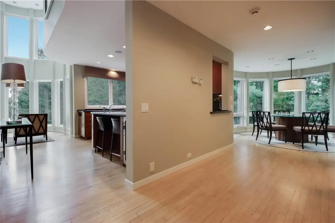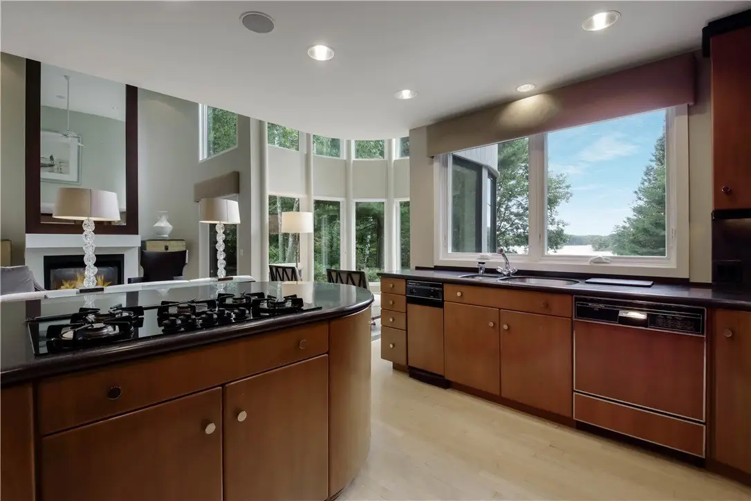 Architecturally striking Ken LaCoy-built home on Teal Lake. Set on 12+ acres with 700' of meandering frontage, this 4-bedroom, 5-bath residence is designed for relaxed lake living and entertaining, immersing you in the beauty of the Northwoods. Soaring ceilings and floor-to-ceiling windows capture tranquil wooded and water vistas, while the two-story great room, bathed in natural light, features a fireplace. The kitchen features custom cherry cabinetry, a wine fridge, ice maker, and high-end finishes. A surround-sound theater system enhances the family room experience, and a whole-home generator provides peace of mind. Additional features include an astronomy observation deck, a large lakeside 3-season porch, professionally landscaped gardens, a 2-car heated attached garage, and custom cabinetry throughout. Teal Lake spans over 1,000 acres with a maximum depth of 31 feet and is well known for excellent fishing-musky, walleye, bass, and panfish. With its scenic shoreline, natural islands, and pristine beauty, Teal Lake offers a peaceful Northwoods setting. This rare property blends exceptional architecture with the serenity of lake living-perfect for those seeking both quality design and an inspiring natural environment. No drive-bys, please. Showings by appointment only.