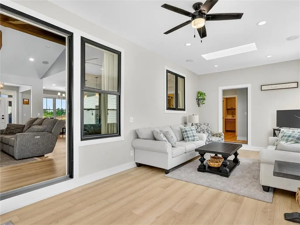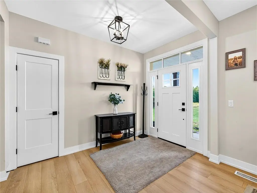 Luxury abounds in this completely custom '22-built Contemporary Ranch home on over two sprawling acres in Rush-Henrietta School District! Inviting, well-landscaped front porch and entry opens to huge Great Room with gas fireplace. Totally custom Chefs Kitchen designed with entertaining in mind offers gorgeous cabinets and solid surface counters, with a gigantic island and a bonus walk-in Butler's Pantry. Relax by the gas fireplace or host your next get-together in the light and bright morning room complete with sliding glass door to the private stamped concrete patio complete with custom built-in fire pit. Enjoy extra privacy in the ample Primary Suite, complete with walk-in closet and custom tiled bath, located conveniently close to 1st floor laundry room. Partially finished 15-course basement offers extra living space and tons of storage. Top of the line Anderson windows and mechanicals throughout. Other upgrades include remote-controlled custom window blinds throughout the main floor, ceiling/wall speakers throughout, bathroom heater fans, Culligan whole-home water softener & filter, and Ring doorbell/camera package. Conveniently close to shopping, restaurants, county parks, and expressways. Delayed negotiations until Tuesday 9/09 at 8pm. Open House Sunday 9/7 from 12pm-1:30pm.