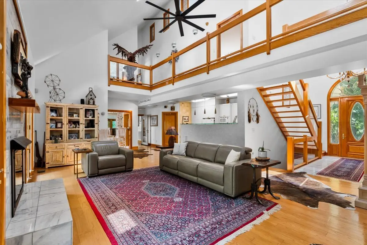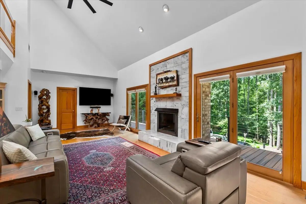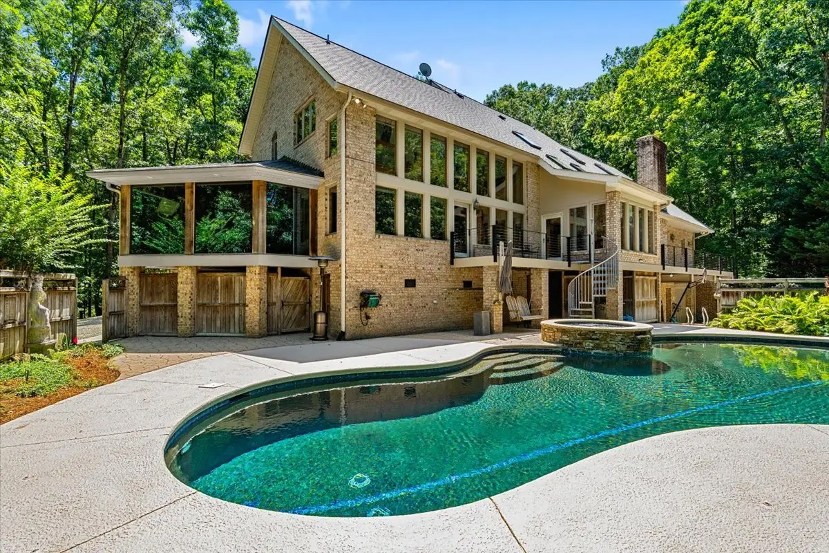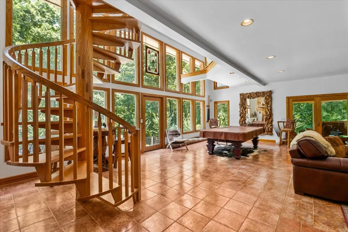 Welcome to this Exceptional Custom Built Brick Contemporary Estate located on 10+ Heavily Wooded Acres! This Absolutely Amazing Home Sits Deep on the Property & Offers Total Privacy & Seclusion! The Super Light & Bright Entry Opens up to a Stunning 2 Story Great Rm w/Custom Woodworking! The Main Level Offers a Formal Great Rm w/Deck Entry + Kitchen/Breakfast Area Filled w/Sun Drenched Light! In addition, there is a Formal Living Rm w/FP & All Glass Sunroom Overlooking the Lush Rear Yard! The Main Level Also Offers a Guest Suite w/Full Bath! Upper Level Has 3 Bedrooms Including a Breath Taking Primary Suite w/Sitting Area + Upper Level Loft! This Room also Offers an Impressive Primary Double Baths w/Oversized Walk In Closets + Steam Shower/Soaking Tub In Between! Upper & Lower Level Laundry Rooms! 2 Car Main Level Garage/Exercise Rm which is Heated/Cooled + a Basement 3 Car Garage! Stunning Gunite Pool w/Overflowing Hot Tub! New Roof in 2025! Whole House Generator! Multiple Decks!