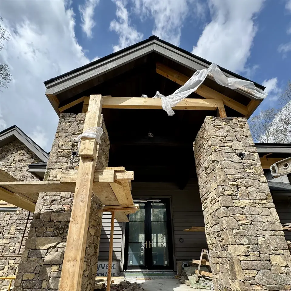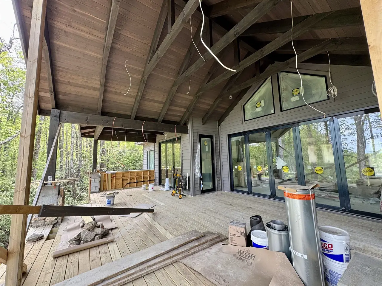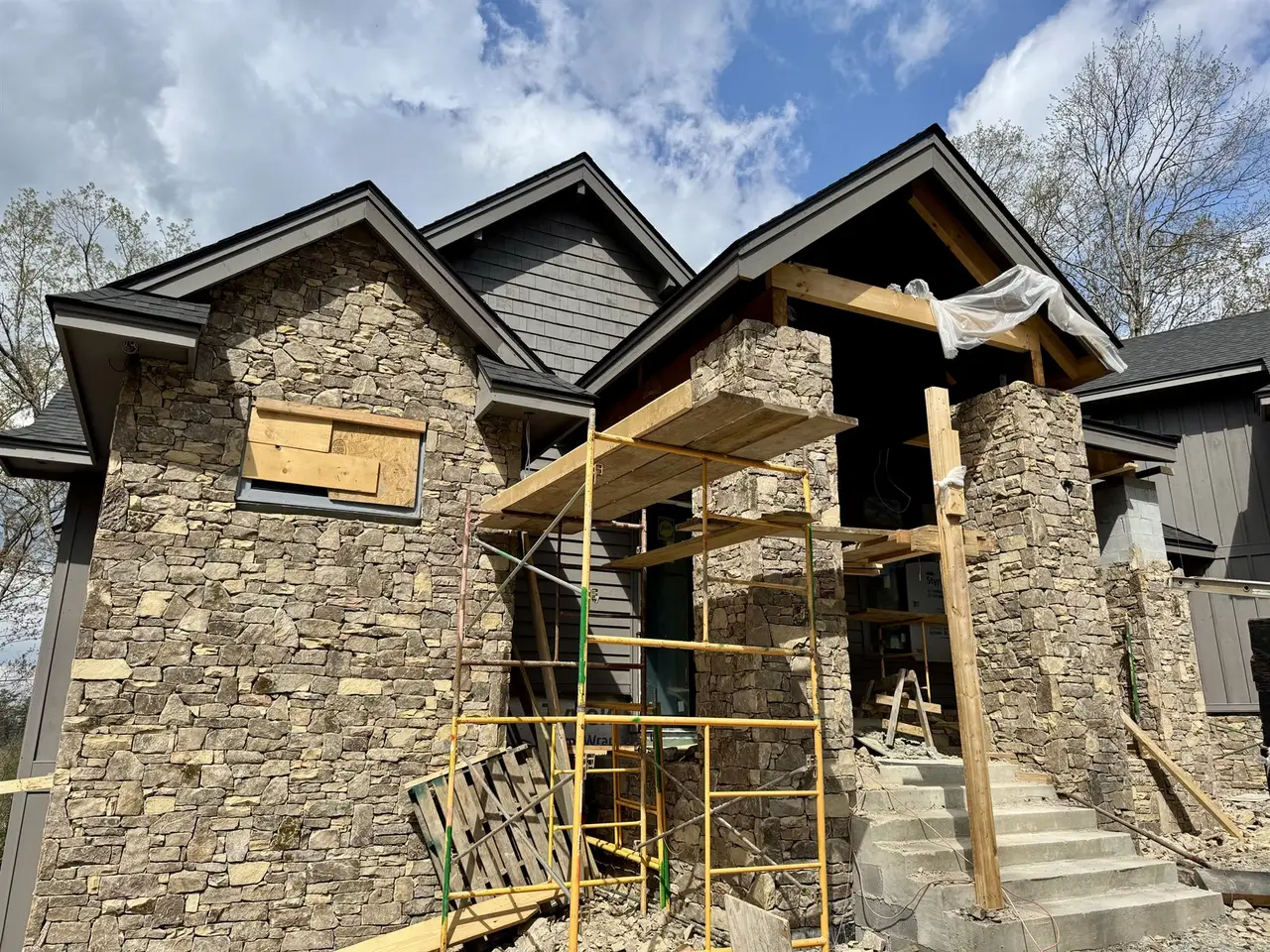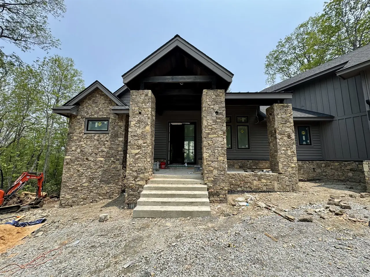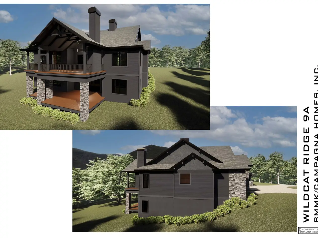 Nestled within the gates of Wildcat Cliffs Country Club but part of Wildcat Ridge Estates, this exquisite new construction estate home by Campagna Homes offers the pinnacle of luxury mountain living - without the requirement of club membership. Thoughtfully designed with a total of 4,298 heated sq ft and 7,514 total covered sq ft, AND ELEVATOR, this high-end residence blends timeless craftsmanship with refined modern comfort. The open-concept floor plan features a seamless flow between the gorgeously beamed cathedral ceiling living room into the dining area and gourmet kitchen, complete with top-of-the-line Thermador appliances and dry bar with ice maker - ideal for entertaining. Enjoy outdoor living on expansive porches both upstairs and downstairs, perfect for taking in the peaceful mountain views, breezes and serene natural surroundings. Two Tennessee flagstone wood-burning fireplaces with gas starters, one in the living room and one on the covered porch, add warmth and ambiance on chilly mountain evenings. Telescoping Pella glass doors lead from the living area to the expansive covered porch with fireplace and built-in barbecue for easy indoor/outdoor entertaining. The main level includes a split plan for privacy with a spacious primary suite with a luxurious bath on the west end and a private guest suite with a full bath on the east end. Additional highlights of this exceptional property with views include a full main level laundry room with sink and a secondary laundry area downstairs and a finished lower level featuring a large and open family room, game room, wine bar, a generous bedroom with ensuite bath plus an additional guest room or study with another full bath. This home will easily and comfortably accommodate a large family! There is plenty of space outside on the gentle lot for furry friends to frolic, gigantic gardens to grow and for toasting s'mores and stargazing around the outdoor fire pit. The oversized garage includes a dedicated golf cart bay along with a 576 sq ft unfinished area above that could be finished to use as a bunk room, home gym, office or additional storage space. Located within the gates of Wildcat Cliffs CC but part of Wildcat Ridge Estates so club membership is NOT required but the club is fabulous and offers an exceptional lifestyle with a premier golf course, croquet facilities, and a vibrant, welcoming membership. Architectural plans, renderings and finishes are subject to changes prior to construction completion.
