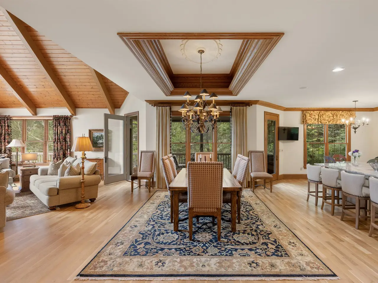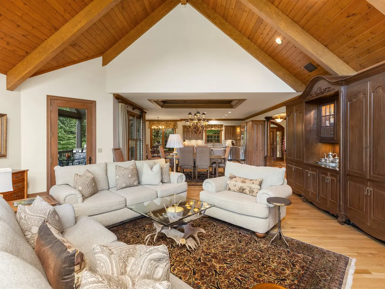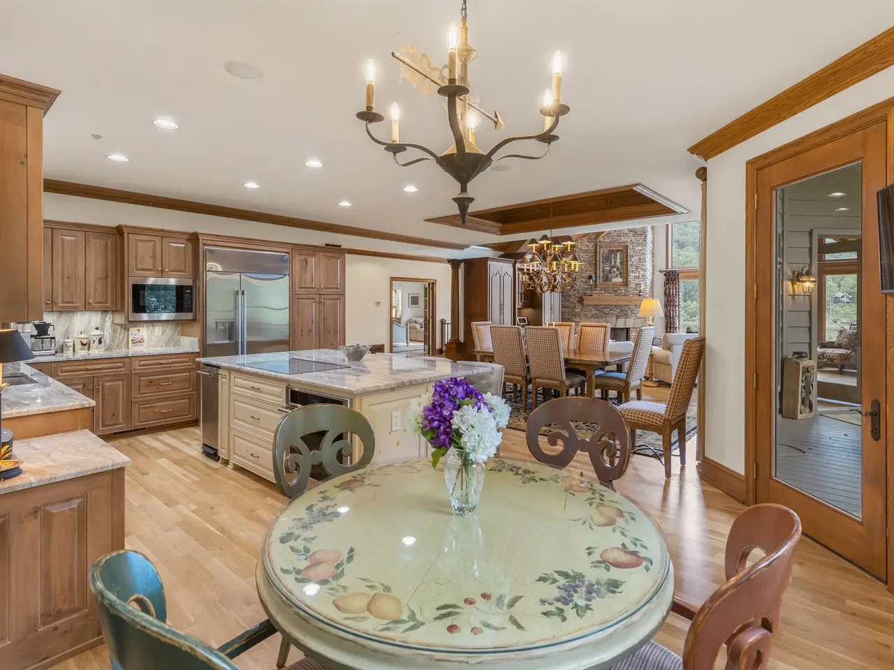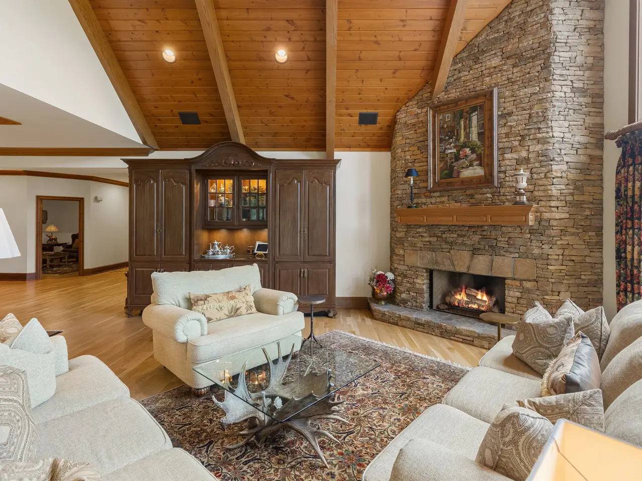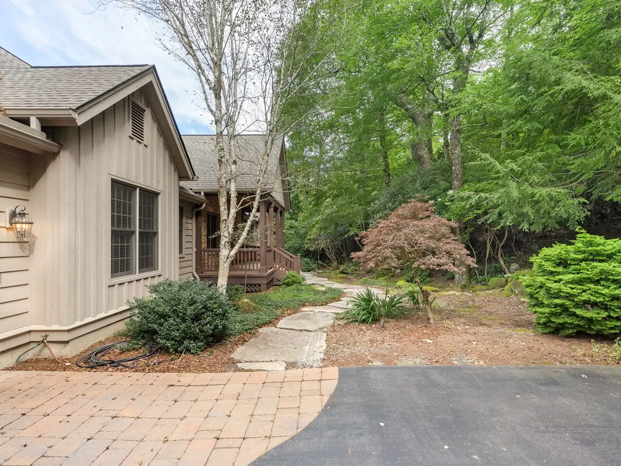 This is the panoramic BIG VIEW! Prepare to be captivated by sweeping, unobstructed views of iconic Whiteside Mountain from this stunning Highlands Falls Falcon Ridge residence, a home so remarkable it has been featured twice in Architectural Digest. Designed with generous proportions and effortless flow, the home offers main-level living with the primary suite conveniently located on the entry level. Architectural details abound, highlighted by custom wormy chestnut and oak features throughout, including an impressive 3? solid wormy chestnut entry door. The primary suite commands breathtaking mountain views and sunrises and boasts a lavish Italian marble bath with soaking tub, oversized shower, dual lighted mirrors, hidden lighted vanity, Kohler fixtures, custom walk-in closets, and a private wet bar with sink and mini-fridge. The open-concept living, dining, and kitchen spaces flow seamlessly onto a screened porch with a fully outfitted grilling station featuring a Blaze grill?an entertainer's dream with Whiteside Mountain as the backdrop. The main level also conveniently includes a guest bedroom, full bath, office/den with custom glass paned wormy chestnut and oak door, and a full laundry room with sink. The lower level provides for guest privacy with a second living area with fireplace, private deck, two spacious en-suite bedrooms, powder room, bonus/flex room with gym/playroom potential, and a secondary laundry area. Recent upgrades are extensive, including a remodeled kitchen, refinished hardwood floors, 27 new windows, new roof, gutters with guards, encapsulated crawlspace, repaved driveway with focal pavers, updated HVAC systems, new water heaters with recirculation pump, blown-in attic insulation, new gas logs in main level fireplace, and view clearing to fully showcase dramatic views of Whiteside Mountain, Wildcat Ridge, and Cullasaja Club beyond. A drainage system beneath the upper deck ensures protection for the lower-level outdoor living area. Peace of mind comes with a 500-gallon fresh water reserve tank and a whole-house generator. A two-car garage with workshop, along with a welcoming exterior accented by a serene water feature, completes this mountain sanctuary. This Highlands Falls home is more than a residence?it is a retreat of timeless architecture, meticulous updates, and awe-inspiring views. Membership to Highlands Falls CC is not mandatory but the amenities are tremendous and the club is vibrant.