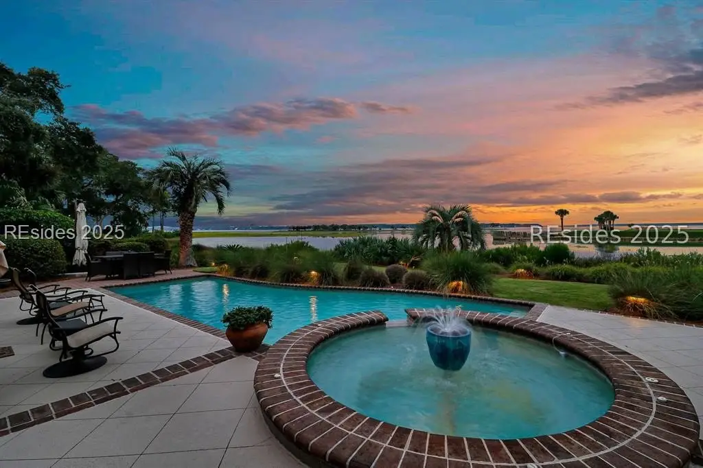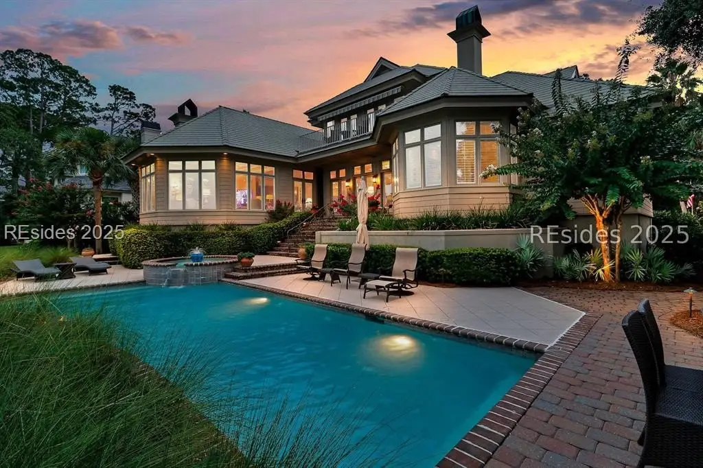 Discover luxury, views, and timeless Sea Pines living in this one of a kind residence built by award winning builder, Dan Lawrence and designed by well-known local architect Jakie Lee. This property offers a rare combination of Lowcountry charm, impeccable quality, and panoramic marsh-to-golf to sound views overlooking the iconic 17th hole of Harbour Town Golf Links home of the elevated PGA RBC Heritage. The interior features of this home are captivating with the extensive trim work, antique heart of pine flooring, custom iron work, and faux finishes by local artisans. Enjoy elegant living and dining spaces. Other features include designer lighting, dream kitchen/family room, impressive first floor owner suite, and spacious guest suites. Outdoor living is unmatched with a heated/chilled pool and spa, covered patio, and lush landscaping-perfect for enjoying the everchanging sunsets while watching golfers, nature, and boating right out your back door. A truly unforgettable Low Country property!