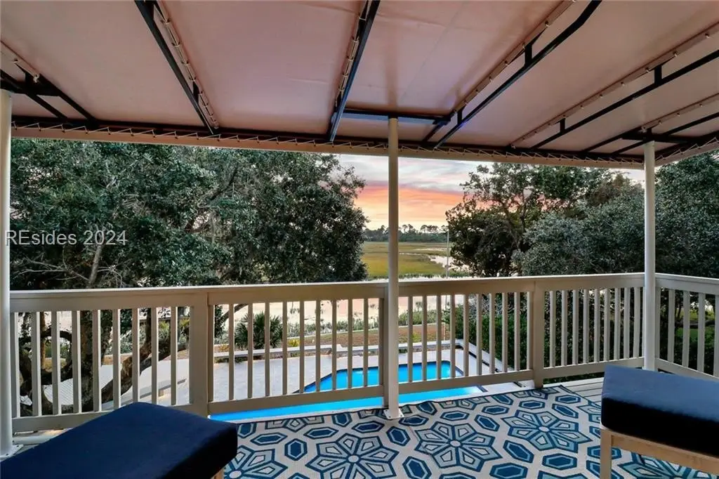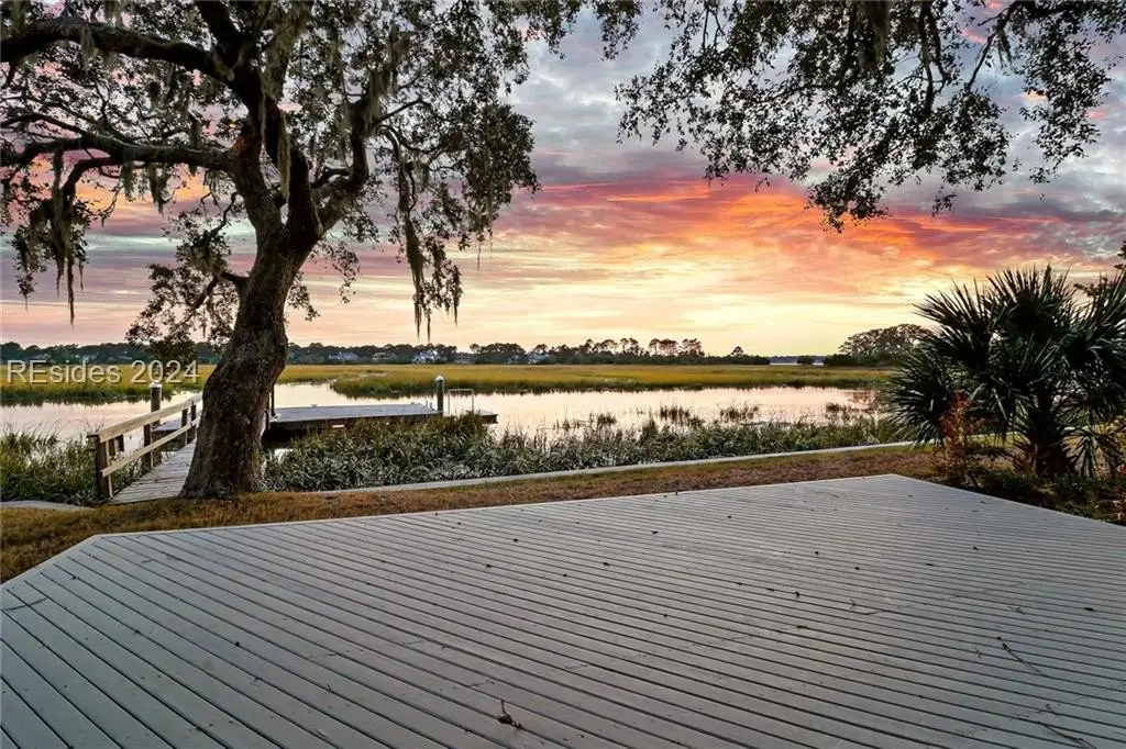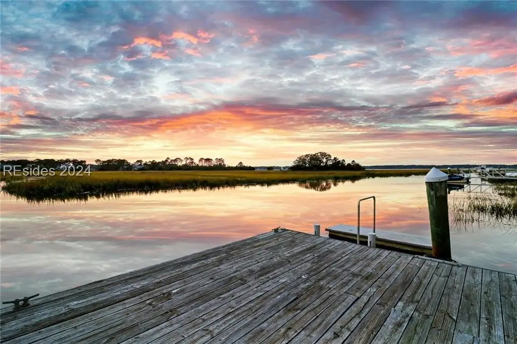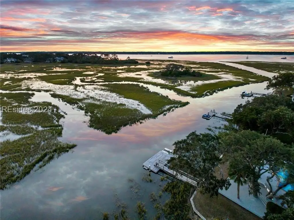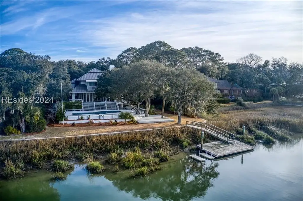 This one-of-a-kind property is privately sited on an almost acre lot with panoramic marsh and water views providing the perfect backdrop for spectacular sunsets. Kermit Huggins, a renowned architect, designed this property with 2 structures that harmoniously co-exist with their natural surroundings. Special features include a new metal roof, hardwood flooring, pella windows/doors, renovated kitchen, and interior paint. The main house boasts a luxurious upper-level owner's suite, and the guest house has 2 en-suite bedrooms plus a kitchenette. Incredible outdoor living with a heated/cooled saltwater pool, expansive deck, and private dock. Waterfront Perfection!
