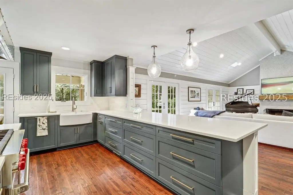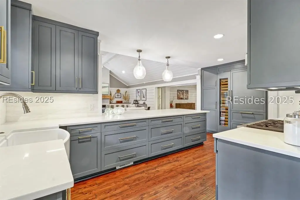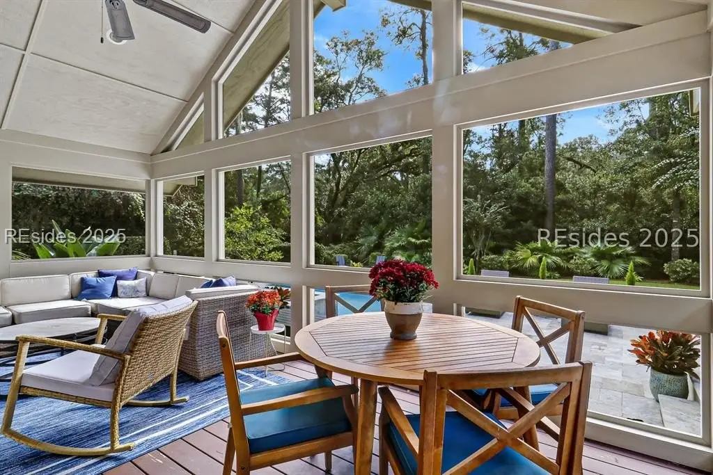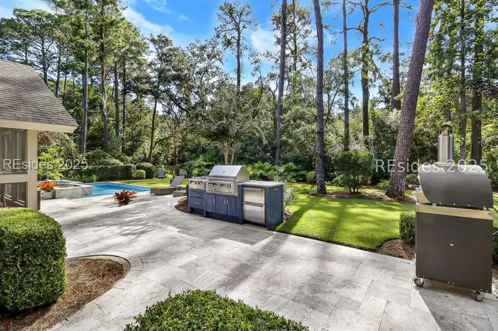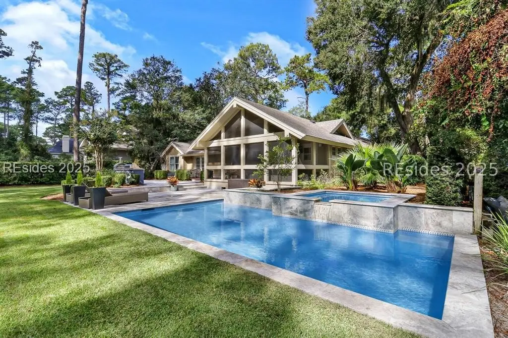 Discover coastal charm and refined craftsmanship in this beautifully reimagined 4BR/3BA home in the sought-after Club Course neighborhood of Sea Pines. Rebuilt and expanded in 2012 by Twelve Oaks Construction, this home combines Lowcountry architecture with modern luxury and the ease of all one level living.The open-concept kitchen, completely redesigned by the current owner, is a showstopper featuring all new touchstone soft-close cabinetry, quartzite countertops, and the crème de la crème appliances to include a Wolf 6-burner gas range with oven, Sub-Zero refrigerator with freezer drawers Sub-Zero wine column, and back kitchen offers additional quartzite counters, Wolf steam oven, Wolf microwave drawer, and Sub-Zero beverage center. The kitchen opens to the beautiful Great Room with tabby fireplace.The owners suite features hardwood flooring, crown molding, his/her walk-in closets, and a bath with dual marble vanities and a walk-in tiled shower. Three guest bedrooms include one ensuite with sitting area and private bath and two bedrooms sharing a stylishly updated bath. Additional features include hardie plank siding, spray foam insulation, 2017 roof, 2023 tankless water heaters, 2023 Trane 4-ton HVAC.Step outside to your private oasis where the current owner added a stunning swimming pool/spa surrounded by all new lush landscaping, outdoor lighting, screened porch, and outdoor kitchen.This meticulously updated home embodies the relaxed yet sophisticated Sea Pines lifestyle where coastal living meets timeless design.