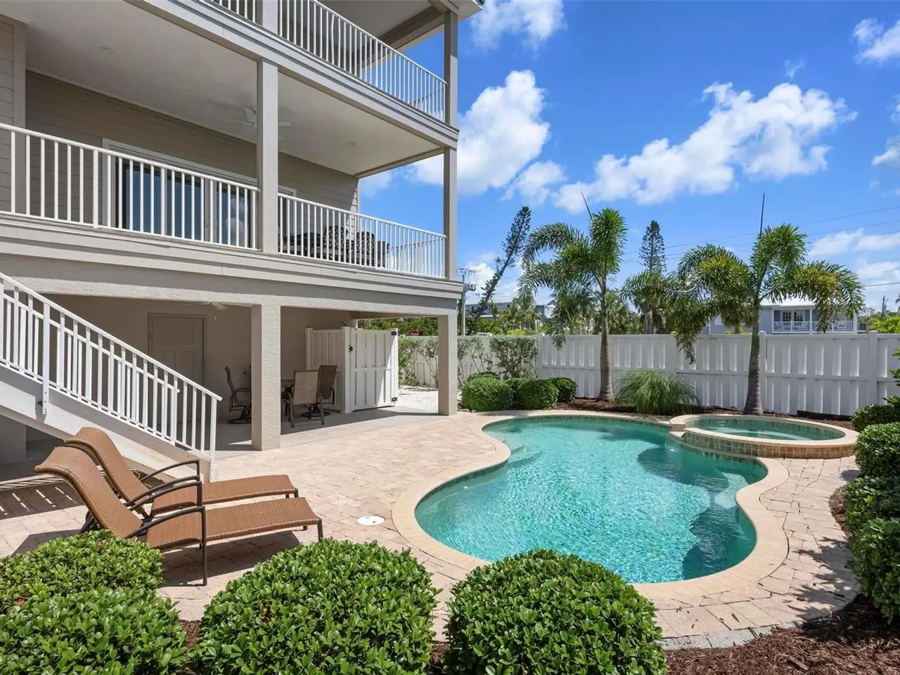 SHORT TERM RENTALS One block from the beach! Welcome to Sand Palace on Anna Maria Island! This elevated 3 bedroom, 2.5-bath coastal home offers the perfect blend of relaxation and as a successful rental investment just one block from the sugary sands of the Gulf. Designed for indoor-outdoor living, this tropical oasis features brand new siding, a private, fenced backyard with a heated pool and spa, creating the ultimate sanctuary for family getaways. Inside, the home has been freshly painted and exudes comfort with turnkey furnishings, wood floors, high ceilings, and granite countertops. The gourmet kitchen is equipped with solid wood cabinetry, stainless steel appliances, and a generous island with breakfast bar, ideal for entertaining. Enjoy added luxury with a private elevator, central vacuum, two A/C units, metal roof, and an oversized four-car garage offering ample storage. Expand your living space with two spacious 28' x 11' covered porches, one off the main living area and another off the primary suite. This property is zoned for weekly short-term rentals, making it an exceptional income-producing property. Whether you're seeking a smart short term rental investment, a second home, or a forever island retreat, this home checks all the boxes. Located just steps from the beach and close to shopping, dining, and island attractions, this is coastal living at its finest. Call for your private showing today.