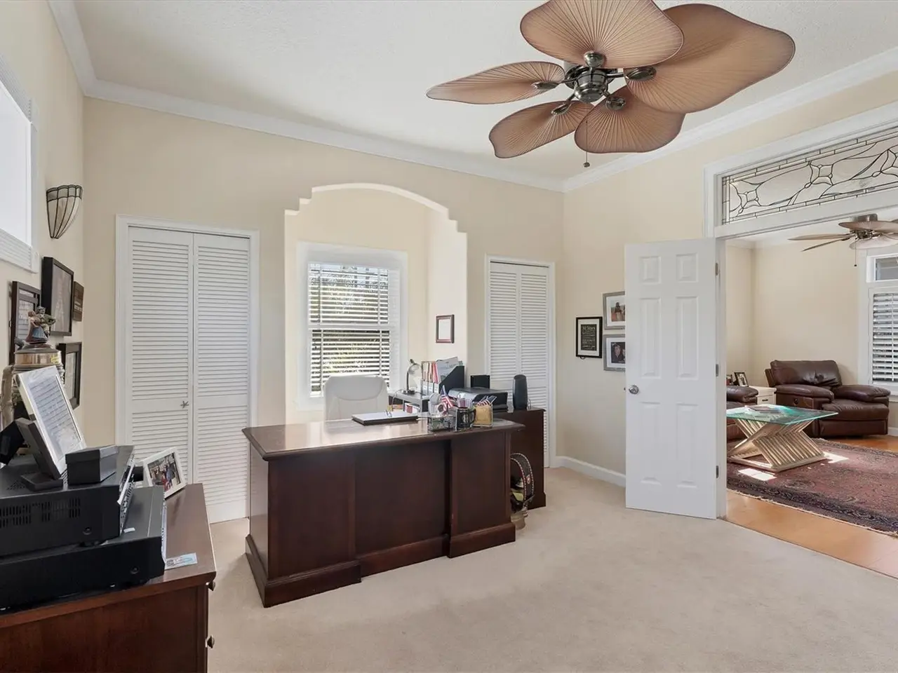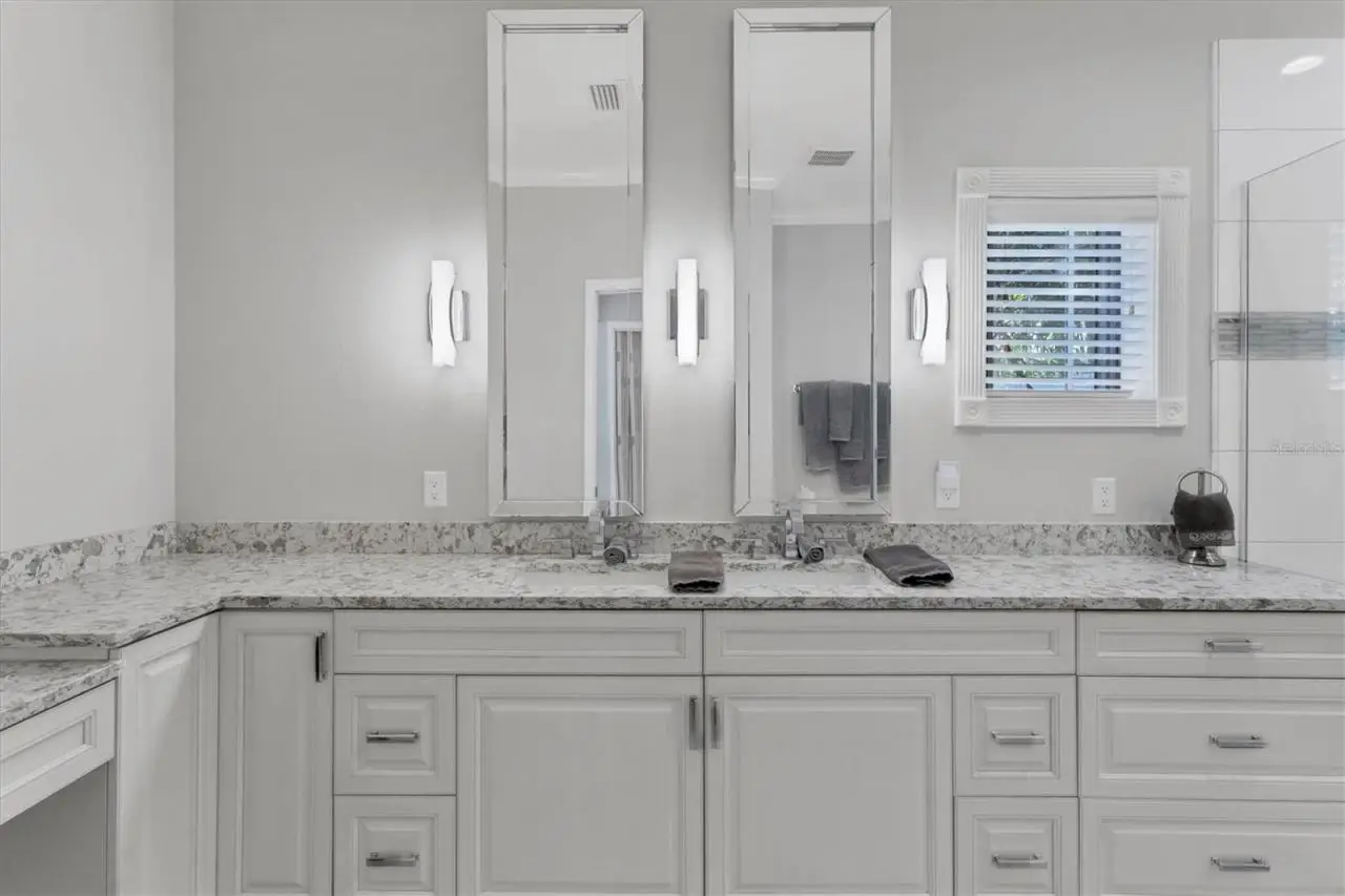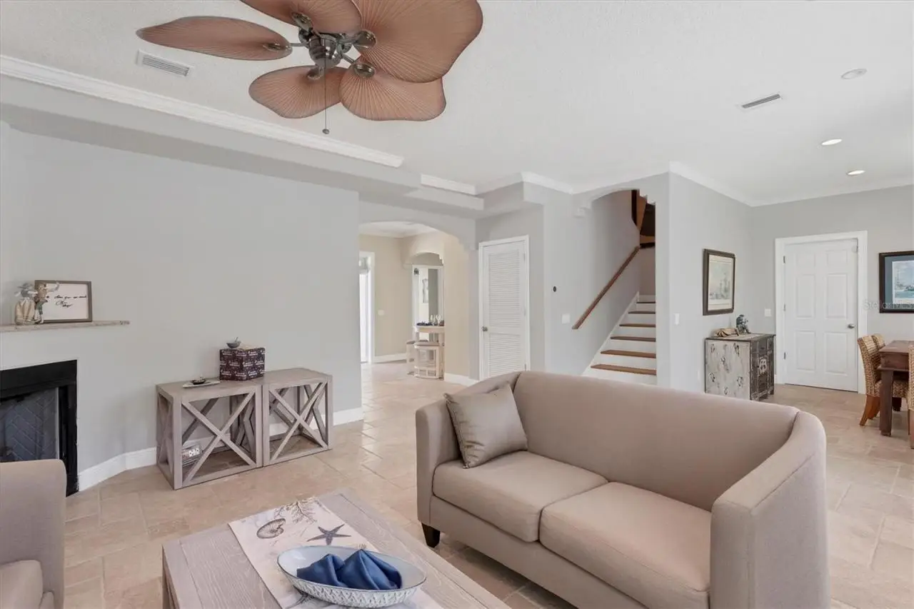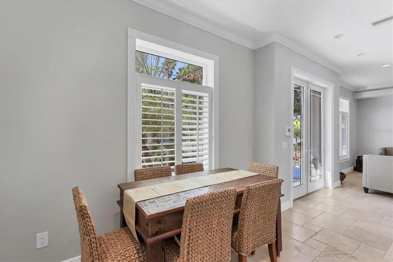 Location, location, location! This beautiful custom home in West Wind Shores is just across the street from the beach and minutes from Anna Maria Island. With an oasis-like backyard and swimming pool, this property offers the ultimate coastal lifestyle. Custom features abound, including high ceilings, arched entryways, travertine flooring, plantation shutters, 5-inch baseboards, recessed lighting, and large walk-in closets. As you enter through the front French doors, you're greeted by a cozy main living area complete with a gas fireplace. To the right, a versatile bonus space awaits, ideal for a dining area or hobby room. The thoughtfully designed split floor plan flows seamlessly, offering two primary bedrooms-one on each floor. The kitchen is a chef's delight, featuring granite countertops, custom cabinetry, newer Bosch appliances, including a Wolf gas stovetop with electric Wolf oven (rare on the island), a breakfast bar with pendant lighting, a glass-tiled backsplash, a wine refrigerator, and elegant travertine flooring. The downstairs primary suite overlooks the pool and offers ample space and luxurious details, including an oversized marble-tiled shower with a glass enclosure, dual sinks, extra storage, and a makeup/dressing table. Upstairs, the second primary suite boasts a large walk-in closet, an ensuite bath, and double doors leading to a loft area with large, picturesque windows that invite you to relax with a book in the afternoon light. The third bedroom is currently being used as an office, complete with built-in bookshelves and a Murphy bed for added flexibility. Sliding glass doors lead to a backyard oasis featuring palm trees, a pergola, a partially covered paver patio, and a completely fenced-in yard. The heated pool and outdoor kitchen, complete with a gas fireplace, create the perfect setting for entertaining. The space is wired for cable, allowing you to enjoy your favorite games while lounging or barbecuing. For pet lovers, there is a separate fenced area and a convenient storage shed. This custom home combines luxury, comfort, and an unbeatable location near the beach and Anna Maria Island. Convenient and complimentary trolley across the street. Walk across the street for sunset every night on the other side of a tall building complex. Don't miss your chance to own this coastal retreat