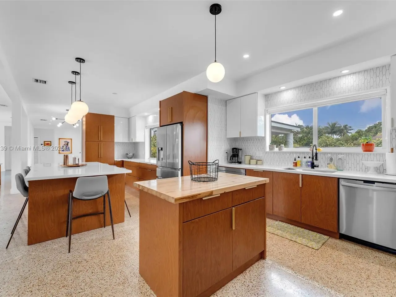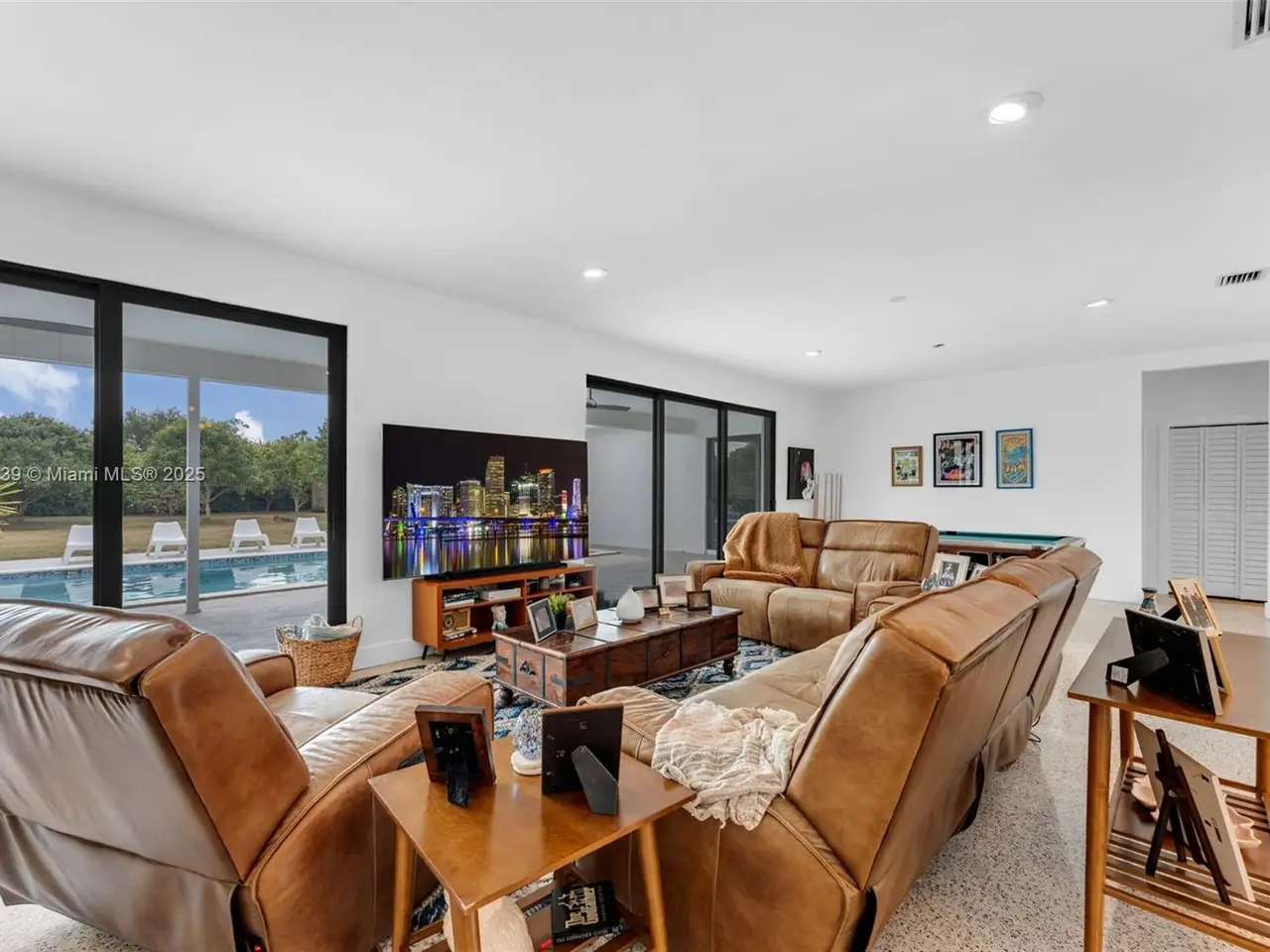 Stunning artisan 3/3 pool home on 1.14 acres, sitting within the Redland agricultural community, living here is a lifestyle. Entering through the porte-cochere, you are transported into a "mid-century modern vibe". From the restored terrazzo floors to a totally remodeled interior, no detail was overlooked. Features include a 2015 roof, 2022 impact windows & doors, 2022 new electrical system, 2022 a/c & ducts, 3 new water heaters 2022, full kitchen remodel 2022, primary bedroom/bath remodel 2024, 40 mature tree's (see list), a refinished pool w/ new tile/coping/new pump system 2018, cabana w/ built in pit for pig roast, a finished garage suitable for a work space, & electric gated entry. She's a beauty and a must see!
