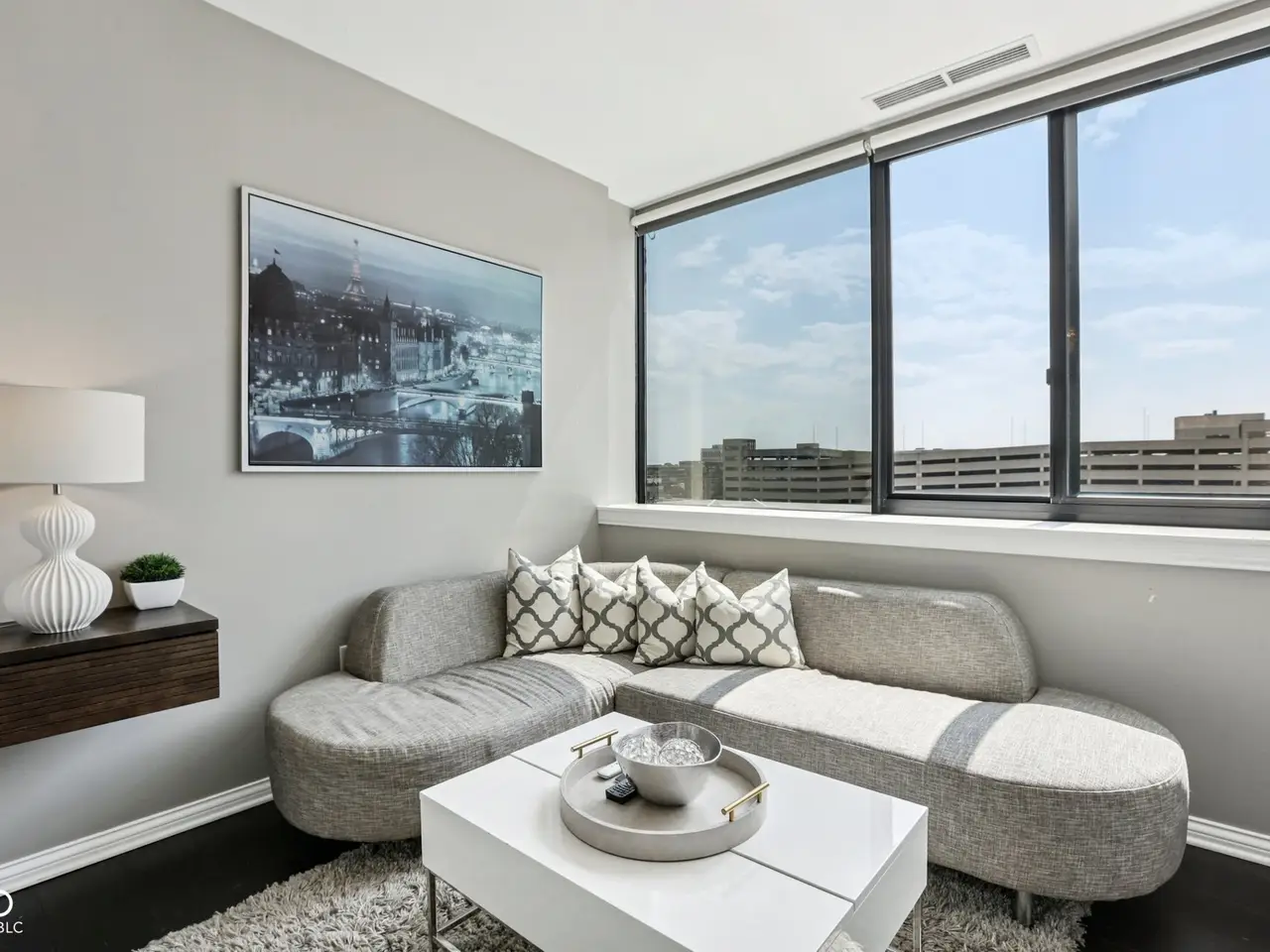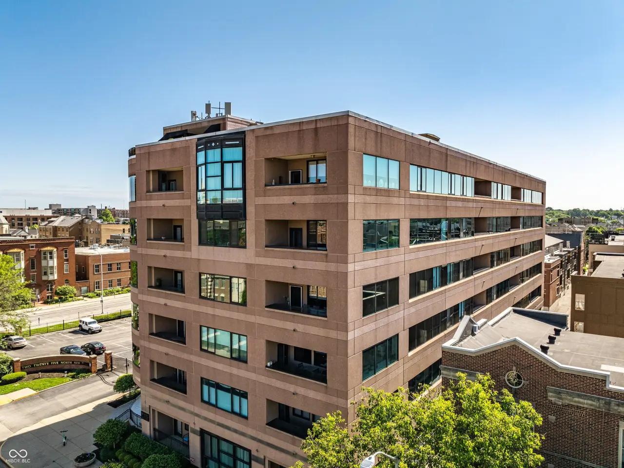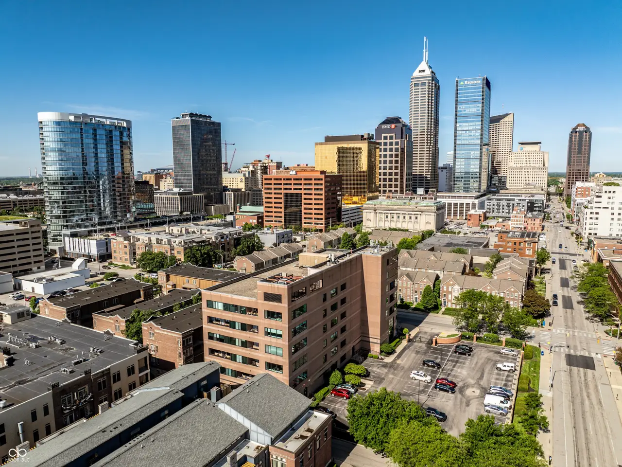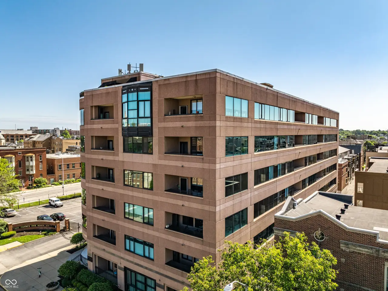 This fully updated fifth-floor condo offers luxurious single-level living in the heart of downtown. Featuring 2 bedrooms, an office, and 2 full baths, the split floor plan occupies the southwest corner of the building, offering panoramic views from the new IU Health Downtown Hospital to Eli Lilly & Company. Engineered hardwood floors guide you from the chef's kitchen, equipped with Sub-Zero, Wolf & Cove appliances, into an open dining and living area, perfect for relaxing or entertaining. The spacious primary suite includes a large bedroom and a spa-like bathroom with heated tile floors and Kohler Anthem digital shower controls. Located adjacent to historic Lockerbie Square, Lockerbie Terrace offers maintenance-free living with a rooftop deck and on-site gym. Two deeded parking spaces (1 indoor, 1 outdoor) are included, and you're just steps from Mass Ave, Whole Foods, Needler's, Hot Room Yoga, Commissary, and more. Welcome home to Lockerbie Terrace 52!