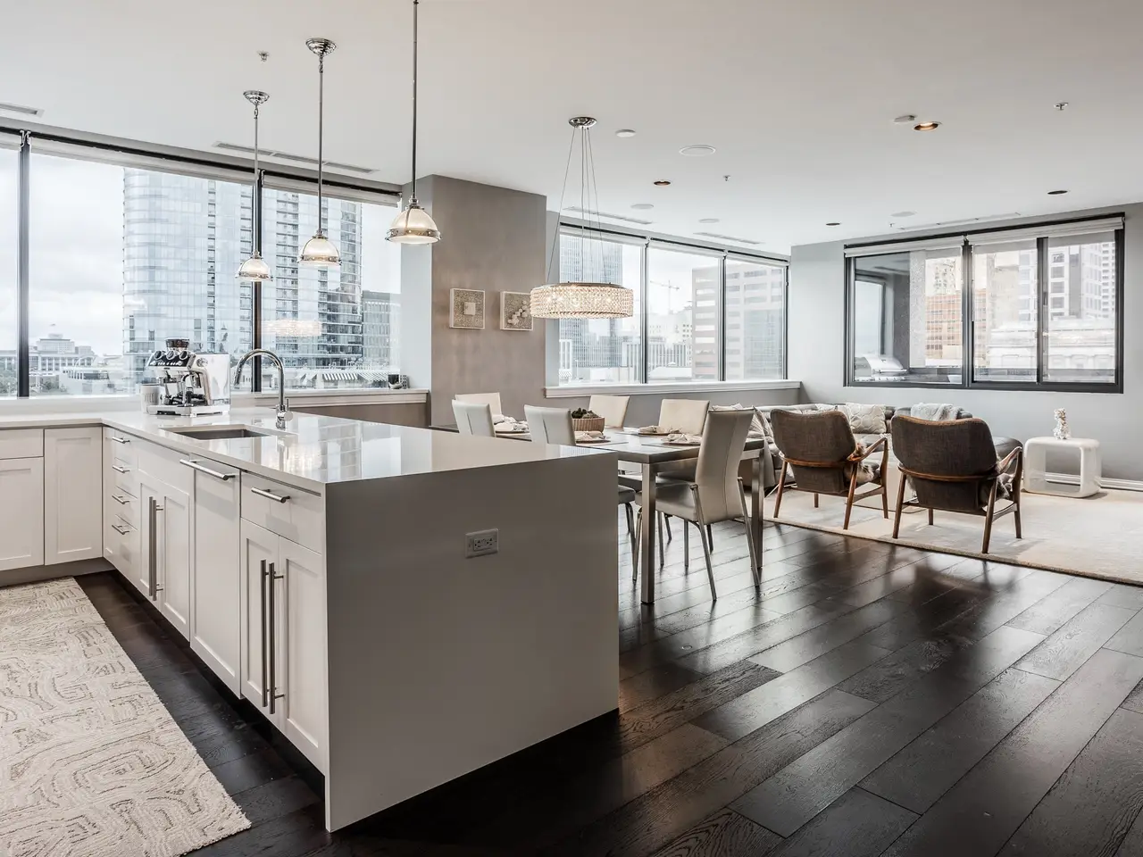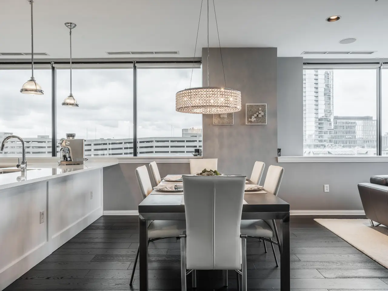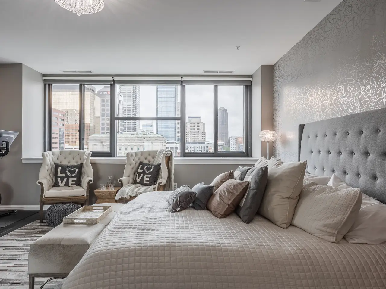 This fully updated fifth-floor condo offers luxurious single-level living in the heart of downtown. Featuring 2 bedrooms, an office, and 2 full baths, the split floor plan occupies the southwest corner of the building, offering panoramic views from the new IU Health Downtown Hospital to Eli Lilly & Company. Engineered hardwood floors guide you from the chef's kitchen, equipped with Sub-Zero, Wolf & Cove appliances, into an open dining and living area, perfect for relaxing or entertaining. The spacious primary suite includes a large bedroom and a spa-like bathroom with heated tile floors and Kohler Anthem digital shower controls. Located adjacent to historic Lockerbie Square, Lockerbie Terrace offers maintenance-free living with a rooftop deck and on-site gym. Two deeded parking spaces (1 indoor, 1 outdoor) are included, and you're just steps from Mass Ave, Whole Foods, Needler's, Hot Room Yoga, Commissary, and more. Welcome home to Lockerbie Terrace 52!