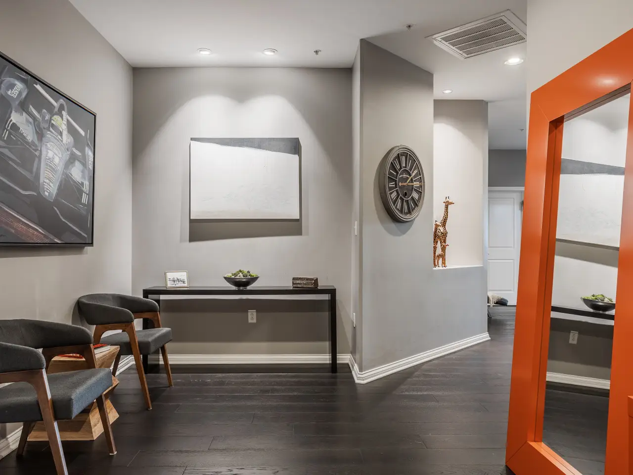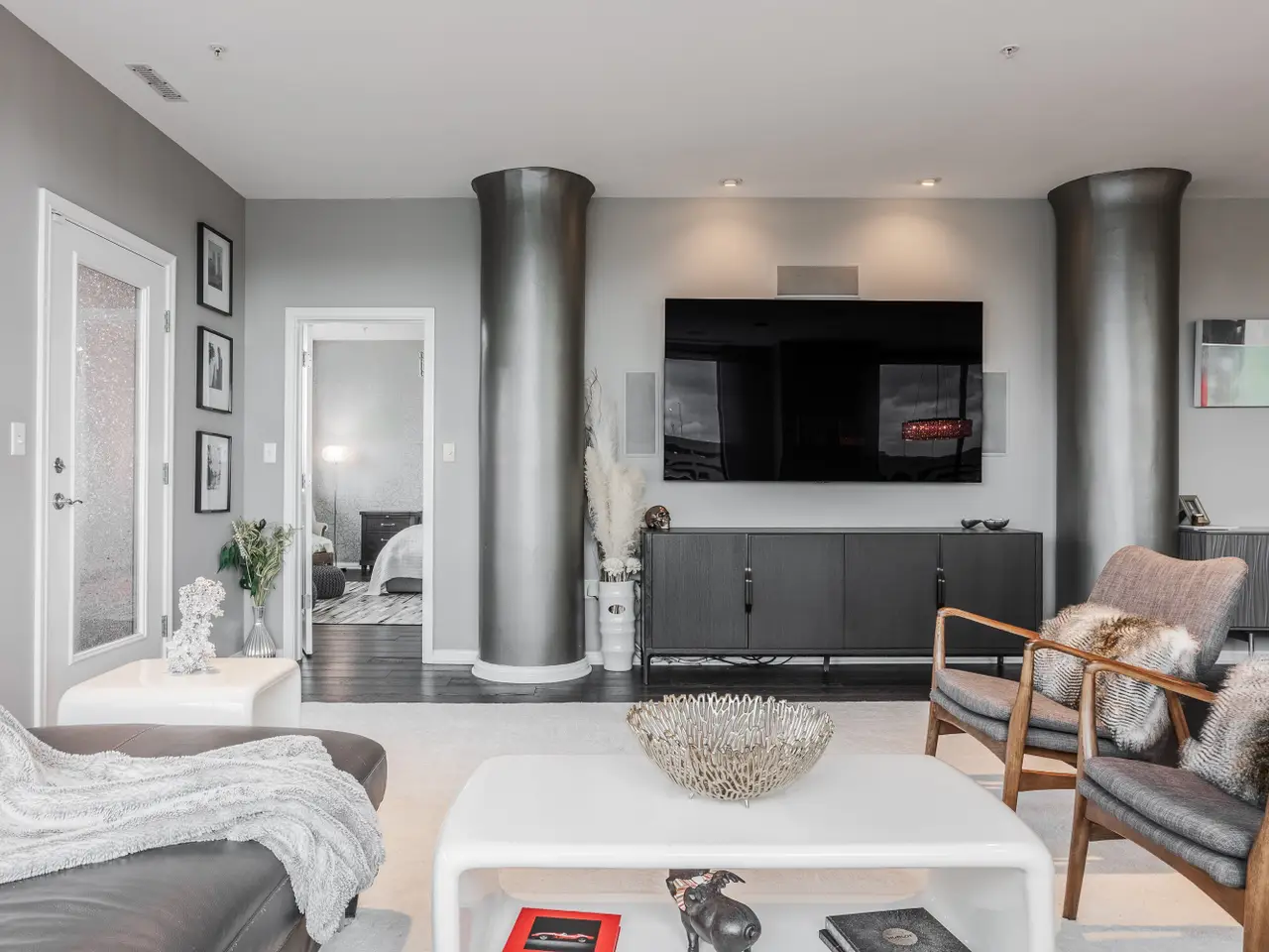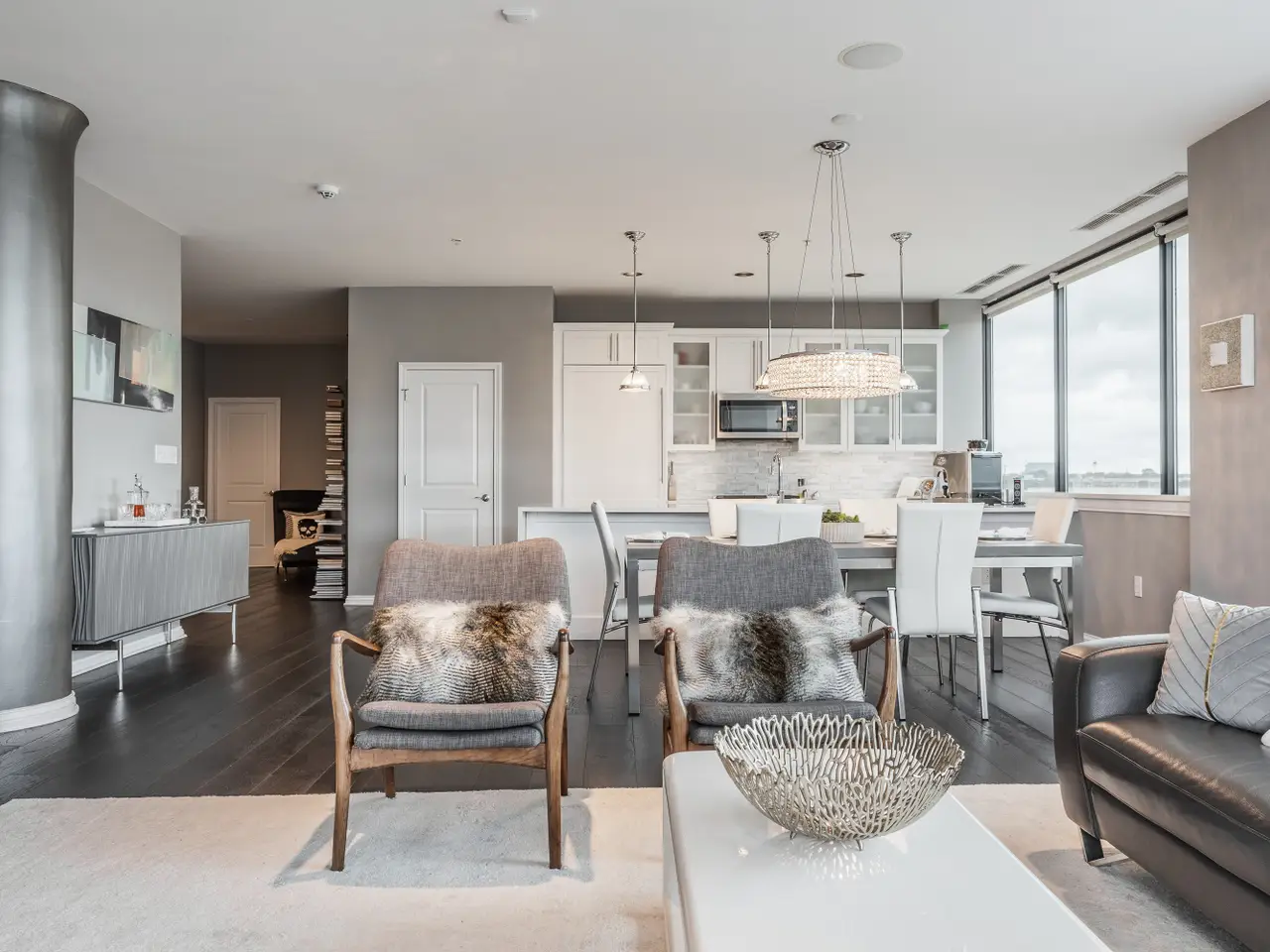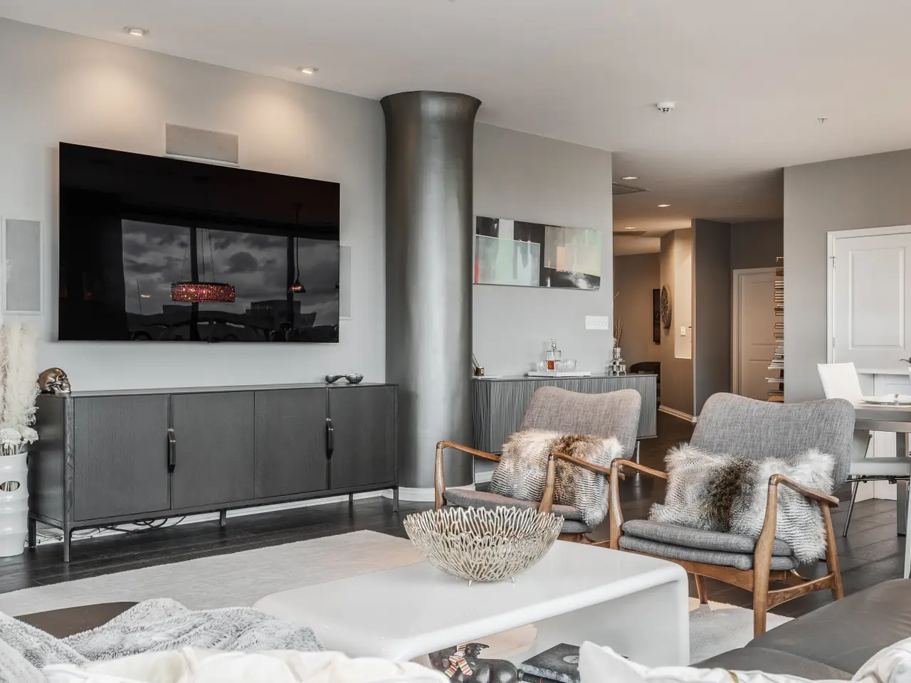 This fully updated fifth-floor condo offers luxurious single-level living in the heart of downtown. Featuring 2 bedrooms, an office, and 2 full baths, the split floor plan occupies the southwest corner of the building, offering panoramic views from the new IU Health Downtown Hospital to Eli Lilly & Company. Engineered hardwood floors guide you from the chef's kitchen, equipped with Sub-Zero, Wolf & Cove appliances, into an open dining and living area, perfect for relaxing or entertaining. The spacious primary suite includes a large bedroom and a spa-like bathroom with heated tile floors and Kohler Anthem digital shower controls. Located adjacent to historic Lockerbie Square, Lockerbie Terrace offers maintenance-free living with a rooftop deck and on-site gym. Two deeded parking spaces (1 indoor, 1 outdoor) are included, and you're just steps from Mass Ave, Whole Foods, Needler's, Hot Room Yoga, Commissary, and more. Welcome home to Lockerbie Terrace 52!