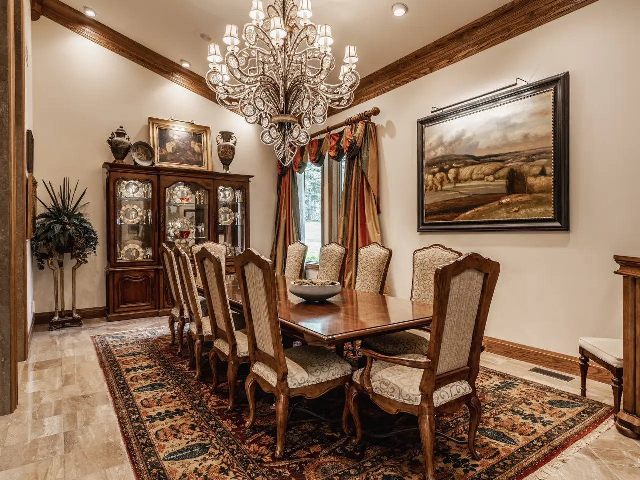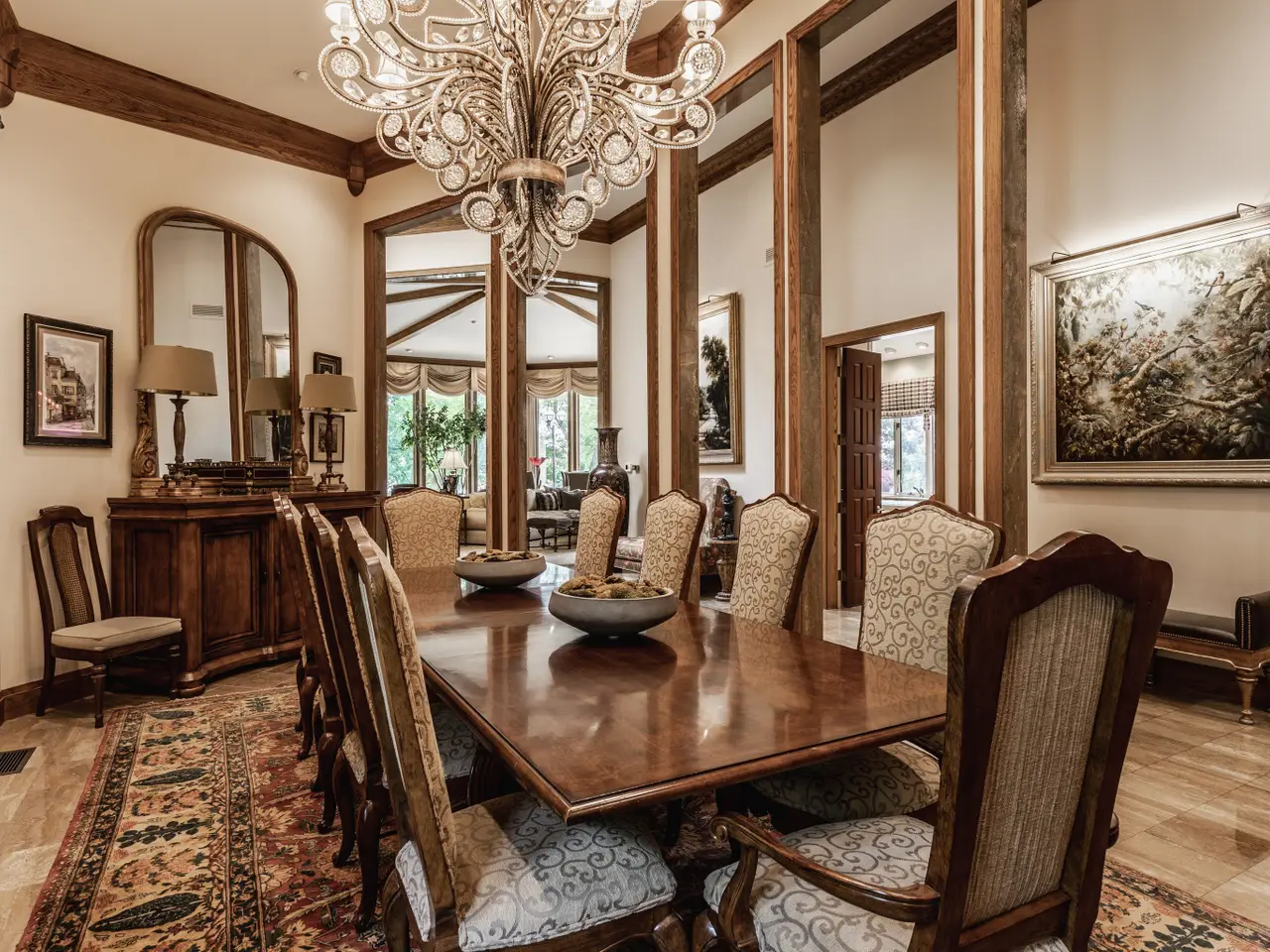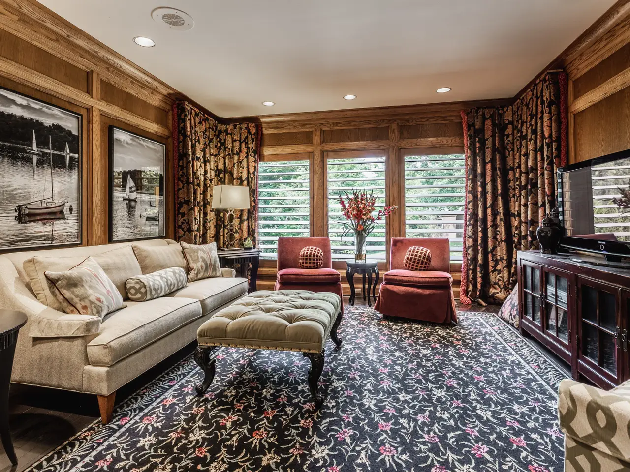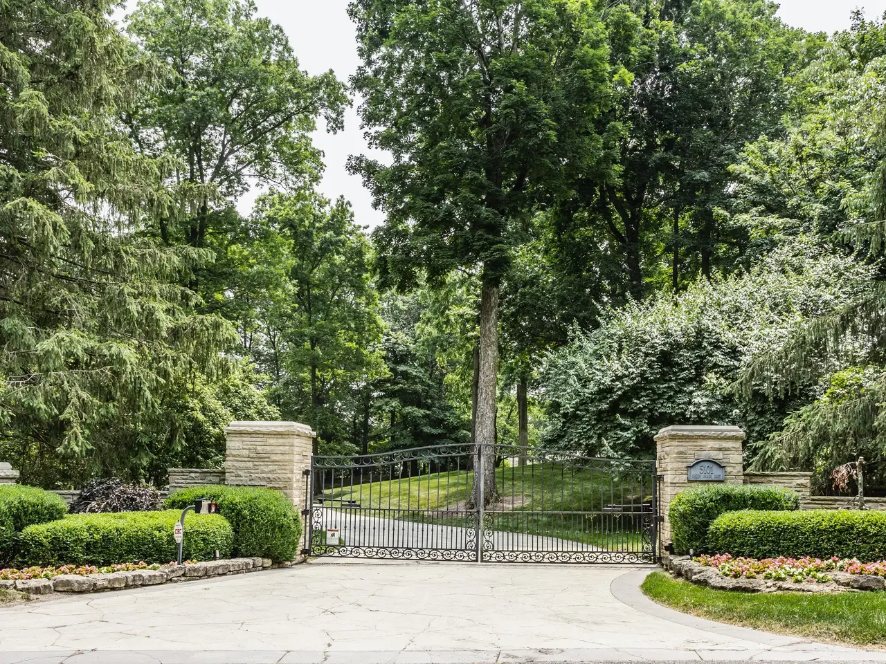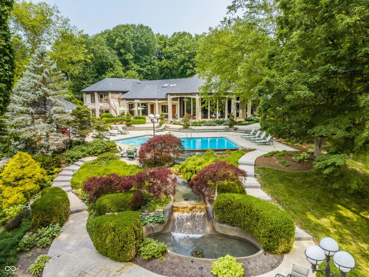 Exclusivity at its finest, this gated estate expands over 5.5 acres and is perfectly situated to capture breathtaking, panoramic views with 1,250 feet of water frontage on Eagle Creek Reservoir. The lush oasis creates the feeling of a serene, private sanctuary featuring a koi pond that spans the back of the home, Gunite swimming pool & spa w/cabana & tennis court w/cabana. A spacious great room welcomes guests w/expansive bay windows that brighten the room, which also features a vaulted ceiling w/exposed wooden beams, built-in aquarium, fireplace & adjoining bar area with access to the backyard retreat. Cozy den embellished with wood-paneled walls, built-ins & marble fireplace. Gourmet kitchen boats upscale appliances and a sun-washed breakfast area.
