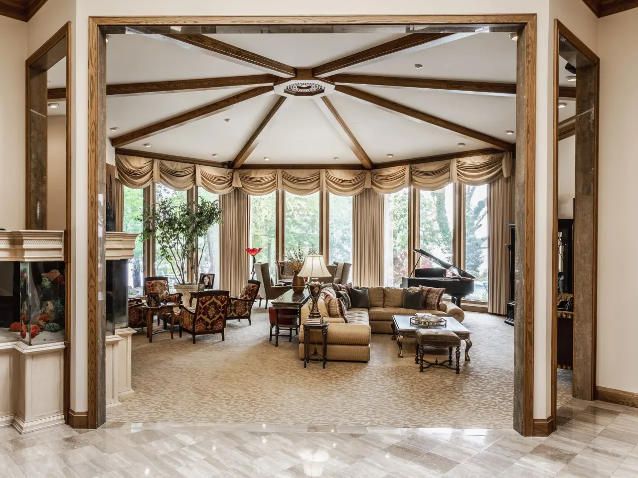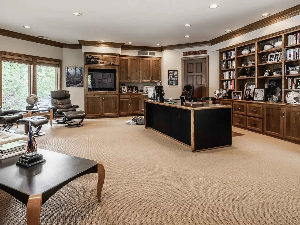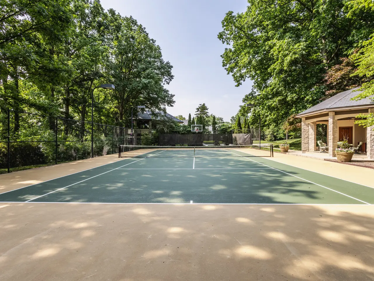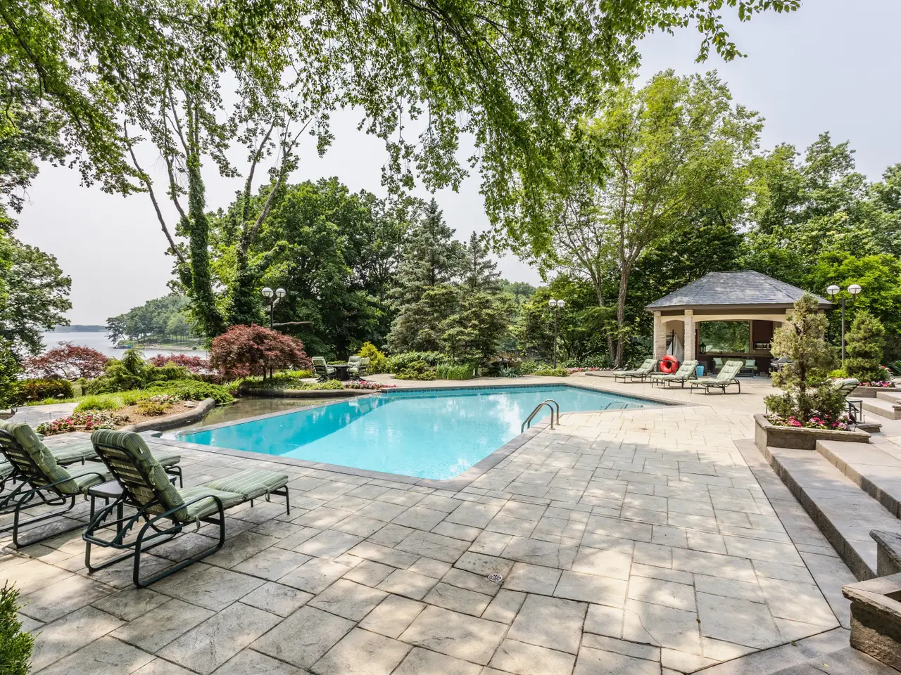 Exclusivity at its finest, this gated estate expands over 5.5 acres and is perfectly situated to capture breathtaking, panoramic views with 1,250 feet of water frontage on Eagle Creek Reservoir. The lush oasis creates the feeling of a serene, private sanctuary featuring a koi pond that spans the back of the home, Gunite swimming pool & spa w/cabana & tennis court w/cabana. A spacious great room welcomes guests w/expansive bay windows that brighten the room, which also features a vaulted ceiling w/exposed wooden beams, built-in aquarium, fireplace & adjoining bar area with access to the backyard retreat. Cozy den embellished with wood-paneled walls, built-ins & marble fireplace. Gourmet kitchen boats upscale appliances and a sun-washed breakfast area.