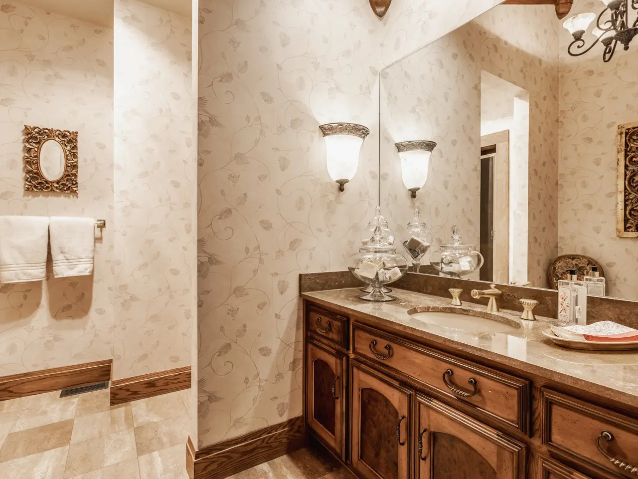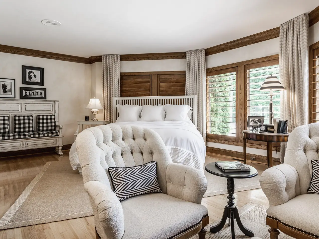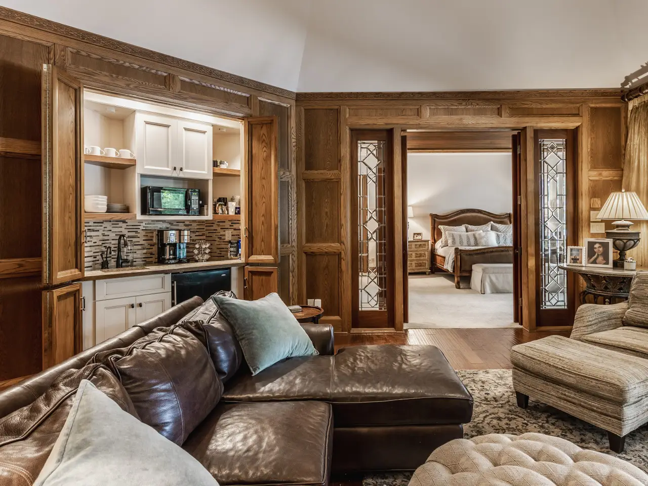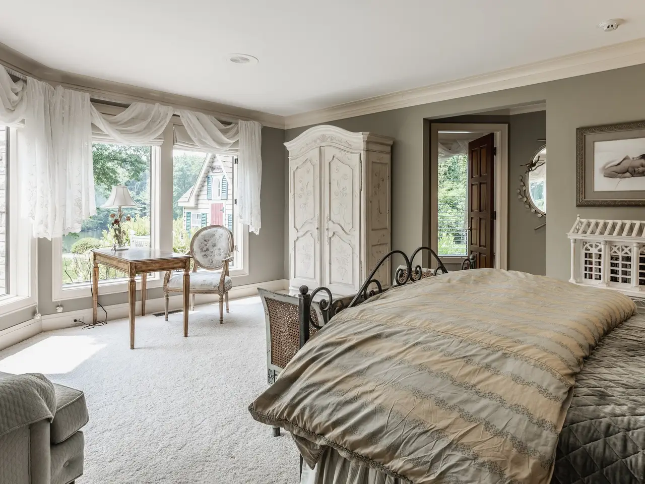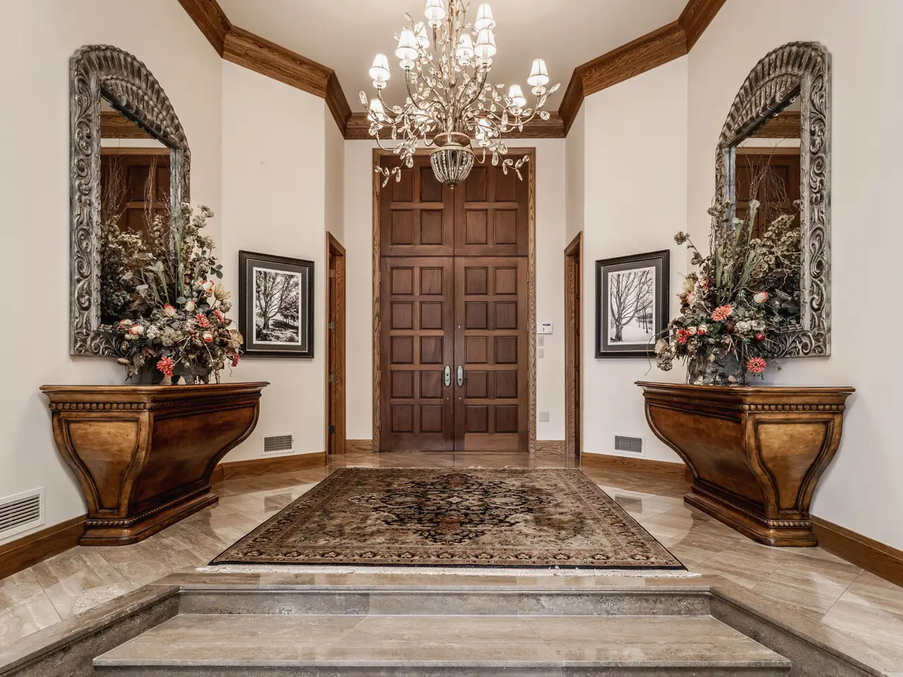 Exclusivity at its finest, this gated estate expands over 5.5 acres and is perfectly situated to capture breathtaking, panoramic views with 1,250 feet of water frontage on Eagle Creek Reservoir. The lush oasis creates the feeling of a serene, private sanctuary featuring a koi pond that spans the back of the home, Gunite swimming pool & spa w/cabana & tennis court w/cabana. A spacious great room welcomes guests w/expansive bay windows that brighten the room, which also features a vaulted ceiling w/exposed wooden beams, built-in aquarium, fireplace & adjoining bar area with access to the backyard retreat. Cozy den embellished with wood-paneled walls, built-ins & marble fireplace. Gourmet kitchen boats upscale appliances and a sun-washed breakfast area.