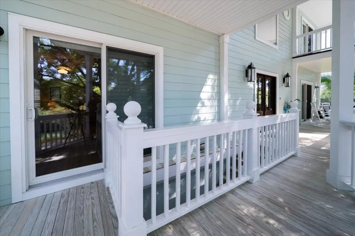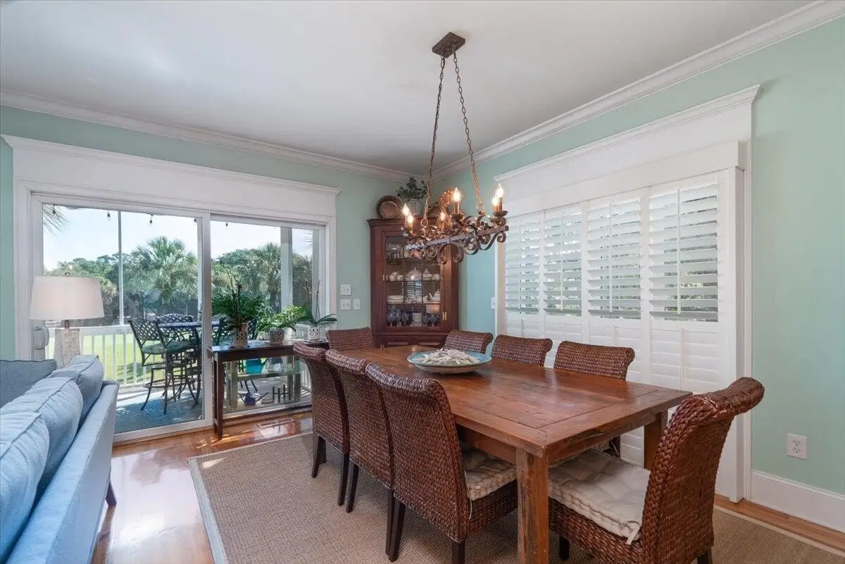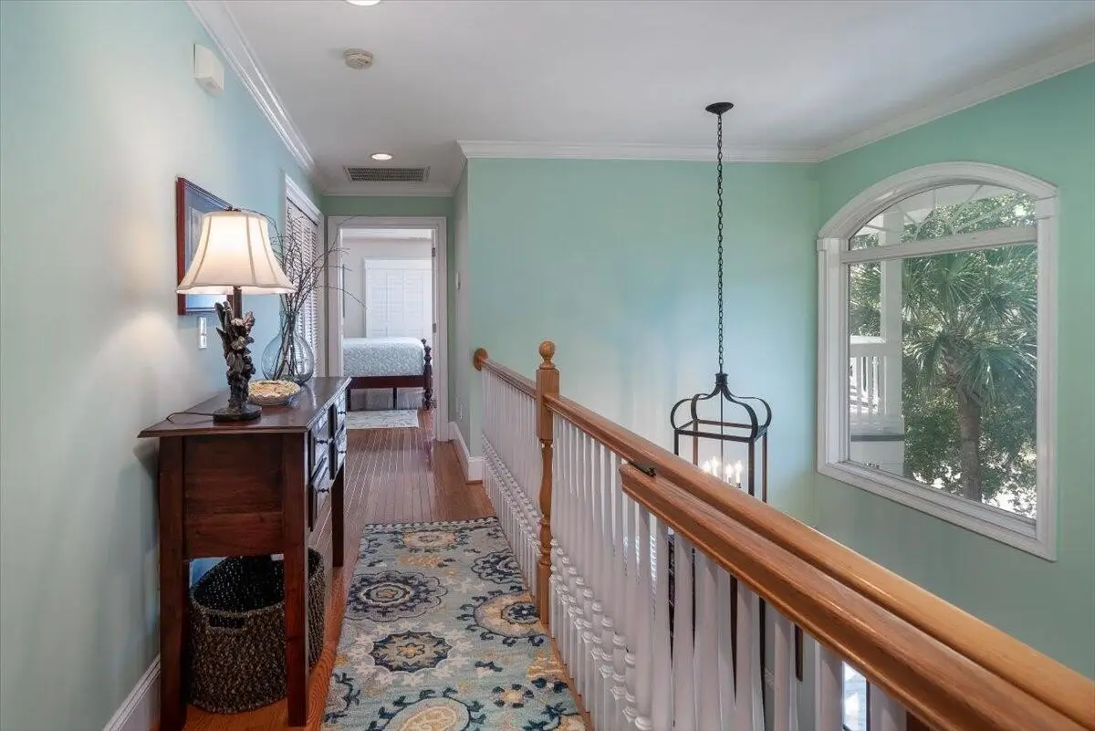 It's the best of both worlds! Island living in a Quintessential two story Charleston style home overlooking the 4th green of the famed ''Wild Dunes Links Course'' and yet only a short walk to the beach at the Isle of Palms. This meticulously maintained 4 bedroom-3 bath home has a bright open floorplan that flows seamlessly onto the porches, outside decks and balconies... Relax on the bed swing or rock the afternoon away listening to your favorite tunes and watch a great putt being made. Enjoy the view of marsh wildlife and Herons perched in the live oaks along the lagoon. The remodeled kitchen has abundant custom cabinetry, granite counters, a center Island with Dacor gas cooktop/stove, the refrigerator (Kitchenaid), dishwasher, microwave, wine cooler are all stainless steel GEMonogram appliances and a central vacuum system. The living room has fireplace with gas logs (2020), built-in book shelves double sliding glass doors to the outside screened porch and deck area. Custom Detailed features throughout this home are: updated baths, hurricane film coated windows & doors, Plantation shutters, oak flooring, tiled baths, 9 ft ceilings, recessed lighting, ceiling fans, chandeliers, crown molding. Recent improvements: New roof (2021) complete exterior painting (2021)...new garage door/motor (2025), new propane tank (2025) both HVAC units (2023 & 2014) First floor has a bedroom that could be a second master with full bath, walk-in closet and a balcony overlooking the lagoon. Upstairs is the primary bedroom and bath with separate shower and soaking tub, his and her vanities and two walk-in closets. Sliding glass doors access the large private porch to enjoy the outdoors and cool breezes. Additionally, there are two guest bedrooms with a Jack & Jill full bath. One bedroom is currently being used as an office the other bedroom also has its own balcony to enjoy the outdoors. Professionally landscaped with Palmetto trees, sago palms, magnolia trees, ornamental shrubs and grasses accenting the Live oaks. Landscape lighting and zone irrigation system. Large two car garage with plenty of storage and room for a golf cart. There is also a cabana style shower to use when returning from the beach. Conveniently located to all the resort amenities: Property owners Beach house, onsite restaurants, two golf courses, tennis courts, fitness center, marina, bike, jogging trails and 2 ½ miles of beachfront shore line. It's a short drive to downtown Historic Charleston and easy access to the airport.