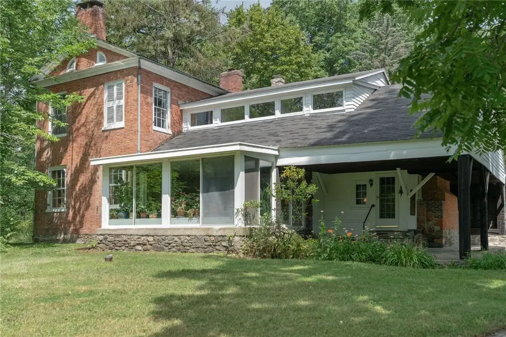 Built during the height of Napoleon's reign on 95 exquisite acres, core features of this classic Federal-style brick house have been meticulously maintained alongside modern day amenities. The property carries a genuine pedigree that pre-dates the incorporation of Tompkins County by nearly a decade and the founding of Cornell University by 56 years. It is now on the market for the first time since 1969. During the past two centuries, as Ithaca has grown up around it, the estate remains a private paradise. At Honna Lee, named six decades ago, fireflies dance magically during summer nights, wild turkeys roam the grounds and hawks and owls still claim the sky. The house is set back from the road by a long driveway and surrounded by majestic oak, walnut, arborvitae and yew, befitting a botanical garden, on a rolling 5-acre lawn, complete with a heated in-ground pool and a wildlife pond, to bask in your private solitude or to entertain. The estate extends 1/2 mile along a residential road within the Town of Ithaca, and is comprised of mixed old-growth hardwoods, spruce, and 36 acres of pesticide free farmland (since 2016). The estate is zoned for potential development of up to 12 parcels of single or multi-family homes and lies within the town's targeted conservation easement area for potential compensation of substantial value. Inside you will find hardwood, exposed beams and brick walls. Step back in time in the stone-floored den, or survey your grounds from the four-season, south-facing sunroom. The spacious primary bedroom with vaulted ceilings adds the perfect contemporary touch. While Honna Lee is secluded, it is within 5 miles to top-tier amenities: groceries, bakeries, restaurants, libraries, museums, cinemas, and nightlife. Upper Treman State Park, with its awe-inspiring waterfall and invigorating hiking trails, is just 4 minutes away. The estate is also near Watkins Glen and both the Cayuga and Seneca Lake Wine Trails, home to award-winning wineries, breweries, and distilleries. Honna Lee offers four-season beauty, a rich heritage, development or conservation potential, and an unmatched combination of privacy and proximity in the heart of the Finger Lakes.