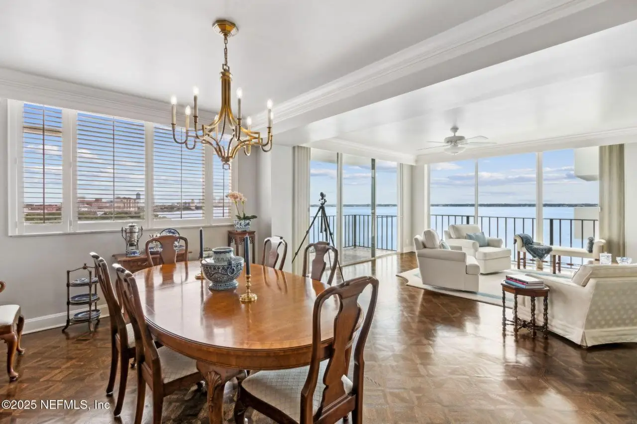 Welcome to the only residence in the Beau Rivage Condominiums that combines two separate units (9C & 9D), completely renovated and boasting over 3,000 square feet of elegant, designer living with high-end finishes. This stunning corner unit overlooks the St. Johns River, downtown skyline, and Historic Avondale-a truly unique and luxurious offering. Thoughtfully renovated, the flexible split floor plan is ideal for modern living and includes a potential in-law suite setup or private guest quarters. Savor sweeping views of the St. Johns River from the comfort of your living room or while enjoying a meal at the dining table. The stunning chef's kitchen is both functional and stylish, offering generous space for culinary creativity and entertaining. The spacious laundry room is thoughtfully designed multi-functional utility space that fits within the home's overall aesthetic. The elegant primary suite combines timeless charm with luxurious comfort, offering a serene retreat within the home. The en suite bath is beautifully designed with dual vanities, elegant quartz countertops, and brushed gold fixtures that add a hint of sophistication. The expansive walk-in closet is impeccably styled; it elevates everyday routines into a refined experience. This home also offers two thoughtfully outfitted guest bedrooms, each providing a warm, welcoming atmosphere, and two nearby full bathrooms for added convenience. The stylish wet bar is both functional and refined, seamlessly integrated into a shared space with the family room, making it ideal for effortless entertaining. The home boasts three private balconies, each offering its own unique perspective-perfect for enjoying morning coffee, sunrise and sunsets, or simply taking in the surrounding views from different vantage points throughout the residence. Enjoy the ease of condo living with access to premium amenities including a riverfront pool, fitness studio, library, river room, catering kitchen and card room. Walking distance to the Avondale shops, fine dining, parks and so much more! Schedule your appointment today!