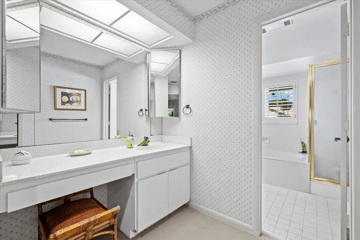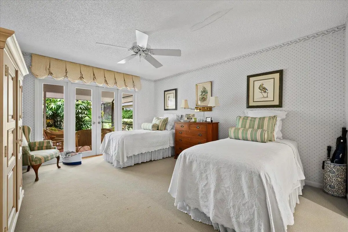 Discover your dream home in the sought-after Crosswind community of prestigious Jonathan's Landing! This two-bedroom, two-and-a-half-bath residence offers a layout ideal for comfortable living and elegant entertaining. Enjoy a bright living room with charming wood burning fireplace, inviting dining area and French Doors to a tranquil screened patio, updated kitchen with newer cabinets, countertops, and appliances. The spacious primary suite features, two walk-in closets, an ensuite bath with dual sinks and walk in shower and French Doors to the screened patio. The guest suite offers a full bath and dressing area ideal for family or guests. The versatile den, built-in dry bar can easily convert back to a closet for a third bedroom! Relax or entertain on the screened porch with garden view and water feature