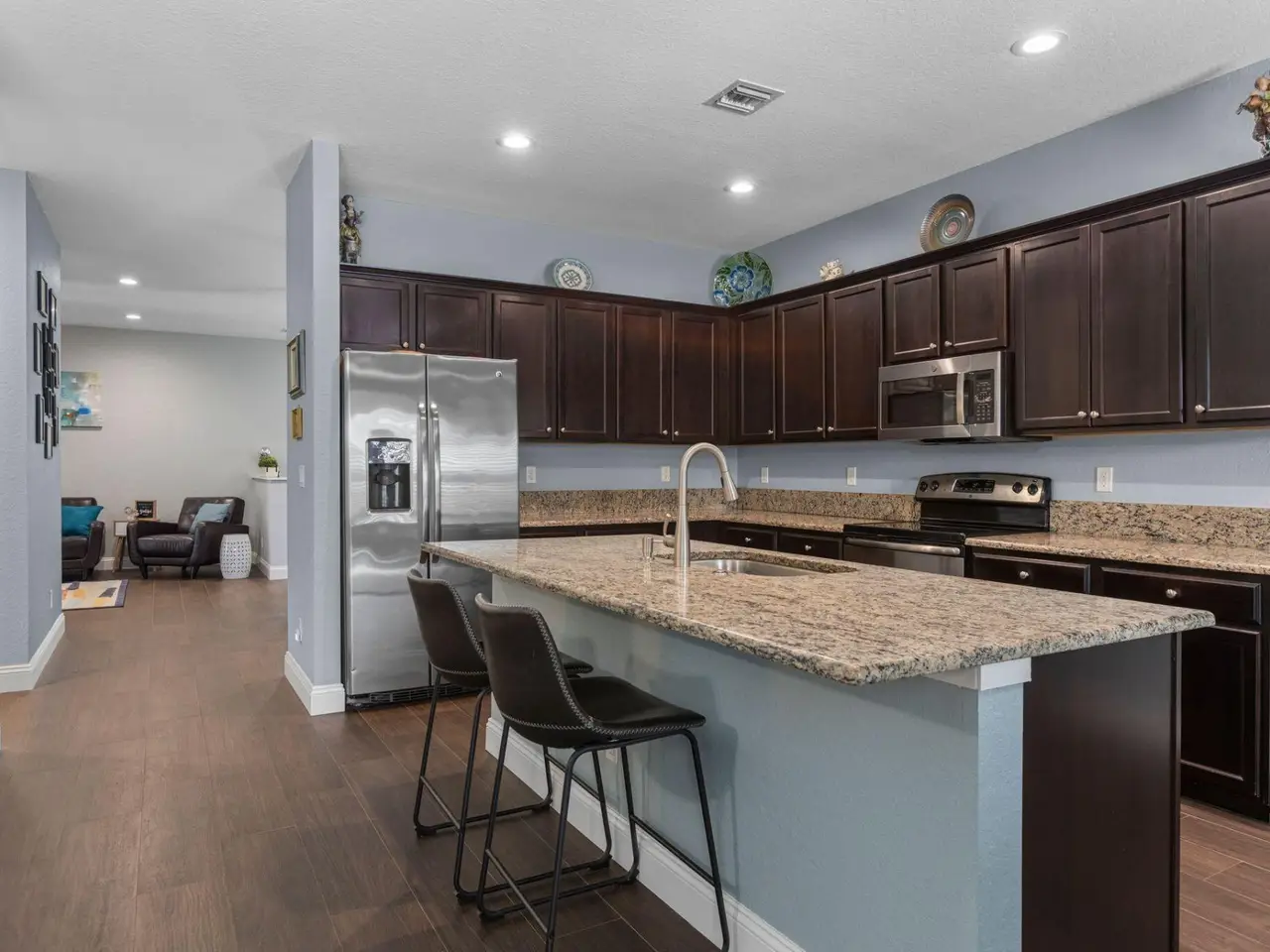 Located in the highly desirable gated community of Rialto, this beautifully upgraded 4 bedroom, 2.5 bath home offers a perfect blend of comfort, style, and functionality - all overlooking a serene water view!The backyard is a true retreat, featuring a 32 x 14 saltwater, heated pool and 7 x 8 spa with waterfall spillover, sun shelf, deck jets, deep-end bench seating, and jets on both top and bottom. Built in 2022 by CSE Paving of Florida, Inc., the pool area is finished with elegant sandblasted marble decking in a French pattern and includes Aqualink smartphone automation. Inside, youll find Level 5 Italian glazed porcelain tile flooring throughout in a 9 x 36 staggered wood plank design. The primary bathroom features European-inspired tile work, with 12 x 24 Sardinia Ivory porcelain tile and glass mosaic accents. The home layout has been thoughtfully opened up to maximize light and flow, and includes custom barn doors in both the living and laundry areas with reinforced framing. Additional features include: Granite kitchen countertops, Benjamin Moore designer paint palette, Recessed lighting throughout, Impact-rated contemporary glass front door, windows and sliders, Carrier AC (2022) with Ecobee Smart Thermostat Pro & remote sensor, Halo-LED Whole Home Air Purifier in air handler & UV light, Water heater (2024). The attached two-car garage includes an epoxy-coated floor, utility sink, refrigerator, and bolted metal shelving, plus metal staircase access to the attic for extra storage. Exterior updates include professional cleaning of the roof and paver driveway (2024), exterior Sherwin Williams painting (approx. 2021), and recently added gutters. Rialto is one of Jupiters most sought-after gated communities, known for its resort-style amenities. Residents enjoy a grand clubhouse with fitness center, tennis and basketball courts, walking trails, and a resort-style pool... just minutes from Jupiters beaches, dining, and golf. This meticulously maintained home combines lifestyle, luxury, and location - offering a rare opportunity in the heart of Jupiter.