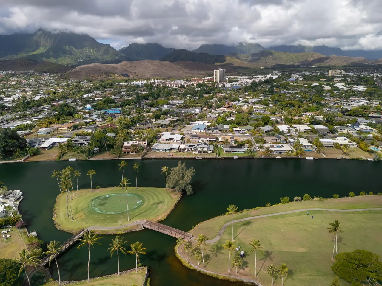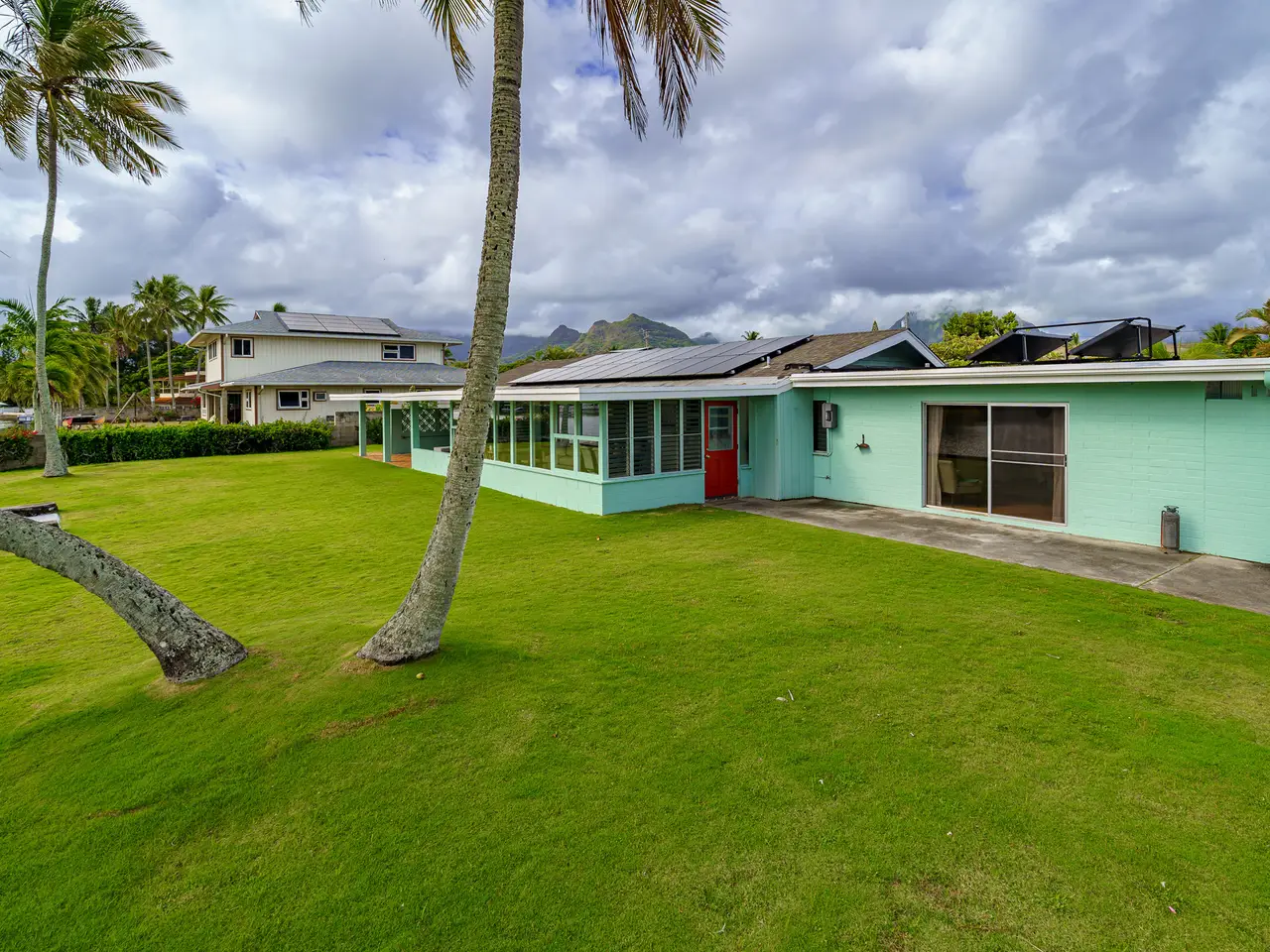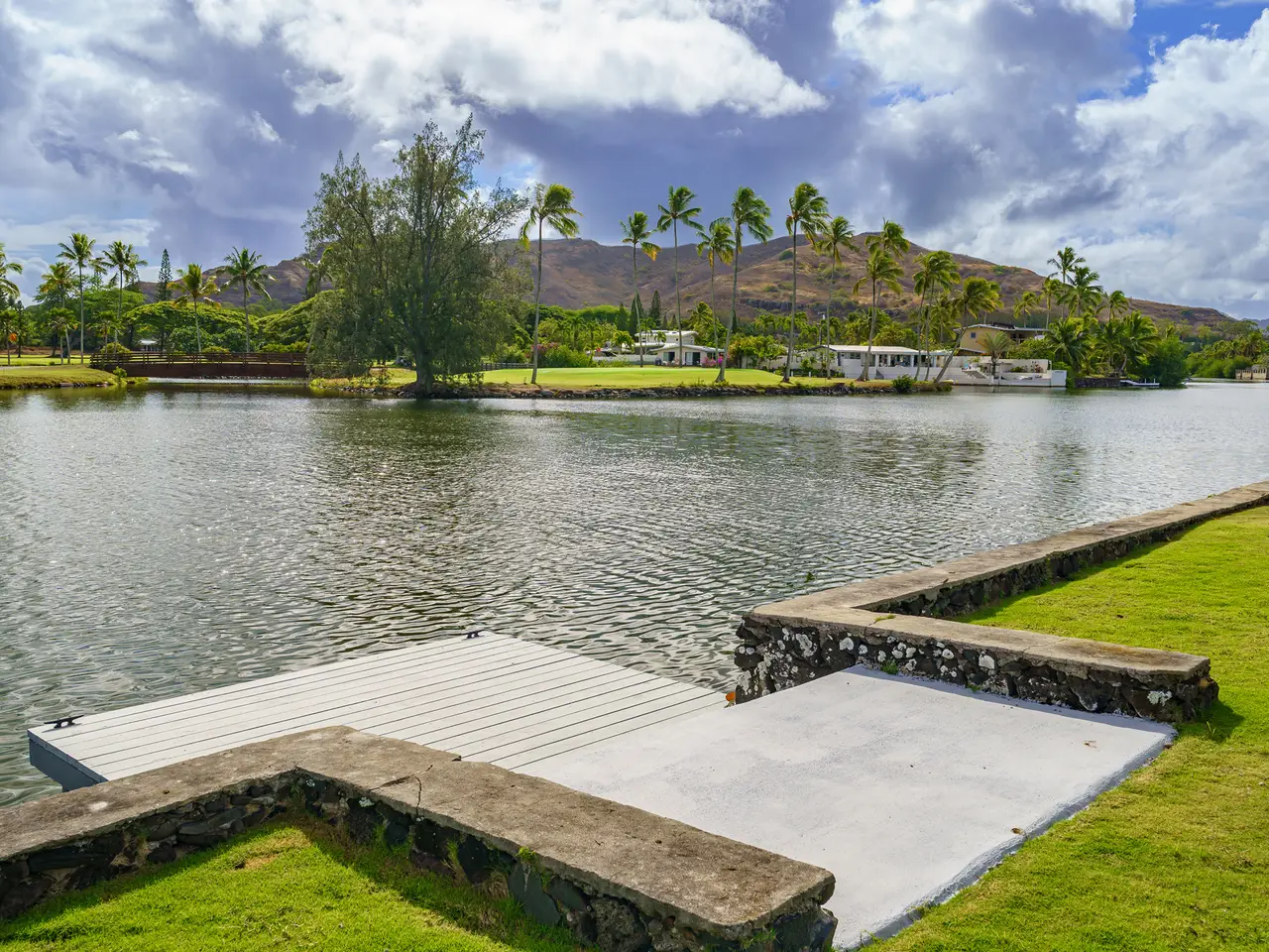 Welcome to your Kailua retreat! This rarely available canal-front property offers a perfect blend of comfort, privacy, and island lifestyle. Located along a wide section of Ka'elepulu Stream with the 5th hole of Mid-Pacific Country Club just across the canal, the setting is truly picturesque. Start your morning with welcoming sunrises and enjoy beautiful views throughout the day. The home is single-level and thoughtfully updated with new luxury vinyl plank flooring in three bedrooms and baths and fresh interior and exterior paint. Energy efficiency is enhanced by 21 PV panels (leased) with net metering and a solar water heater. A flag driveway provides quiet seclusion, opening to beautiful grassy yards and a private boat dock for water fun. Relax or entertain on the spacious covered lanai designed for year-round enjoyment. All of this just minutes from world-famous Kailua Beach and the shopping and dining of Kailua Town. Homes on the canal side are a rare find--don't miss this opportunity to make it yours!