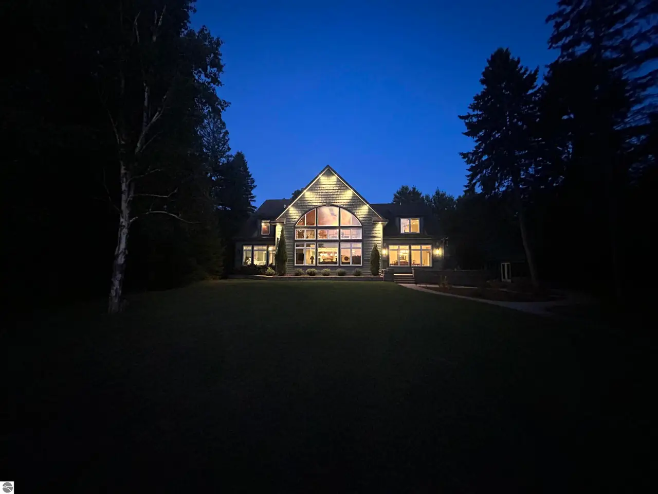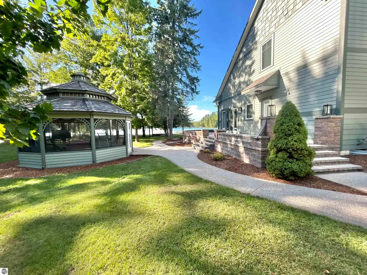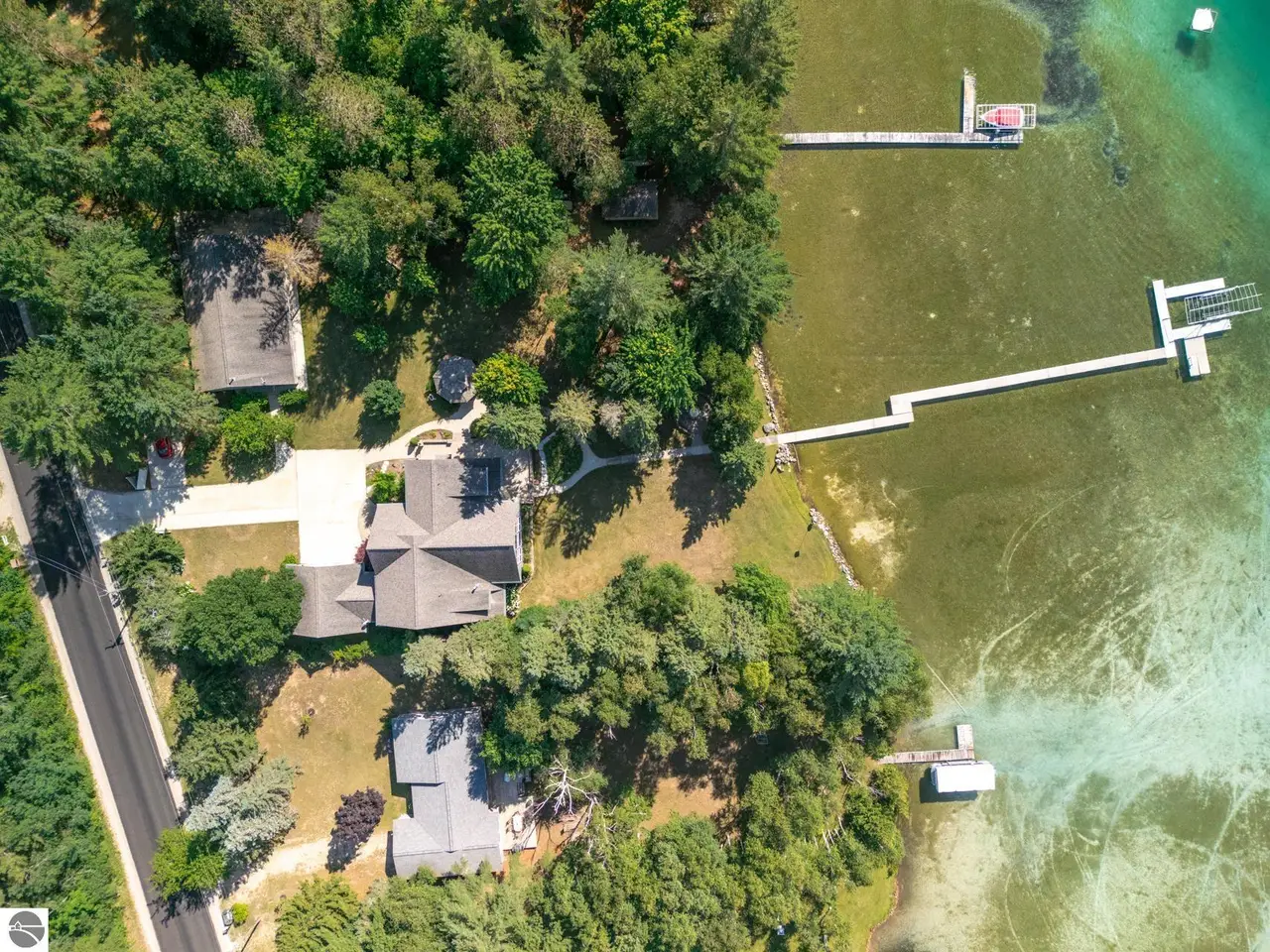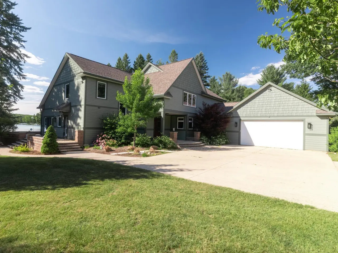 Wake up every morning in your dream vacation destination with this made-to-host, all sport, lakefront home with true luxury finishes and features. Brick wraparound patio and lawn seamlessly transition into direct access to 200 feet of private beach front, so no steps are needed to get to the beach and dock. Countless custom crafted details in the home echo the beauty of the famously "Caribbean blue" Big Blue lake, including floor-to-ceiling picture windows in the living room looking out over the water and stunning lake-blue granite countertops in the elegant kitchen. Every space is styled with timeless quality and design, from the beautiful hardwood floors and masterful tile work to gorgeous masonry on the indoor fireplace and stunning custom kitchen cabinetry. But this home isn't just beautiful; it was designed to be enjoyed. The main house is a 4 bedroom, 4 bath with an exquisite, large kitchen and beyond beautiful living room with an up North wood ceiling and natural gas fireplace. Just outside of the dining room, is the patio to entertain or relax outside. Rinse off the sand using the outdoor shower before coming inside to dry off in the sauna. Lounge in the air-conditioned and enclosed gazebo to have the best of both worlds. Everyone will want to visit, and there's room for them to stay since the detached 3-bed guest house is just a few steps away from the main house and has its own attached garage. The home also has a geothermal heating and cooling system, with in-floor heat on the main level and attached garage. Did I mention, you would own 200 private feet on an all sport gem of a lake with the dock included? Get ready to enjoy evenings by the fire at the water side and let your worries fade away. All information deemed accurate, but should be verified.