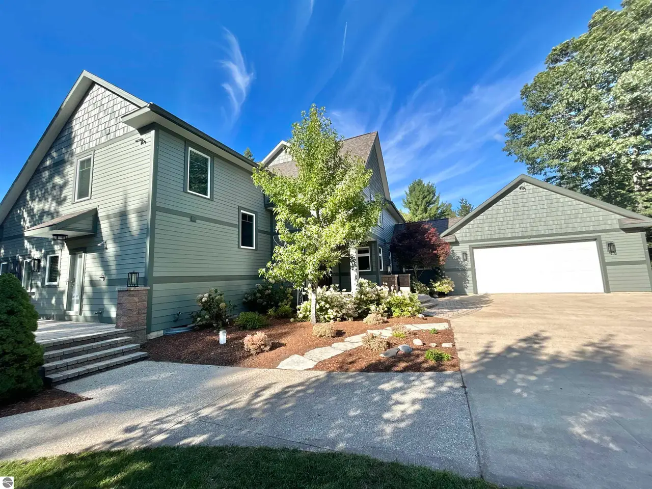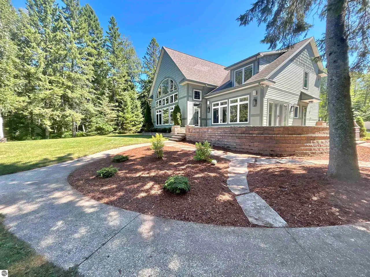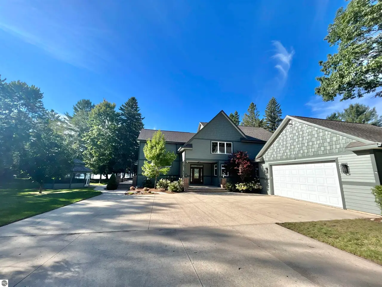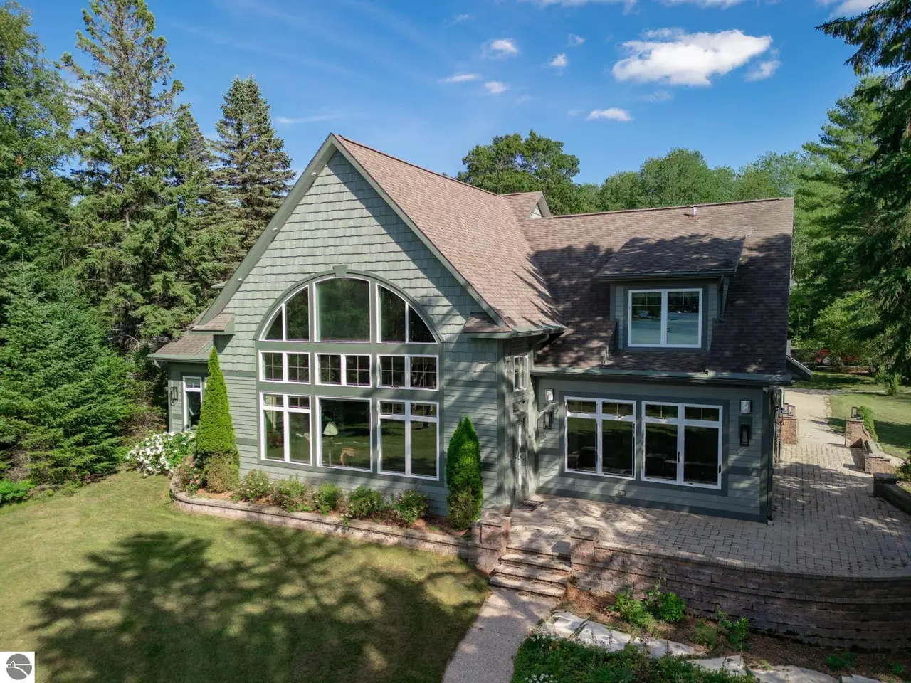 Wake up every morning in your dream vacation destination with this made-to-host, all sport, lakefront home with true luxury finishes and features. Brick wraparound patio and lawn seamlessly transition into direct access to 200 feet of private beach front, so no steps are needed to get to the beach and dock. Countless custom crafted details in the home echo the beauty of the famously "Caribbean blue" Big Blue lake, including floor-to-ceiling picture windows in the living room looking out over the water and stunning lake-blue granite countertops in the elegant kitchen. Every space is styled with timeless quality and design, from the beautiful hardwood floors and masterful tile work to gorgeous masonry on the indoor fireplace and stunning custom kitchen cabinetry. But this home isn't just beautiful; it was designed to be enjoyed. The main house is a 4 bedroom, 4 bath with an exquisite, large kitchen and beyond beautiful living room with an up North wood ceiling and natural gas fireplace. Just outside of the dining room, is the patio to entertain or relax outside. Rinse off the sand using the outdoor shower before coming inside to dry off in the sauna. Lounge in the air-conditioned and enclosed gazebo to have the best of both worlds. Everyone will want to visit, and there's room for them to stay since the detached 3-bed guest house is just a few steps away from the main house and has its own attached garage. The home also has a geothermal heating and cooling system, with in-floor heat on the main level and attached garage. Did I mention, you would own 200 private feet on an all sport gem of a lake with the dock included? Get ready to enjoy evenings by the fire at the water side and let your worries fade away. All information deemed accurate, but should be verified.