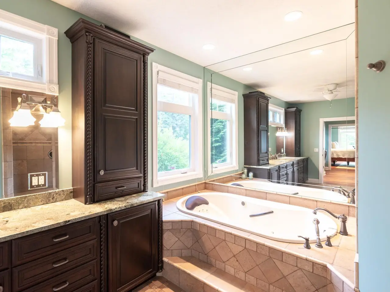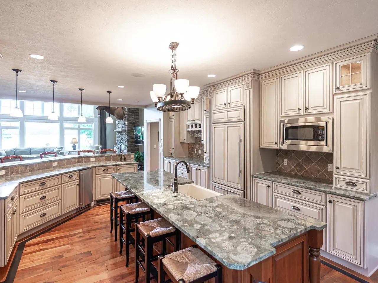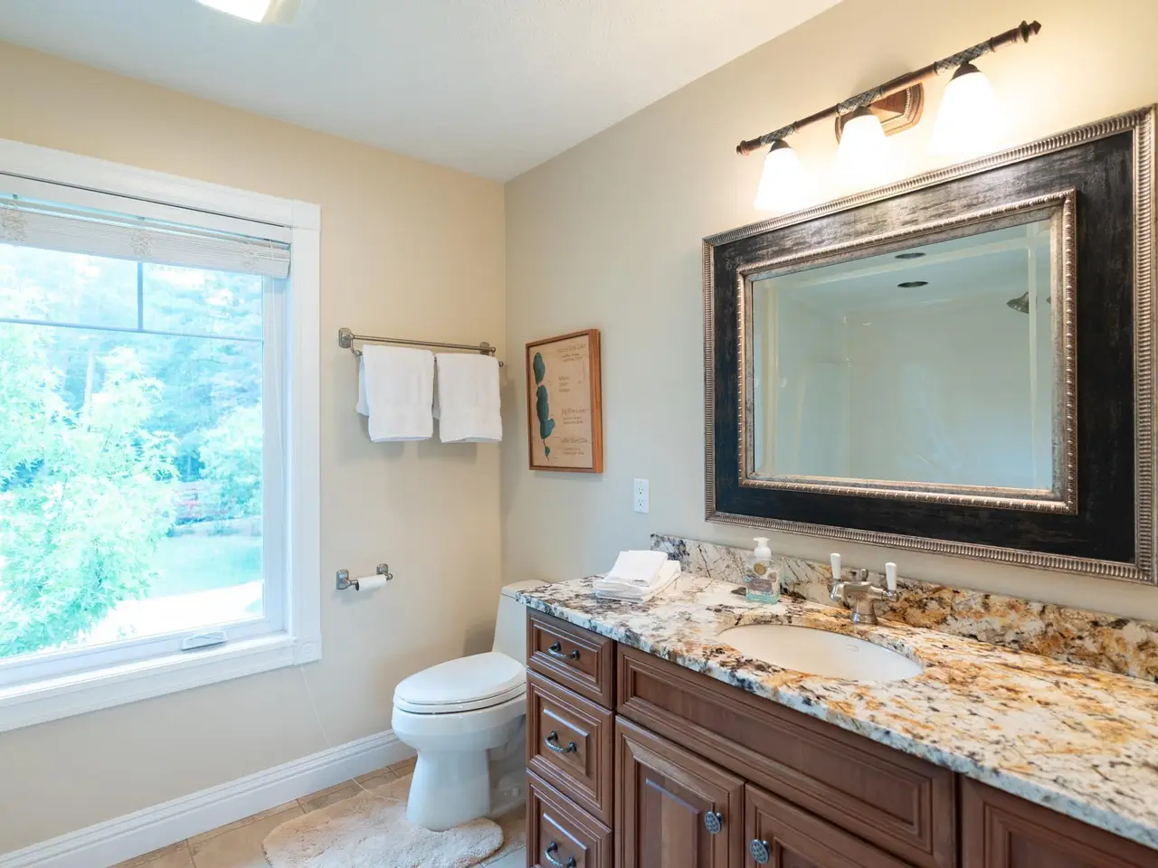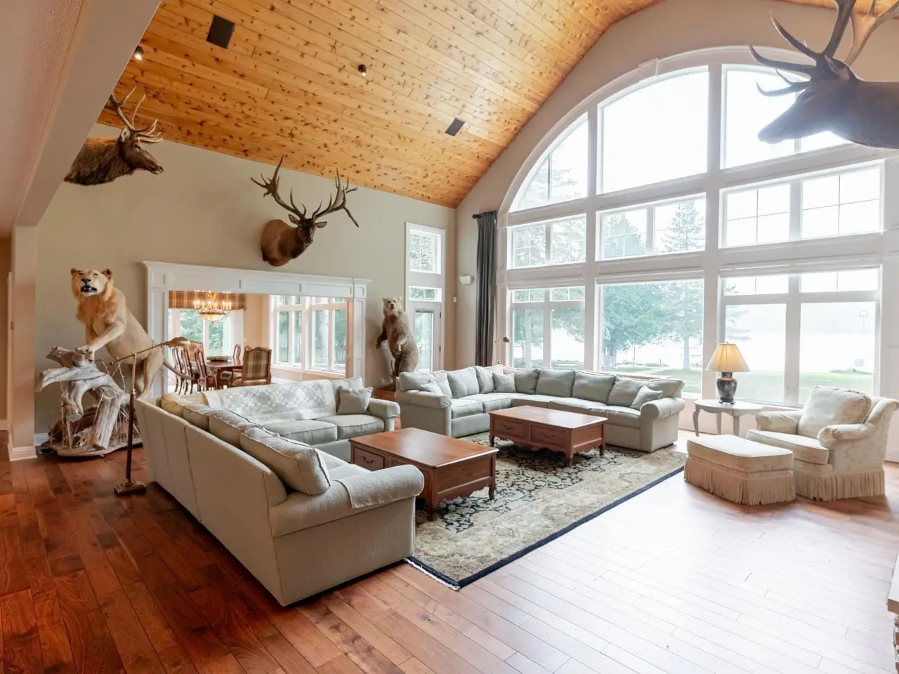 Wake up every morning in your dream vacation destination with this made-to-host, all sport, lakefront home with true luxury finishes and features. Brick wraparound patio and lawn seamlessly transition into direct access to 200 feet of private beach front, so no steps are needed to get to the beach and dock. Countless custom crafted details in the home echo the beauty of the famously "Caribbean blue" Big Blue lake, including floor-to-ceiling picture windows in the living room looking out over the water and stunning lake-blue granite countertops in the elegant kitchen. Every space is styled with timeless quality and design, from the beautiful hardwood floors and masterful tile work to gorgeous masonry on the indoor fireplace and stunning custom kitchen cabinetry. But this home isn't just beautiful; it was designed to be enjoyed. The main house is a 4 bedroom, 4 bath with an exquisite, large kitchen and beyond beautiful living room with an up North wood ceiling and natural gas fireplace. Just outside of the dining room, is the patio to entertain or relax outside. Rinse off the sand using the outdoor shower before coming inside to dry off in the sauna. Lounge in the air-conditioned and enclosed gazebo to have the best of both worlds. Everyone will want to visit, and there's room for them to stay since the detached 3-bed guest house is just a few steps away from the main house and has its own attached garage. The home also has a geothermal heating and cooling system, with in-floor heat on the main level and attached garage. Did I mention, you would own 200 private feet on an all sport gem of a lake with the dock included? Get ready to enjoy evenings by the fire at the water side and let your worries fade away. All information deemed accurate, but should be verified.
