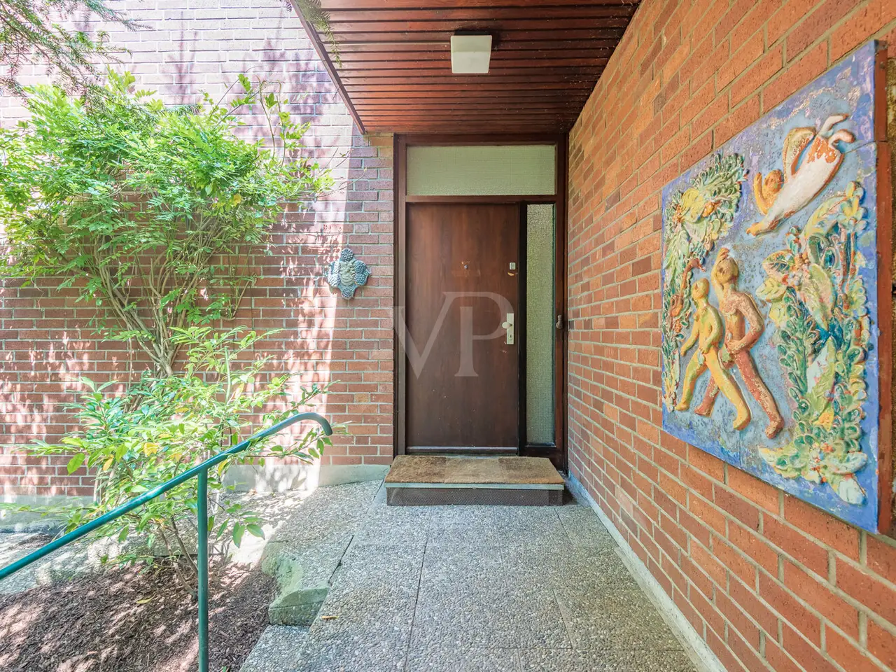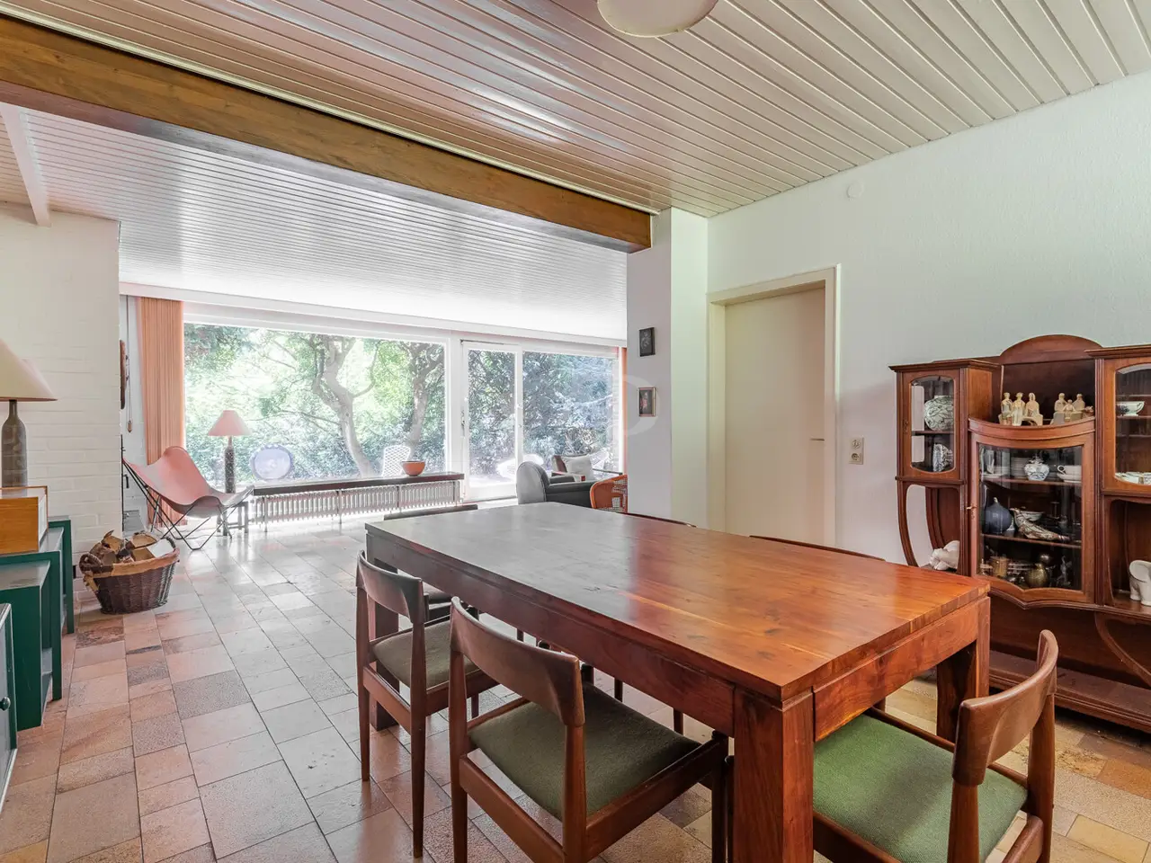 Idyllic location - bungalow with plenty of space and privacy In the middle of nature and in a quiet location, this solidly built bungalow from 1967 offers you a spacious home on an extensive plot of approx. 981 m². The solid brick construction provides a durable and stable foundation. The well thought-out floor plan leads from the entrance area into a central hallway from which all rooms are accessible. The spacious living and dining area impresses with large windows that let in plenty of natural light and provide a view of the greenery. From here, you can access the large terrace, which is ideal for spending relaxing hours outdoors. A fireplace provides pleasant warmth on cooler days. The adjoining kitchen offers plenty of space for your furnishing ideas. The house has two spacious bedrooms as well as a daylight bathroom and a separate guest WC. There is a studio in the basement, which is ideal as a work or hobby room and offers plenty of peace and quiet. The property has a spacious terrace, a balcony and a surrounding garden area that offers plenty of space and privacy. A double garage completes the offer. Quiet location with good connections Here you live close to nature and in a quiet location, while shopping facilities, schools and leisure activities are all within easy reach. A spacious bungalow with plenty of room and privacy - ideal for families, couples or freelancers looking for a solid home in a quiet location.