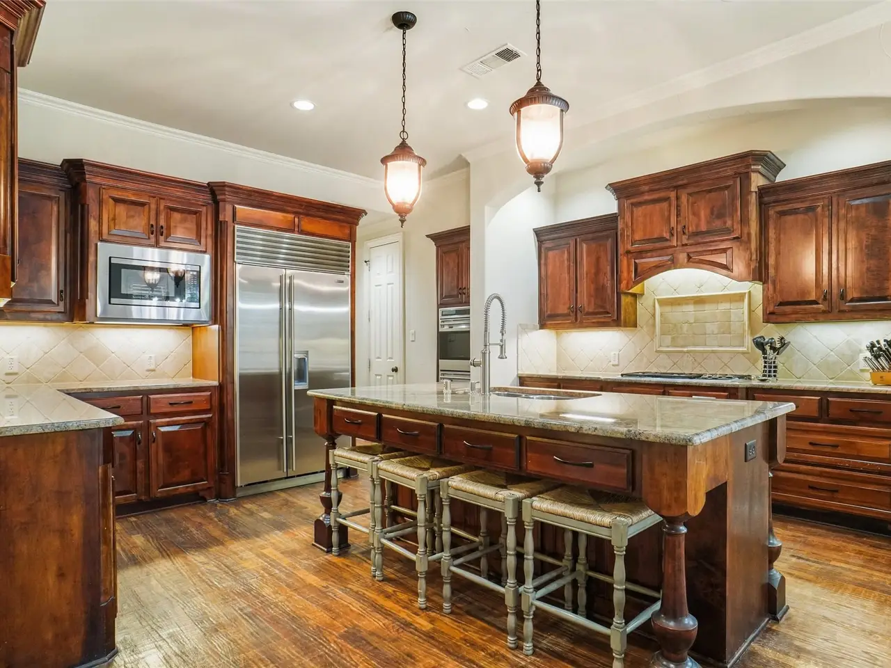 Welcome to this extraordinary home in the highly desirable Hidden Lakes community, where timeless craftsmanship meets comfort. Set within the award-winning Keller ISD and the exclusive Hidden Lakes Elementary, this five bedroom, five bath residence offers an exceptional combination of luxury, functionality, and style. From the moment you enter, you're greeted with soaring ceilings, immaculate custom woodwork, and hardwood floors that flow seamlessly throughout the home. The elegant foyer opens into inviting living spaces designed for both grand entertaining and everyday comfort. Rich architectural details make this home truly special. The gourmet kitchen is the heart of the home, featuring an oversized island, custom cabinetry, and premium finishes, all opening to a spacious family room accented with warm wood tones and a cozy fireplace. A formal dining room provides the perfect setting for hosting memorable gatherings. Retreat to the luxurious primary suite, complete with a spa-inspired bath, generous walk-in closet. Additional bedrooms are generously sized, each offering their own access to beautifully appointed bathrooms. Upstairs, the expansive game room with wet bar sets the stage for endless entertaining, while the dedicated media room creates the ultimate movie-night experience. Step outside to your own private backyard retreat perfect for summer barbecues, relaxing evenings, and creating cherished memories. With mature landscaping and space to play, this outdoor area balances comfort and privacy. Residents of Hidden Lakes enjoy more than 10 miles of scenic walking and biking paths, three sparkling community pools, playgrounds, and neighborhood parks. You’ll also love the convenience of being able to walk directly to Sky Creek Ranch Golf Club and Country Club, where golf, dining, and social activities create a true resort-style living experience. Ideally located minutes from premier shopping, dining, and outdoor recreation, this not only a home, but a lifestyle.